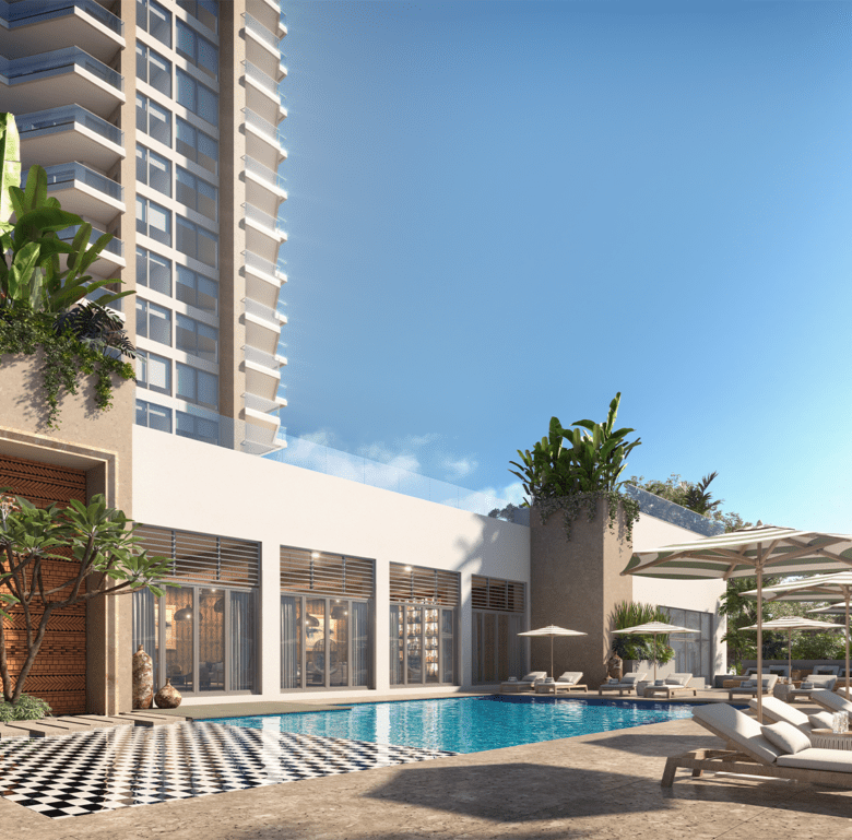 The development comes with a plethora of facilities including central lounge, water features, pools, rooftop sunbathing deck, private cabanas, multipurpose event room, direct beach entry, seaside dining establishment, pet park, pool, miniature golf, golf simulation centre, spa facility, console gaming area.