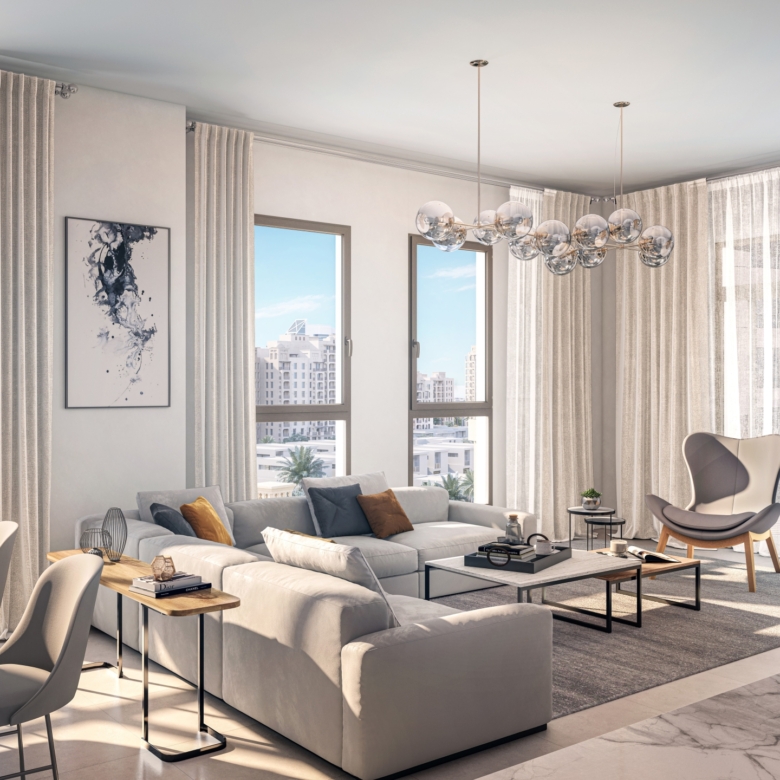 Nestled in the heart of Jumeirah’s prestigious community, Jadeel at Madinat Jumeirah Living offers a sophisticated and serene lifestyle. With its winding walkways, cooling palm tree shade, and meticulously designed interiors, this development blends traditional elegance with contemporary comfort. Enjoy a seamless blend of luxury and convenience with a fully integrated community, retail center access, and stunning views of Dubai’s skyline. Residents are only 5 minutes from the Mall of the Emirates, 15 minutes from Dubai Marina, and 20 minutes from Dubai International Airport.