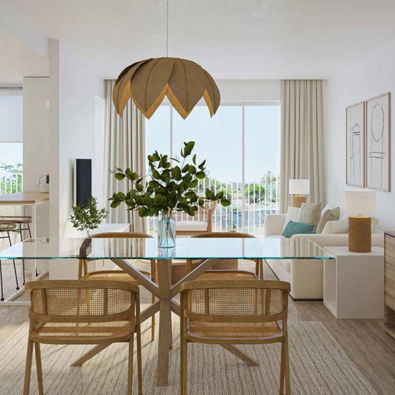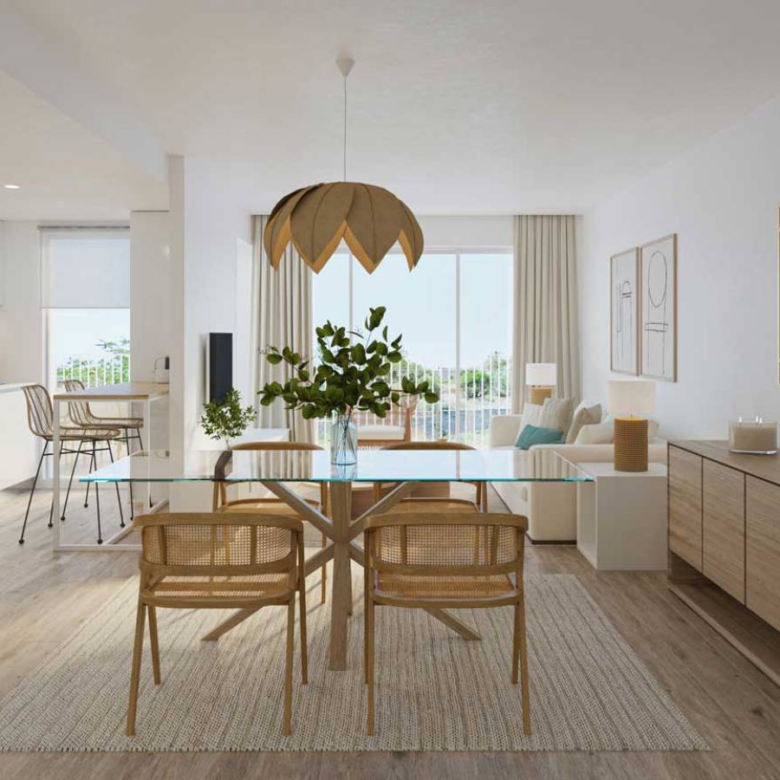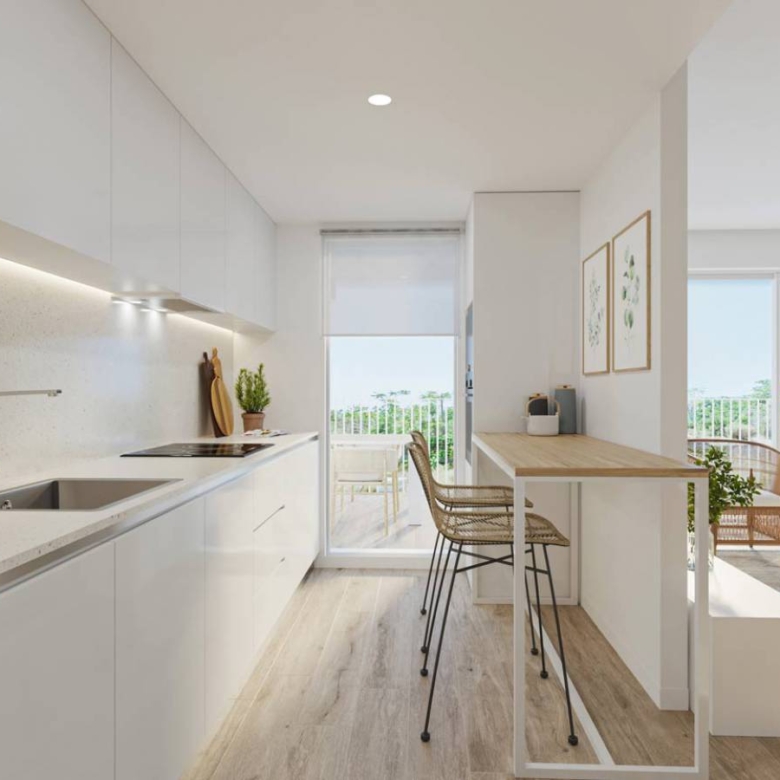 Apartments near the beach in Javea, Costa Blanca The residential consists of 58 homes with 2, 3 and 4 bedrooms distributed on the ground floor with a garden. It includes penthouse homes, and duplexes with large terraces. In addition, all the houses have a garage and storage room. The residential complex will have a swimming pool and a social club. Since all our interiors are taken care of in detail, the exterior of the house could not be less. Perfectly combining avant-garde trends and the timeless elegance of the most classic constructions, the beautiful aesthetic of the building lies in its facade through textures and colors integrated into its surroundings. 4 minutes from the beach and the port, everything you need at your fingertips: restaurants, pharmacies, supermarkets, health centers, and the Molins De La Plana, a green lung in Javea. In addition, in the vicinity of your new construction home you will find the Javea bus station and the CV-734 road TRANSPORT Alicante Airports CV-734 highways Maritime transport Port of Javea Bus lines Javea bus station Property ID: GH-307075-D Price: €347,000 Property Size: 80 m2 Land Area: 111 m2 Bedrooms: 3 Bathrooms: 2