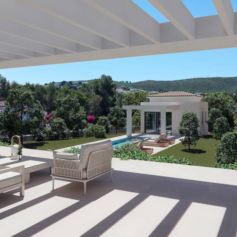 Luxury villa for sale in Javea, Costa Blanca The main house revolves around the spacious kitchen with utility room, which acts as the heart of the house. The kitchen has a perfect indoor/outdoor flow, plenty of natural light and provides access to the large partially covered terrace (naya), allowing outdoor living to be enjoyed all year round. On the west side of the home, you’ll find the living room with a fireplace, offering views to the southwest and stunning sunsets in the evenings. Additionally, on this side there is also the master bedroom with a terrace, a spacious bathroom and a dressing room. On the east side of the house, there are two spacious bedrooms, each with their own bathroom and terrace, making them perfect for guests or growing children. This side has its own entrance and can be closed off from the main house. From the main house you have a view of the garden, which has a generously sized rectangular pool, 14×3 meters, ideal for long swims. There is also a study that can be customized to your preference, either as a guest study or home office. The property offers parking space for several cars, and visitors can easily park on the wide and quiet street. The 1741 m2 plot is less than 5 minutes drive from the beach of Javea and is conveniently located a short drive from other services such as supermarkets, restaurants and international schools. * Central* Close to services* High quality finishes* Flexible interior design* Suitable for all stages of life* Includes building permit issued* Construction can start immediately. * m2 plot: 1,741 m2* Total built m2: 420 m2* Total auxiliary m2: 463 m2* Number of rooms: 4* Number of bathrooms: 5* Status: Licensed project Property ID: GH-307598 Price: €1,480,000 Property Size: 420 m2 Land Area: 1741 m2 Bedrooms: 4 Bathrooms: 5 Property Type: Villa Property Status: For Sale