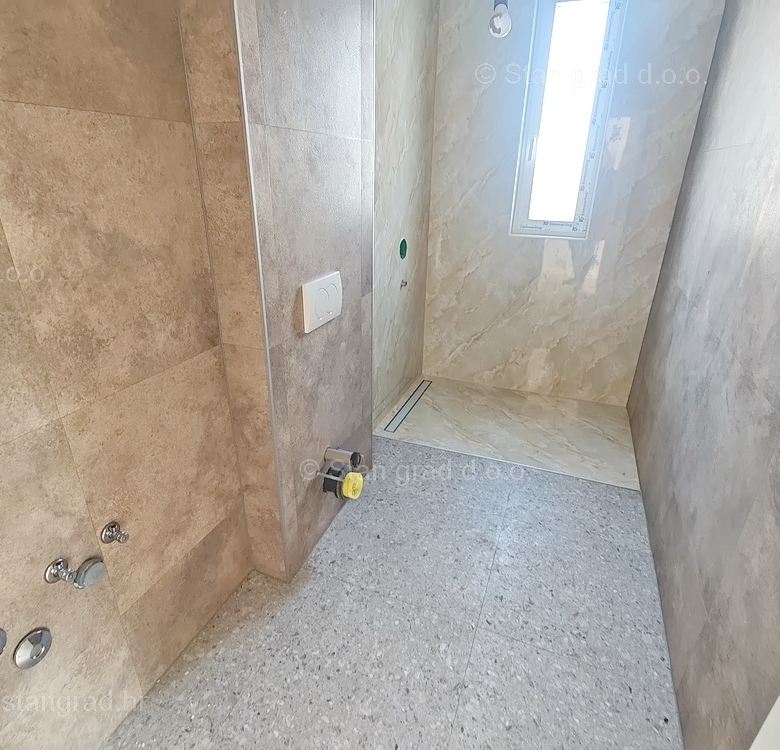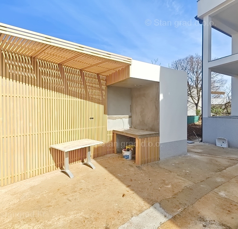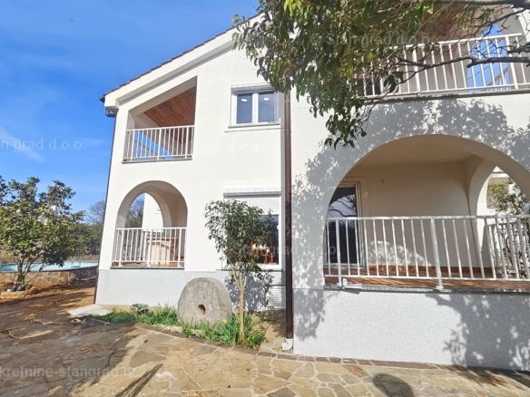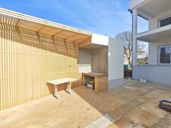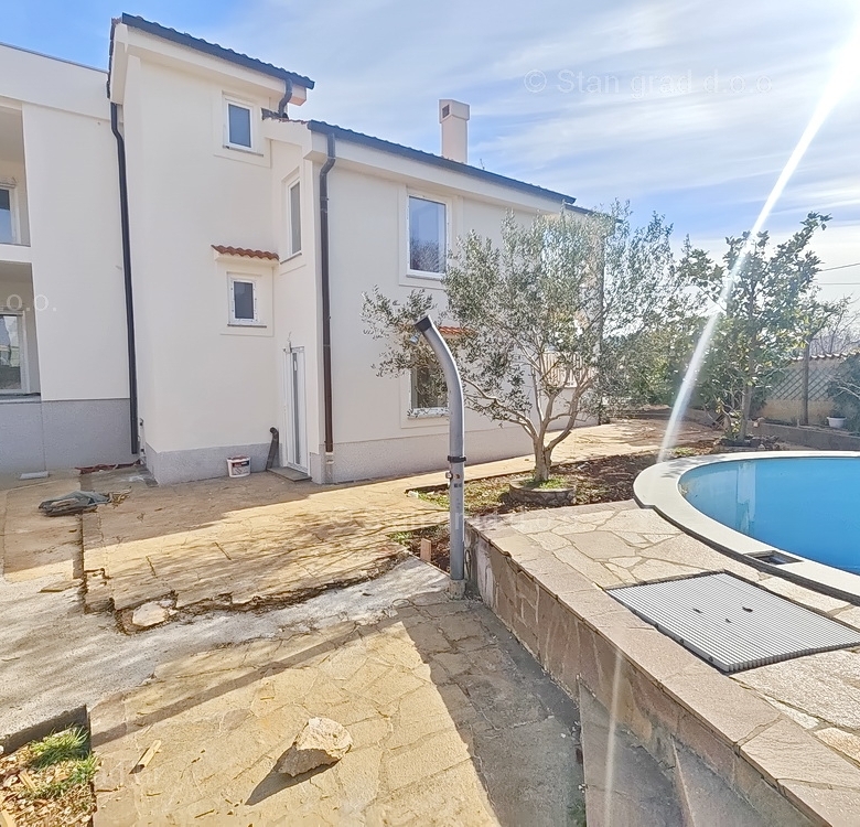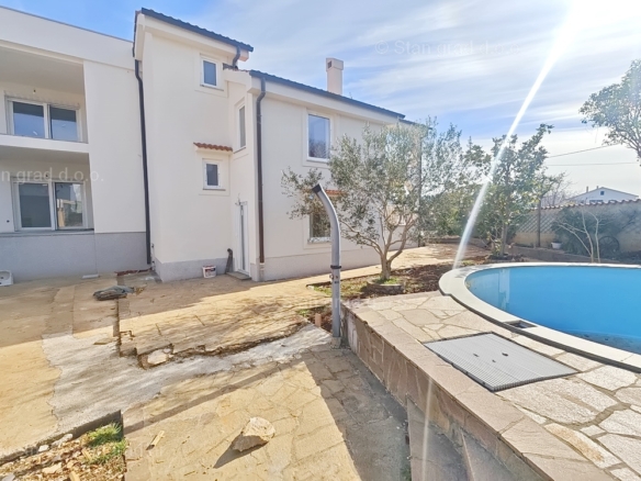 We offer a very high-quality apartment for tourist stays or living in the northern Adriatic on the usually desirable Kvarner destination, the island of Krk. The detached apartment is located in an urbanized residential area, not far from the center, the sea, the beaches and the necessary amenities in the vicinity of the city of Krk. In nature, it is a comfortable and spacious one-story apartment with a good arrangement of rooms. Within the framework of a modernly designed building, the apartment extends over the ground floor. The total area of this apartment is 81 m2. This area includes the living room and kitchen with dining room, toilet, 2 bedrooms each with their own bathroom and 2 terraces. The interior of the property is empty and completely free of furniture. It can also be pointed out that the ownership of the apartment allows the unhindered use of the common part of the garden where there is a swimming pool and sun deck. This apartment is owned by a parking space for parking two cars. In addition to the described characteristics, the property is also conveniently located, so it provides a very nice view of the charming seaside village. This apartment is owned by a natural person, so the buyer is obliged to pay sales tax in the amount of 3% when transferring its ownership to his name. The owner guarantees complete and orderly technical ownership documentation and a simple transfer of the apartment to the buyer. Our staff will make sure that you feel at home in Kvarner. Visit us on the island of Krk. If you place your trust in us, the Stan Grad Immobilien agency will be happy to help you transfer the ownership rights of this property and the bill for its utility connections and services to your name.