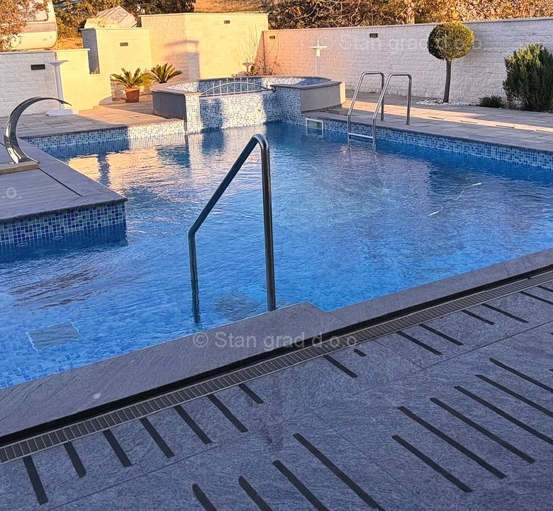 A very valuable and expensively built holiday home on the famous and attractive Adriatic tourist area, the island of Krk, is for sale at our agency in Kvarner. This house is positioned in a quiet location near the town of Krk, not too far from the sea. Structurally speaking, this is a single-story house with a basement. This luxury house covers a total of 3 floors. The house covers a total area of 190 m2. The property contains two separate apartments, each of which has a living room and a kitchen with a dining room, 2 bedrooms, a bathroom, a toilet and a terrace. A rich set of devices of the latest generation has been installed in the exceptionally well-maintained and luxuriously furnished interior of the subject property. In the spacious basement of this luxury villa, there is a space for various purposes with a jacuzzi, sauna, two showers, a toilet, a small kitchen and a fireplace. The added value of this entire building is given by the garden with a swimming pool and a sunbathing area. In the garden of this house there is enough space to park two cars. In addition to the above, it should be noted that the house has a beautiful view of this seaside place. This real estate is owned by a natural person and in the name of its transfer, the buyer of the house is obliged to pay real estate sales tax in the amount of 3%. The seller of this house guarantees complete and orderly documentation and a simple transfer of the property to the buyer. Contact us with confidence at the address of the office on the island of Krk and we will be your partner for the safe purchase of real estate in Kvarner. The agent Stan Grad Immobilien will help you in the transfer of property ownership and utility bills.