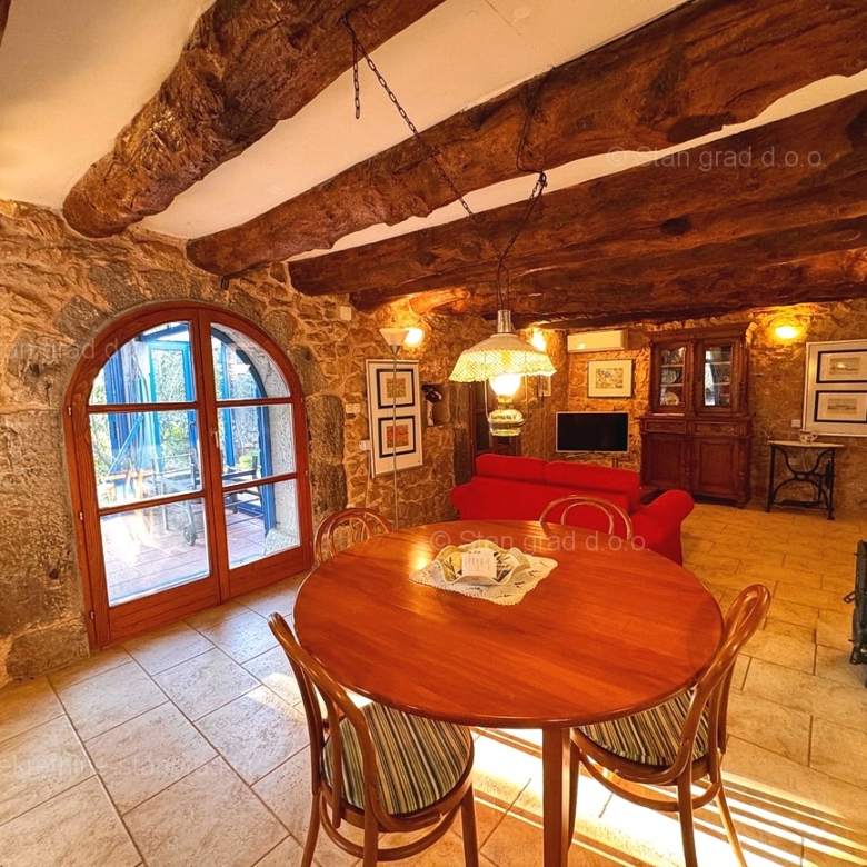 As part of the Kvarner real estate offer, the agency Stan Grad Immobilien is selling a designer-designed and modernly built tourist house in the northern Adriatic Mediterranean region, the island of Krk. This desirable house is located in a very good location near the town of Krk. Structurally speaking, this is a single-story house. The very beautiful building is built on 2 usable floors. The structure of the space foresees the residence of one family. The total area of this stone house is 122 m2. This area includes a living room and a kitchen with a dining room, a bathroom and a closed terrace on the ground floor, and there are two bedrooms and a bathroom on the first floor. The exceptionally well-maintained interior of the property is excellently equipped with luxurious and high-quality furniture and modern technical equipment. The ownership of this house includes a very nicely decorated and refined garden. The yard of the property includes a place arranged for comfortable parking of vehicles. In addition to the above, it should be noted that the house has a beautiful view of this seaside place. The owner of this real estate is a natural person, and when transferring its ownership to the buyer, real estate sales tax in the amount of 3% is calculated. The owner guarantees complete and orderly technical ownership documentation and a simple transfer of the property to the buyer. Visit us on the island of Krk and make sure that your satisfaction is our priority. If you put your trust in us, the friendly team of agents and staff of the Stan Grad Immobilien office will be happy to help you transfer property ownership and utility bills to your name.