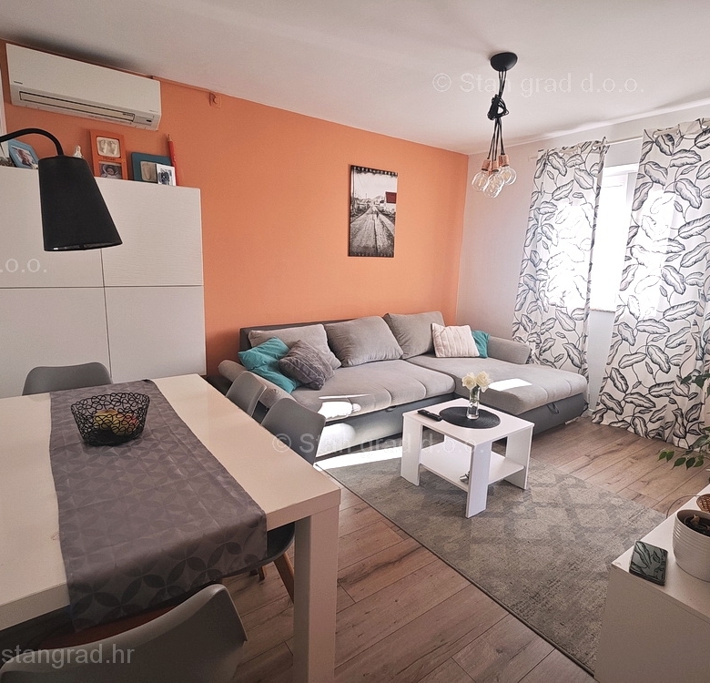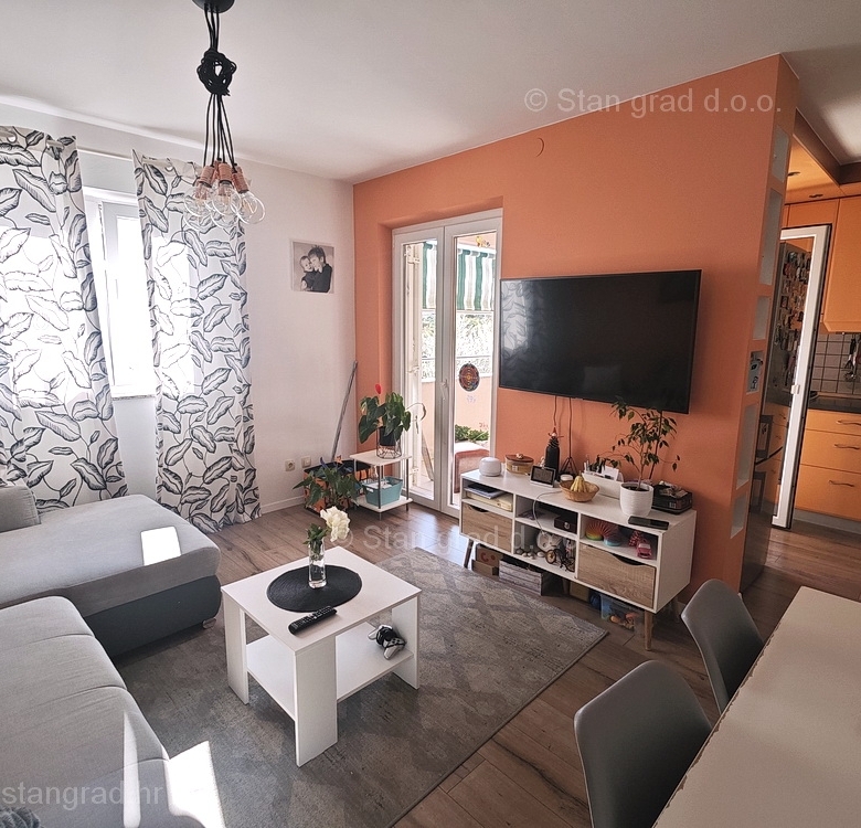 For sale by the Stan Grad Immobilien agency on the Adriatic coastal area of the island of Krk, there is an apartment of very good quality and in a general state of preservation. The offered apartment is in an urban and landscaped location, close to the sea, the center and all the necessary facilities in the city of Krk. According to the type, this property can be classified in the category of medium-sized one-story apartments. In a very good and quality building, the apartment is located on the 1st floor. The apartment covers a total area of approximately 57 m2. The well-maintained interior of the property is fully furnished with quality furniture and all the necessary technical equipment. It should not be ignored that the owner of the apartment can use all the common parts and spaces of the property. The new owner of the apartment has the possibility to park his vehicle in the shared garden. In addition to what has already been described, the apartment also provides a pleasant subjective feeling of being in the interior, which is enhanced by the attractive view of the coastal village and the wooded landscape. This apartment is the property of a natural person and the transfer of ownership is subject to real estate transfer tax in the amount of 3%. The seller guarantees the orderliness of the relevant technical and ownership documentation, as well as the possibility of a quick and smooth transfer of ownership of the apartment to the buyer. Stan Grad Immobilien will be your partner for a quick, successful and safe acquisition of real estate in Kvarner. If you decide for us, the expert team of the brokerage office Stan Grad Immobilien will be happy to help you transfer the ownership of the property and the bill for utility connections to your name.