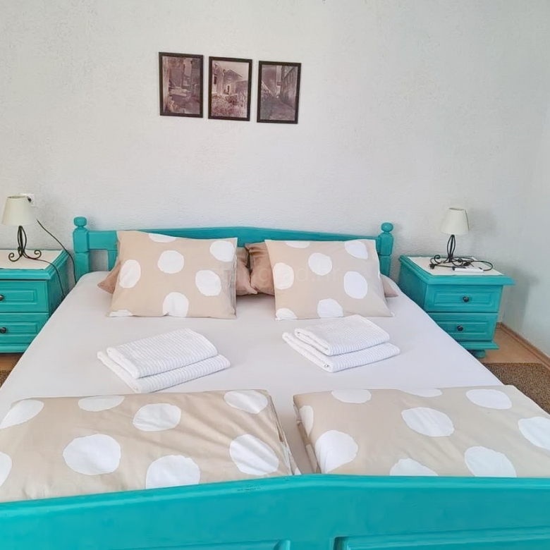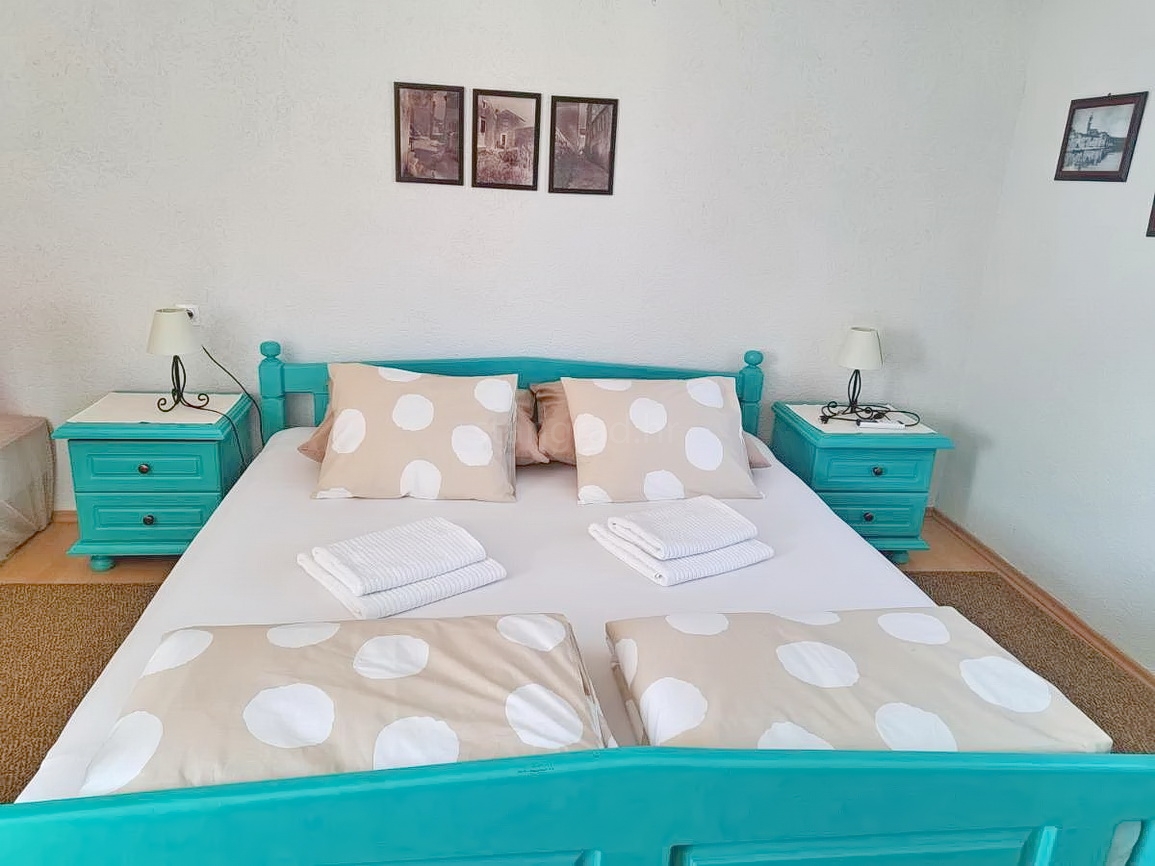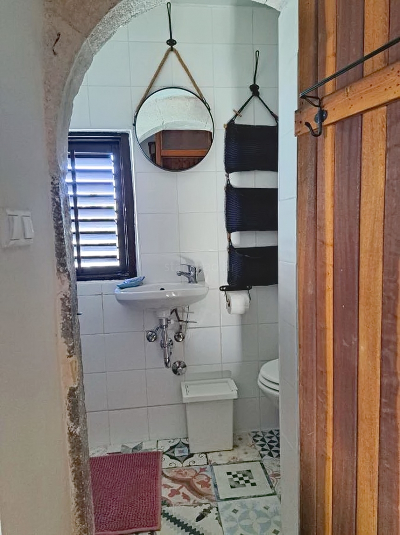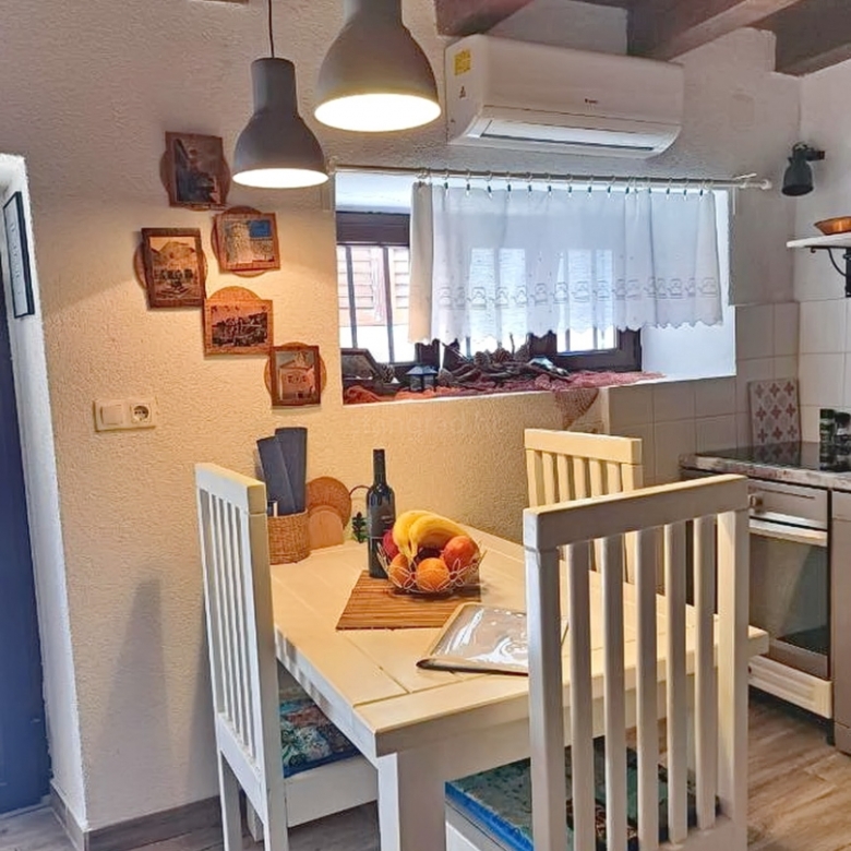 As part of a wide selection of real estate on the Kvarner coast, Stan Grad Immobilien presents a very well-maintained and fully furnished house suitable for tourism, located in one of the most sought-after Mediterranean destinations, the island of Krk. This attractive property is situated in an exceptional location near the center of the town of Krk, offering quick access to all essential amenities. It is a terraced house with multiple levels, built with solid construction quality and designed for comfortable family living.