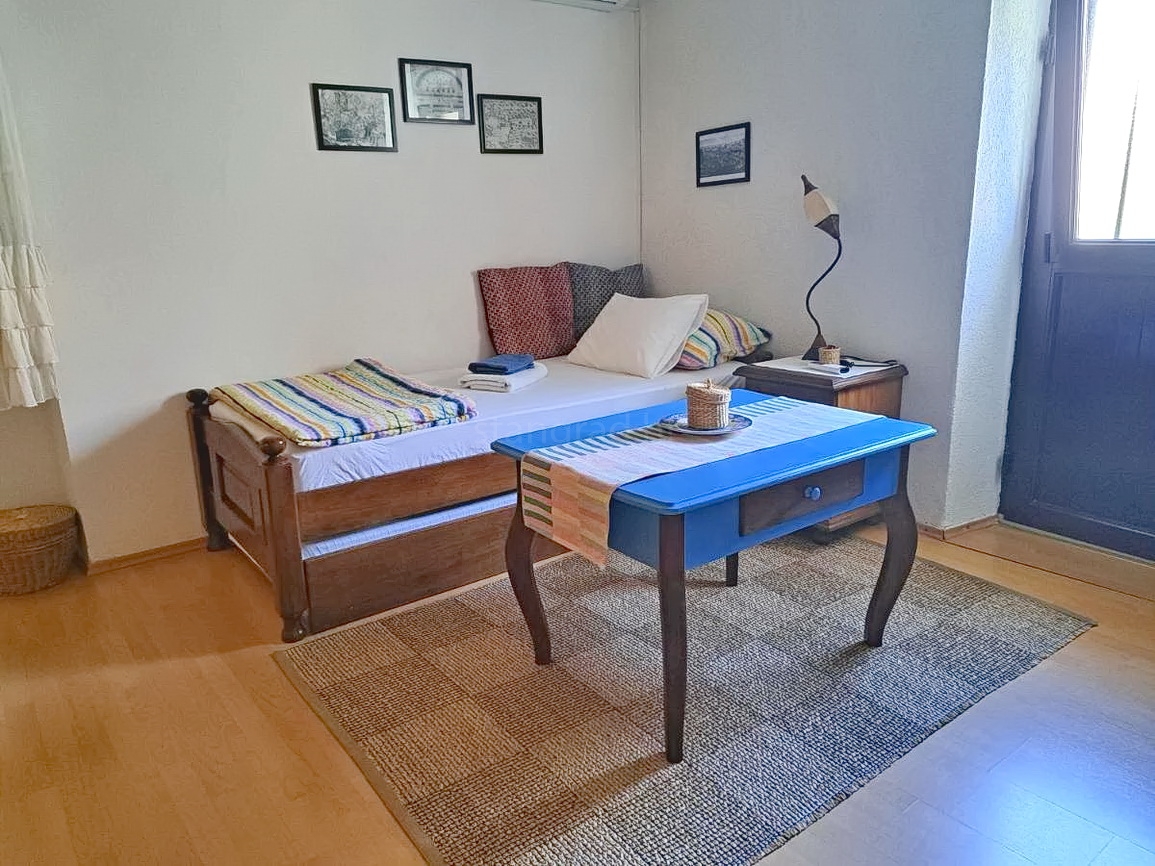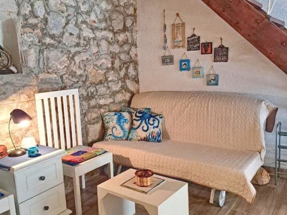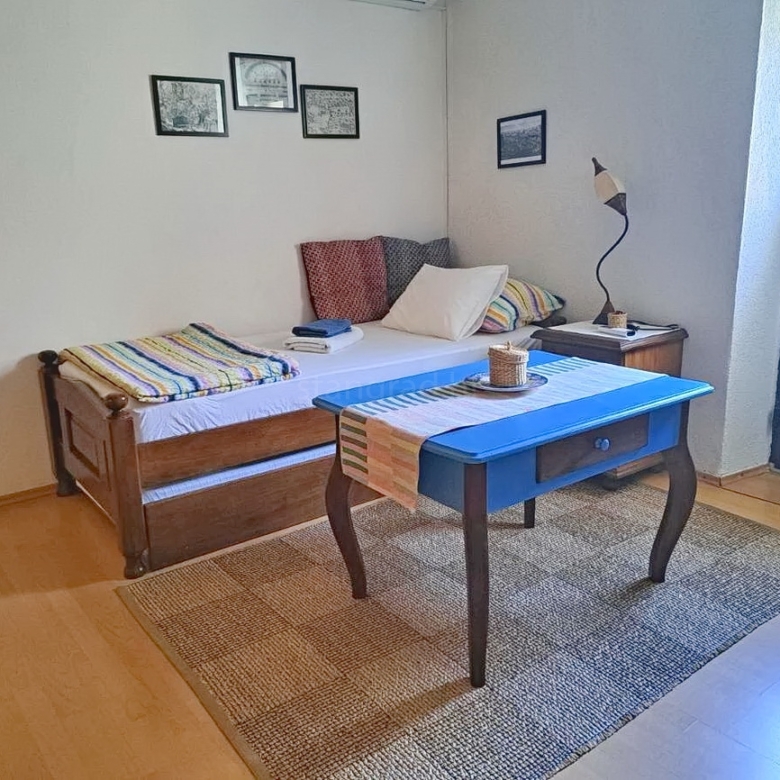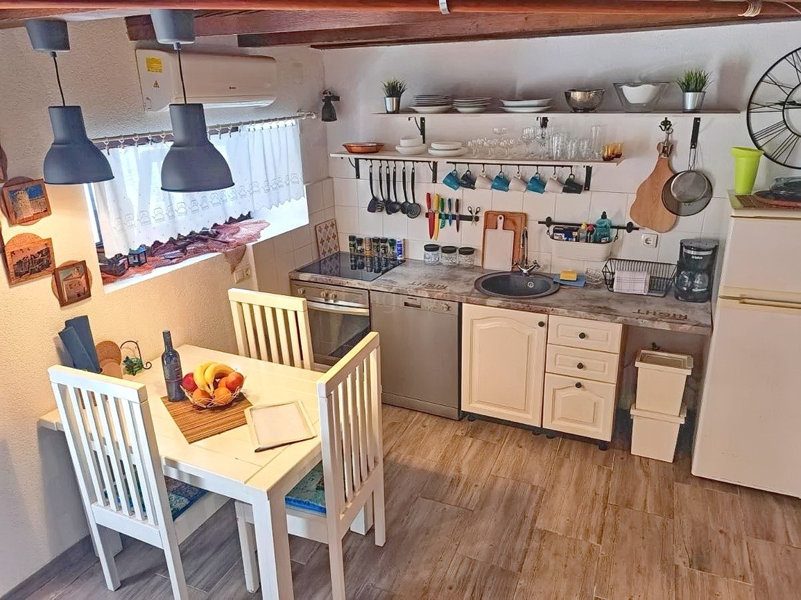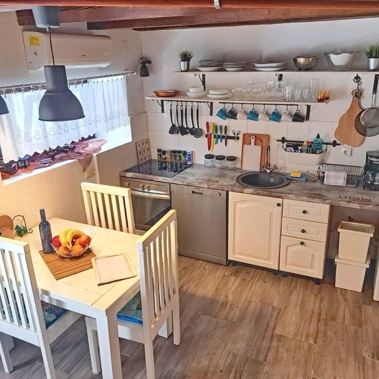 As part of a wide selection of real estate on the Kvarner coast, Stan Grad Immobilien presents a very well-maintained and fully furnished house suitable for tourism, located in one of the most sought-after Mediterranean destinations, the island of Krk. This attractive property is situated in an exceptional location near the center of the town of Krk, offering quick access to all essential amenities. It is a terraced house with multiple levels, built with solid construction quality and designed for comfortable family living.