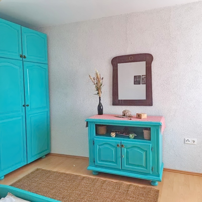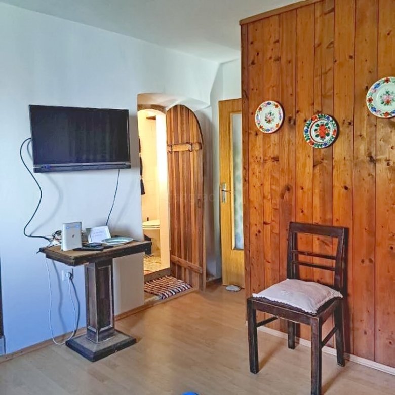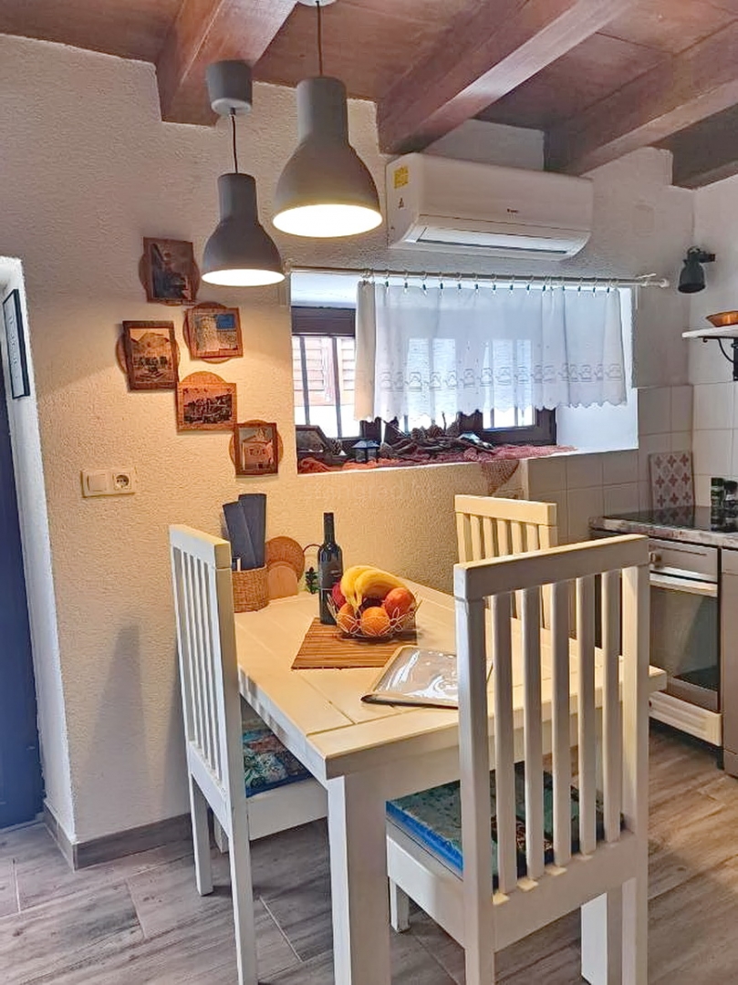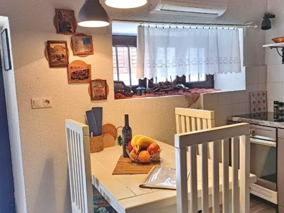 The total surface area of the house is 75 square meters. The ground floor includes a living room with a kitchen and dining area, the first floor features a bedroom with a private bathroom, and the second floor offers another bedroom. Each floor is equipped with an air conditioning unit, ensuring comfort throughout the year. The interior of the house is well-maintained and fully equipped with quality furniture and all necessary technical appliances, allowing for immediate move-in without the need for additional investment.