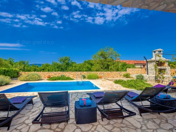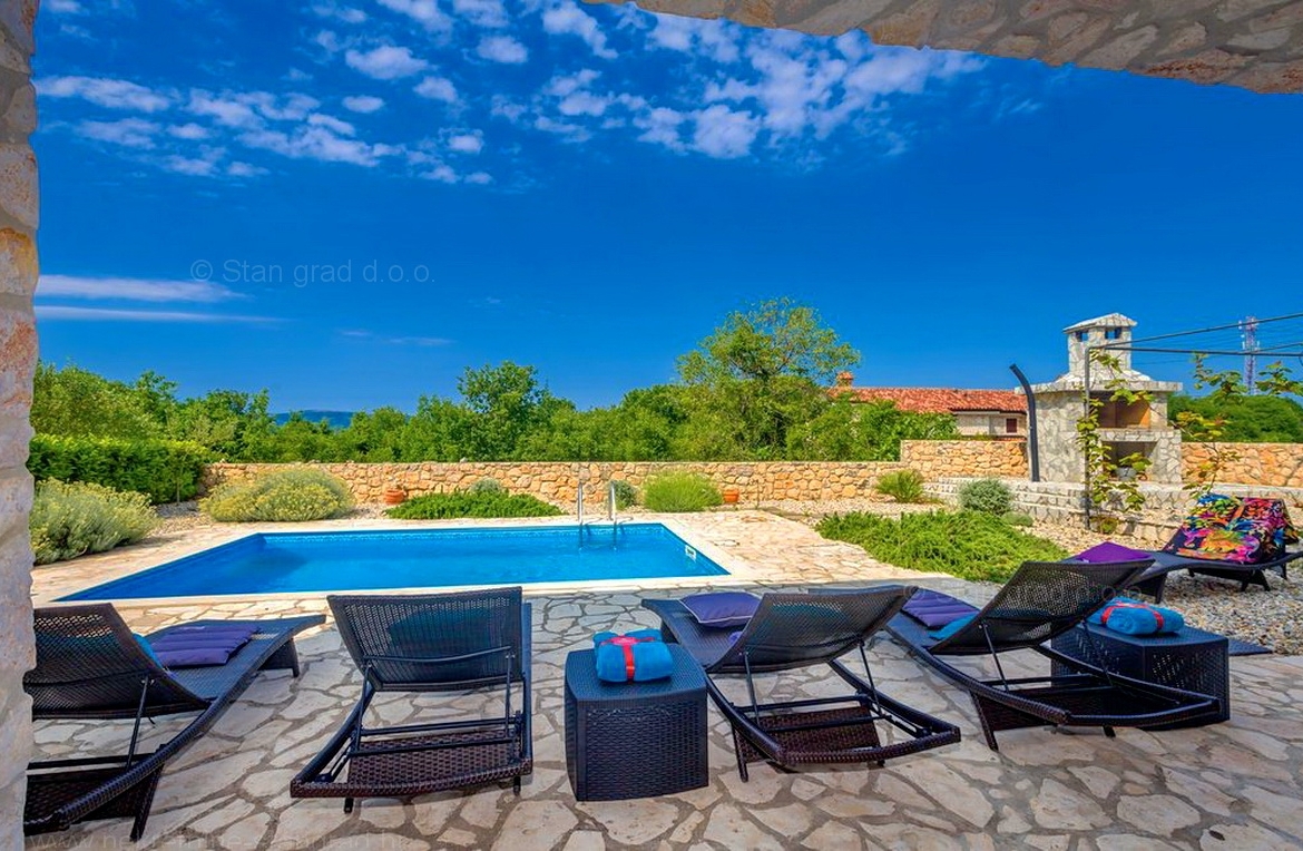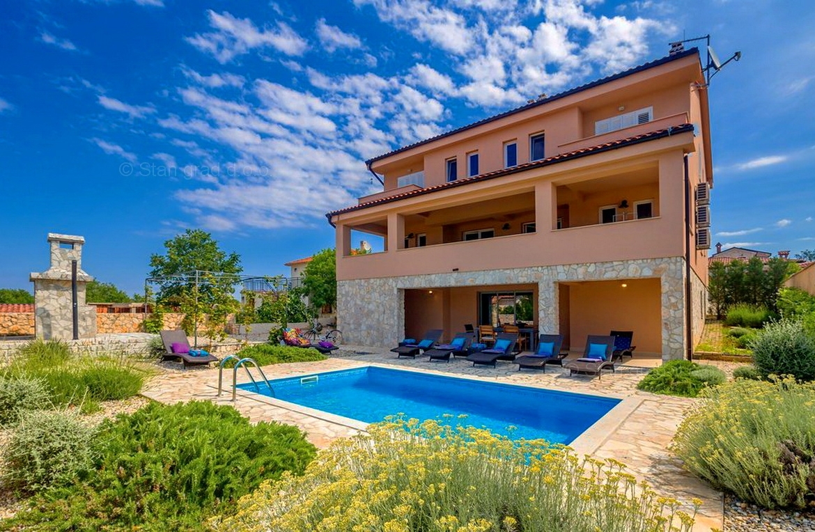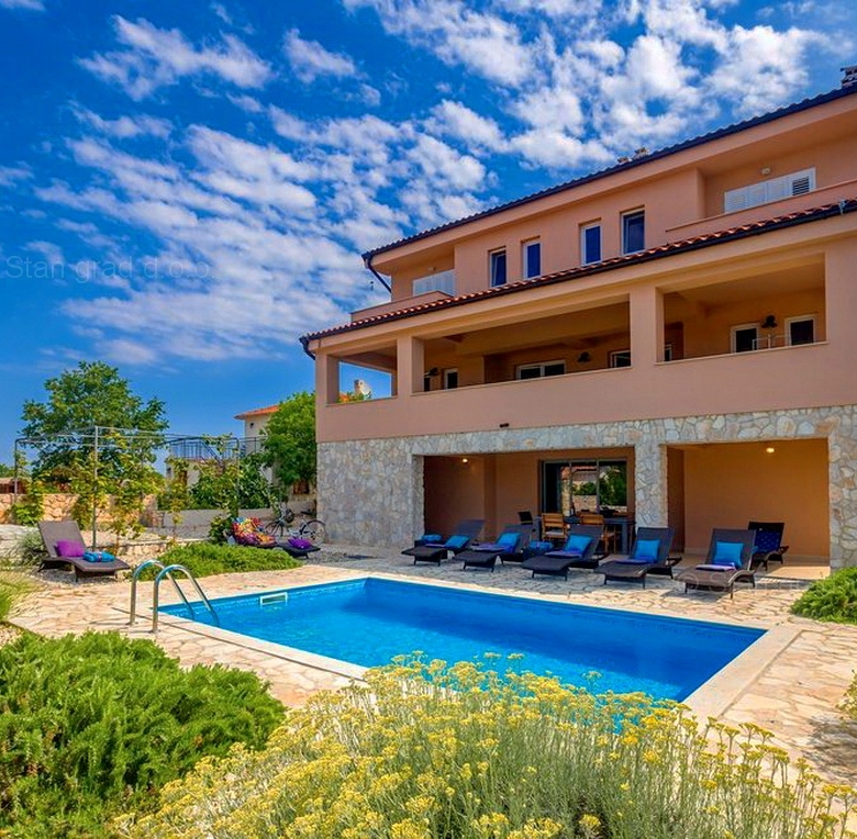 Krk, surroundings, detached house with 3 apartments, swimming pool, garage, playroom, wine cellar