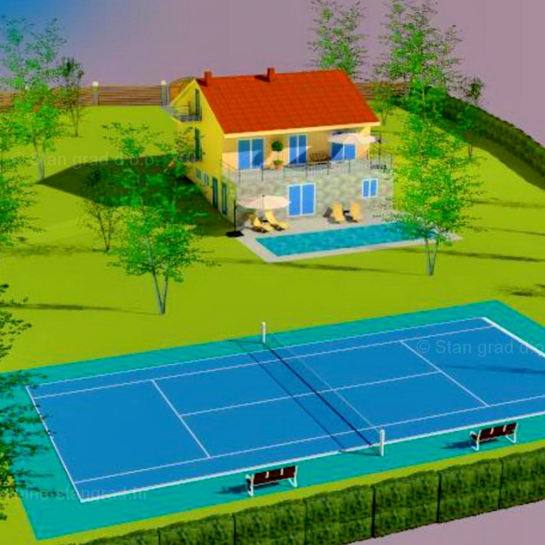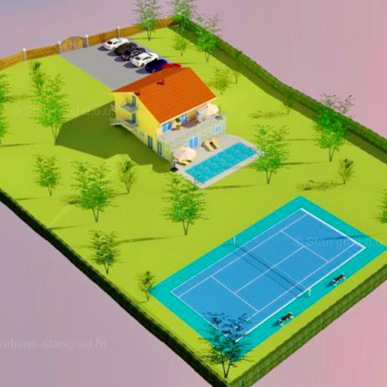 For sale at the agency Stan Grad Immobilien is a very good house in the Mediterranean region of the island of Krk, a traditionally attractive area for tourist stays on the Croatian Adriatic. This interesting house is located in the surroundings of the famous town of Krk, in a green location without city noise. According to the type of building, the building can be categorized as a detached house with 3 separate apartments. The house occupies a total area of 350 m2. It consists of 6 bedrooms, 3 bathrooms, 1 toilet, 3 living rooms with kitchen. In the attic there is an additional room of 30 m2, gym, sauna for 12 people, wine cellar. The added value of this entire building is given by the garden with a swimming pool and a sunbathing area and a gazebo. A private tennis court is planned with a summer kitchen and barbecue with a wooden pergola as a canopy. Several cars can be comfortably parked in the garden of the property. The owner of the property guarantees the orderliness of the relevant ownership documents and the possibility of a quick transfer of ownership of the house to the buyer. We cordially await you at the address of the office on the island of Krk. The sales team of the Stan Grad Immobilien agency will be happy to assist the buyer of this property in transferring ownership of the property to the land register and transferring bills for electricity, water and garbage collection to their name. The property is currently under construction and is being sold exclusively on a turnkey basis. Ideal for investment.