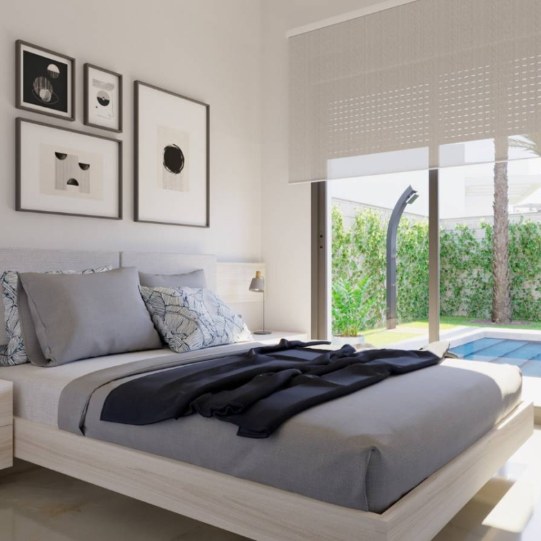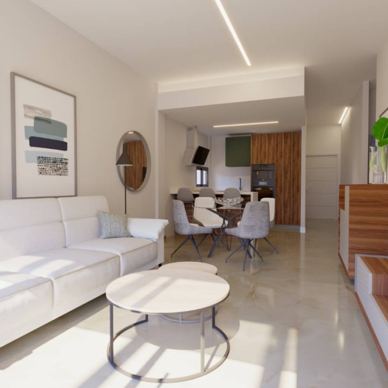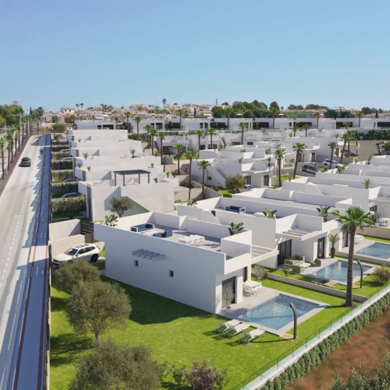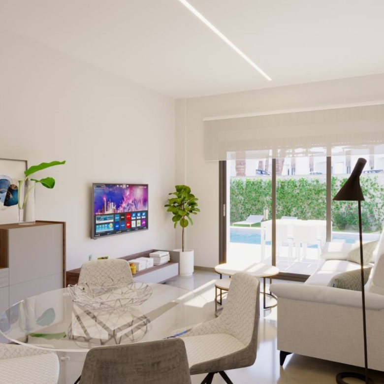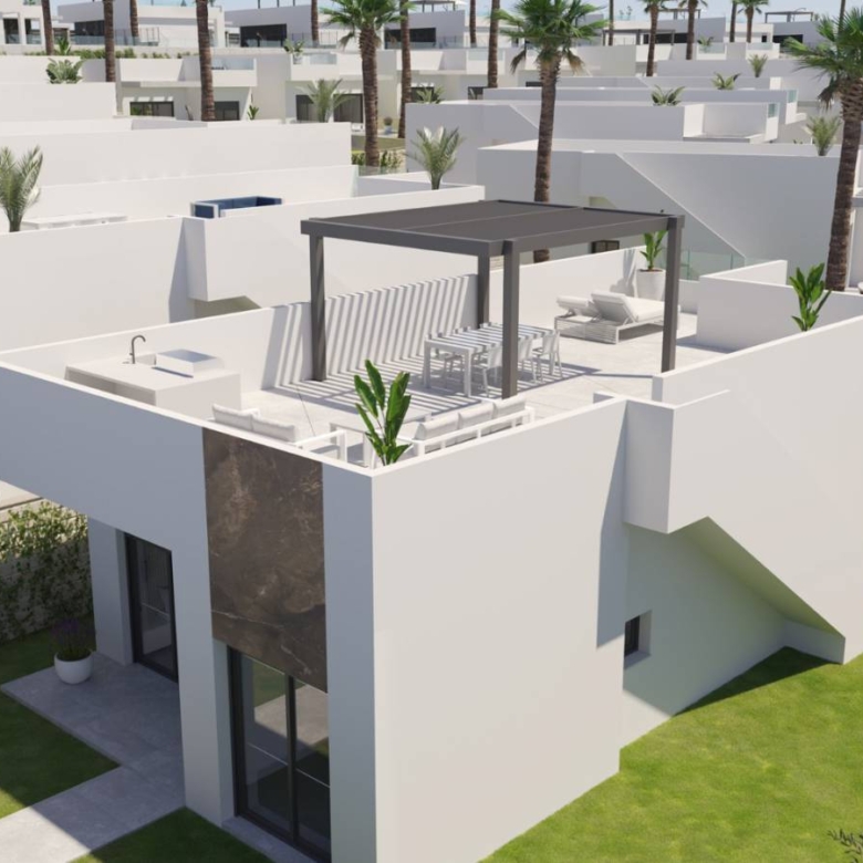 Villas for Sale in La Finca Golf, Algorfa, Costa Blanca Our new villas will form a complex consisting of 35 independent villas. We offer the option of three bedrooms and two bathrooms, providing the best design both externally and internally. A dwelling situated within a large plot of approximately 290m2, which also includes a spacious living-kitchen area with access to a terrace, a solarium, a parking area, and garden zones. Homes built to the highest quality standards, going above and beyond to create a luxury residence that blends seamlessly with the Mediterranean environment, offering a unique space with privileged views. Located in the La Finca Golf Resort urbanization, belonging to the town of Algorfa, south of Alicante and very close to Torrevieja and Orihuela Costa. It is a perfect urbanization, surrounded by nature, where you will find a wide range of leisure and sports services, including its 18-hole golf course, considered one of the best in the area. Its proximity to the sea also makes our villas a perfect location to enjoy both the mountains and the finest beaches. Property ID: GH-24207-D Price: €344,000 Property Size: 103 m2 Land Area: 236 m2 Bedrooms: 3 Bathrooms: 2 Property Type: Villa Property Status: For Sale