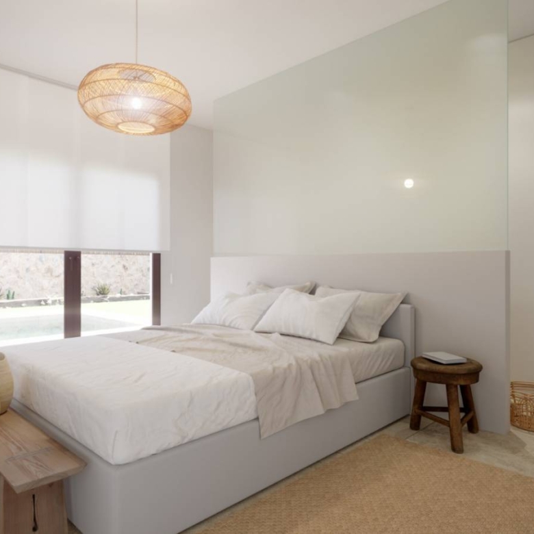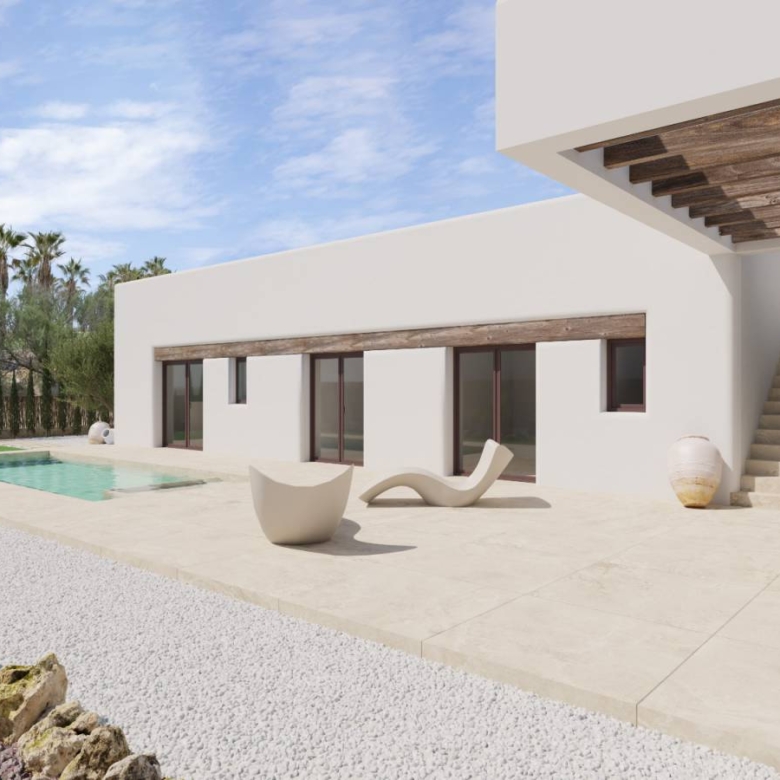 New build villas on La Finca Golf, Algorfa, Costa Blanca Villas with 3 bedrooms and 2 bathrooms, all on one floor, some properties have the possibility of a basement. Each property has its own private 8×3 metre swimming pool, situated in a unique and pleasant environment, in the well known La Finca Golf. The properties have white goods, home automation system with electric blinds, underfloor heating in the bathrooms, energy certification, pre-installation of ducted air conditioning (hot/cold), alarm system fully equipped with cameras, landscaped gardens with automatic irrigation system. Property ID: GH-307619 Price: €660,000 Property Size: 128 m2 Land Area: 454 m2 Bedrooms: 3 Bathrooms: 2 Property Type: Villa Property Status: For Sale