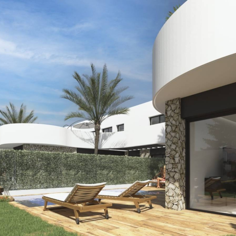 Villas in Heredades, Almoradi, Costa Blanca, Spain Villas distributed on two floors with approximately 200 square metres of plot, delivered with the best equipment, including bath screens, garden finished with artificial grass of the best quality, decorative gardening elements, and pre-installation for solar panels, electric sockets and gate motor for vehicles. The hamlet of Heredades, shared with the town of Rojales, is located right next to the road that joins Rojales with Almoradi. It also has important public services, such as a school, church, sports fields, swimming pool, social centre and health centre. The proximity of the Segura River has made this area one of the most visited by hiking enthusiasts in our region, as it is the site of a tourist route that connects the localities bathed by the river from Guardamar to Orihuela through the river’s groves. It is also the setting for the well-known night-time routes organised by the Almoradi Town Hall, which attract hundreds of people. Property ID: GH-307790 Price: €399,000 Property Size: 140 m2 Land Area: 204 m2 Bedrooms: 3 Bathrooms: 3 Property Type: Villa Property Status: For Sale