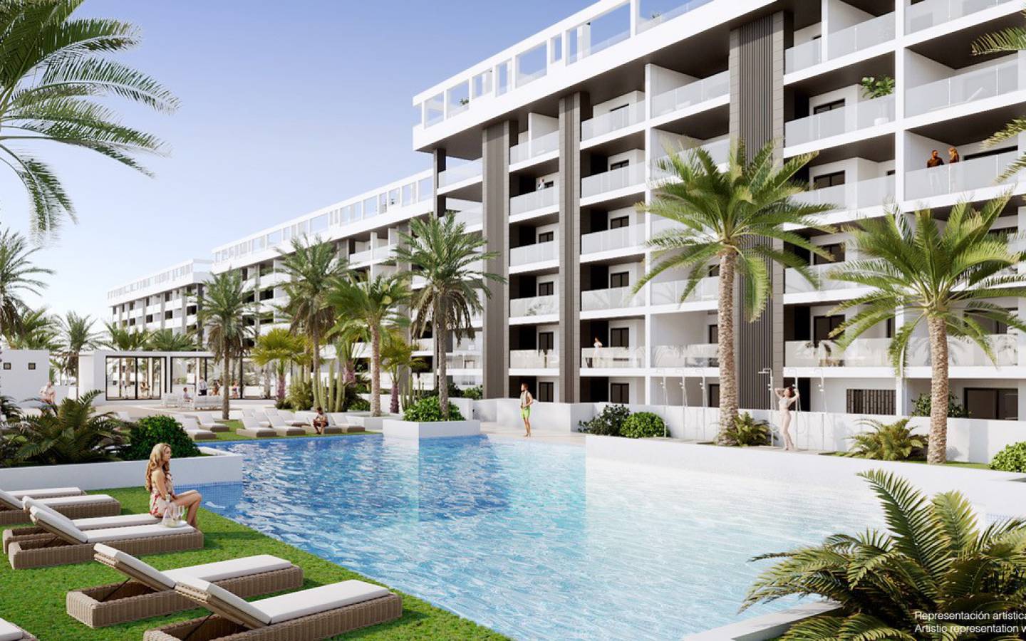 Aparments in La Mata, Torrevieja, Costa Blanca 2 and 3 bedroom flats in a residential complex with all kinds of services, 2 large swimming pools for adults, children’s pool, jacuzzi area, toilets and changing rooms, chillout area, calisthenics area, children’s play area, parking, a multipurpose room, gym, pool bar, and it also has a guard house. The first block of flats in this residential complex is now on sale. This first impressive building offers a variety of panoramic views from its different heights. From the lower floors, you will enjoy views of the beautiful gardens and green areas surrounding the property. As you climb to the upper floors, views of the sea and an idyllic blue horizon are revealed, connecting you to the heart of the Mediterranean. Located in close proximity to the spectacular La Mata beach in Torrevieja, this luxury resort is the setting for an exciting ongoing construction project. This initial project includes 50 spacious flats, the vast majority of which will provide stunning sea views, creating a perfect setting for rest and relaxation. Property ID: GH-307648 Price: €252,800 Property Size: 78 m2 Land Area: 78 m2 Bedrooms: 2 Bathrooms: 2 Property Type: Apartment Property Status: For Sale