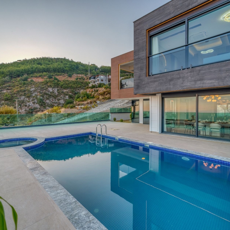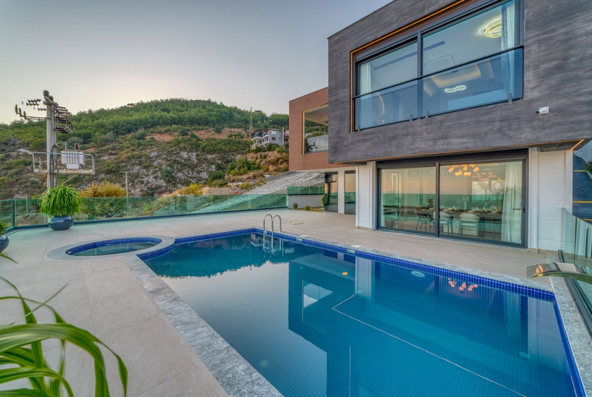 Nestled in the tranquil hills of Alanya, these exceptional villas redefine luxury living, offering residents an unparalleled lifestyle experience. This exclusive project comprises two meticulously designed villas, each set on expansive plots of land, promising privacy and serenity in a coveted location.Key Features:- Two opulent villas, each with four spacious bedrooms and a generously sized living room.- Modern architecture spanning 298 m², with an additional 584 m² of shared space per villa.- Private swimming pool for each villa, measuring 41 m², perfect for relaxation and entertainment.- Two indoor garages per villa, providing secure and convenient parking.- State-of-the-art smart home systems, underfloor heating, and pool heating for ultimate comfort.- Sauna and central systems enhancing the luxurious lifestyle experience.- Panoramic sea views from every room, offering a breathtaking visual backdrop.- Lush gardens providing a serene escape amidst nature’s beauty.These villas stand out for their modern design and high-end amenities, ensuring a lifestyle of comfort and sophistication. The location is superb, with proximity to key amenities: just 1 km from schools, 500 meters to restaurants, 3 km to the sea, and 2.5 km to the city center. The nearby Alanyum Shopping Center is only 4 km away, and convenience stores are easily accessible at 1.5 km. Transportation is seamless with a bus stop just 500 meters away, and for international travel, Gazipaşa Airport is 45 km and Antalya Airport is 125 km.Embrace the opportunity to own a piece of paradise in one of Turkey’s most sought-after destinations. With stunning views of the Alanya Castle and sprawling gardens, these villas offer a unique blend of modern elegance and natural beauty. This is not just a home; it’s a lifestyle choice that promises peace, privacy, and unparalleled luxury. Don’t miss the chance to make this dream home your reality. Experience the ultimate in luxury living today.