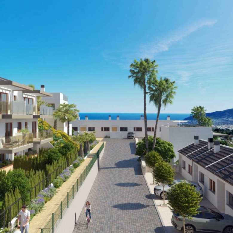 Triplex with sea views in La Nucia, Costa Blanca, Spain A contemporary design and construction development where you can enjoy the climate, excellent sunshine, spectacular views of the bays of Benidorm and Albir and a healthy lifestyle. Close to all services and the sports town of La Nucia. The properties have 3 or 4 bedrooms, terrace with views, parking for two vehicles and garden with direct access to the communal areas. Many of them also have a solarium where you can enjoy evenings outdoors with your friends. - Communal swimming pool- 2 outdoor parking spaces- Paddle court – Fitted wardrobes: 4- Orientation: South- Air conditioning and ducted heating- Garden- Utility room- Communal swimming pool- Reinforced door Possible extras: - Private lift inside the house – Consult price- Private swimming pool – Consult price The size of the properties and their configuration make them ideal for clients who need more space, who want to make part of their properties profitable for renting while they continue to have their own homes, or who want a space for games, an office or an area for the youngest members of the family. Property ID: GH-307749 Price: €380,000 Property Size: 134 m2 Land Area: 170 m2 Bedrooms: 3 Bathrooms: 3 Property Type: Apartment Property Status: For Sale