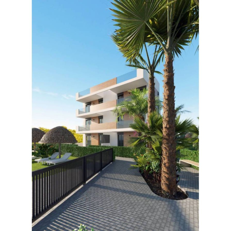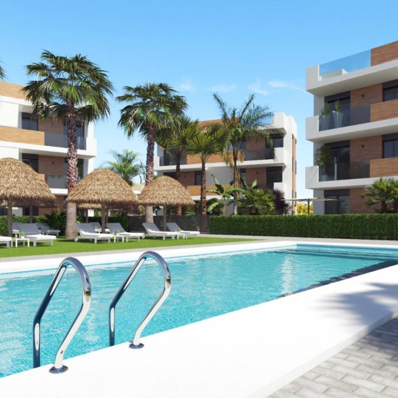 Apartments in La Serena Golf, Los Alcazares, Murcia The development consists of 18 flats with 2 bedrooms and 2 bathrooms, open plan kitchen and spacious living-dining room. There is the possibility of acquiring first floors with large private gardens, first floors with large terraces and penthouses with private solarium. Its unbeatable location offers stunning front line views of the golf course and the Mar Menor. The Residencial is situated on the prestigious ‘La Serena Golf’ course. This course enjoys a great reputation in the area for its lakes and vegetation that weave the course. Another fundamental aspect that makes it unique is that it is connected on foot to the city centre, something that does not occur in any other course, and which allows you to enjoy the tranquillity and beauty of the surroundings without renouncing the services offered by Los Alcazares. Murcia airport is only 25 minutes away, while Alicante airport is 55 minutes away. Property ID: GH-24286 Price: €241,295 Property Size: 86 m2 Land Area: 86 m2 Bedrooms: 2 Bathrooms: 2 Property Type: Apartment Property Status: For Sale