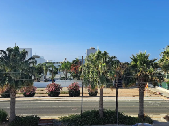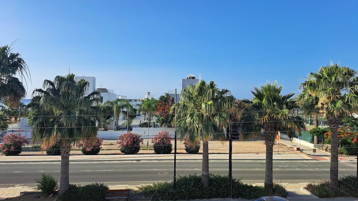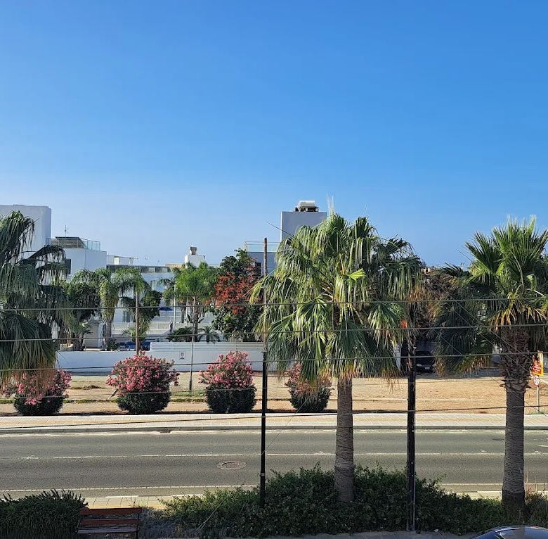 The property offers road views looking out onto the lively Dhekelia Road, which is softened by the presence of trees and plants lining the street. The view encompasses the high-end hotels (such as the Golden Bay Beach Hotel opposite) that define the prestigious tourist area, ensuring a dynamic and desirable environment. While not direct sea view, the proximity to the coast is a clear advantage.