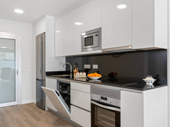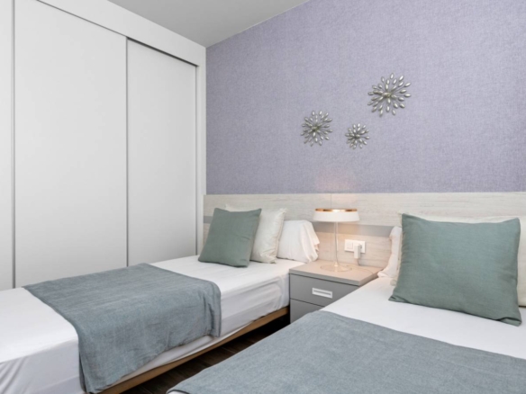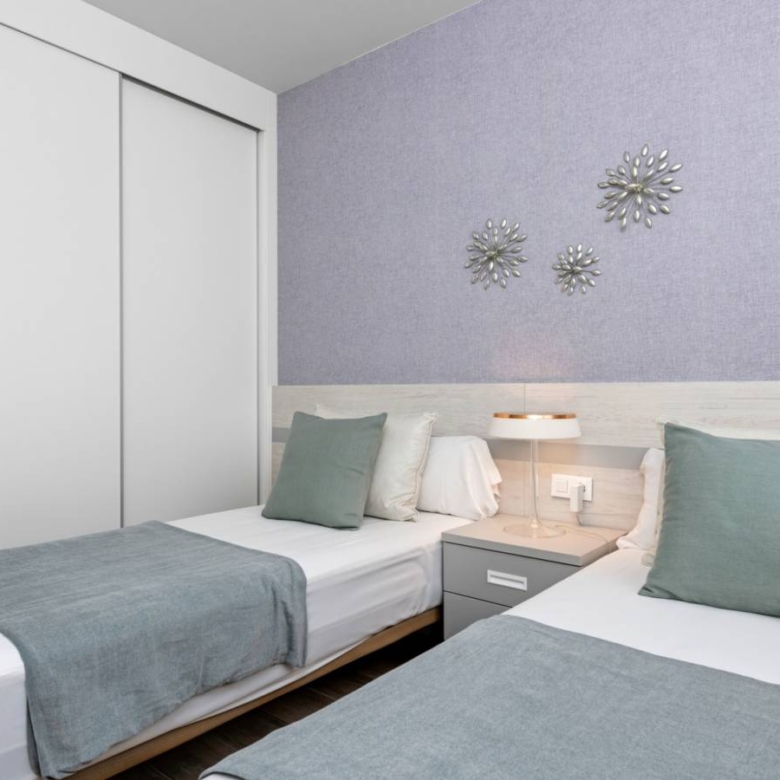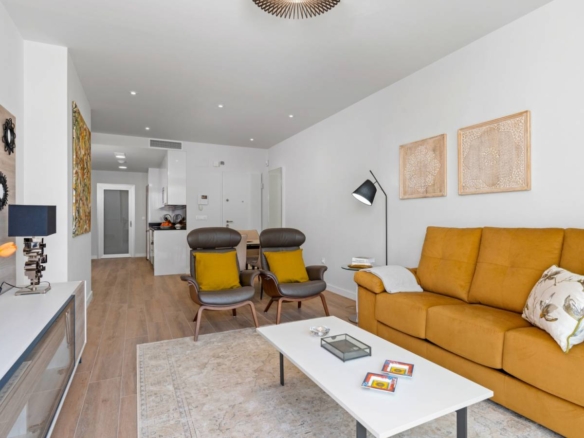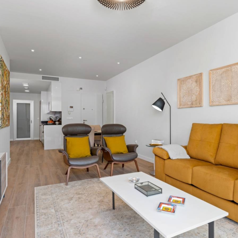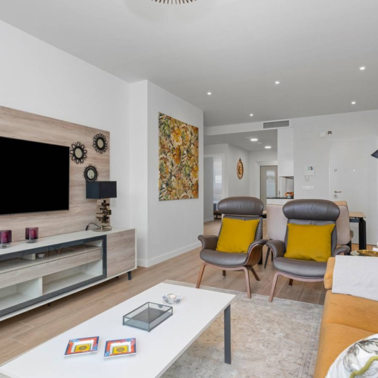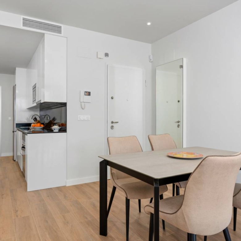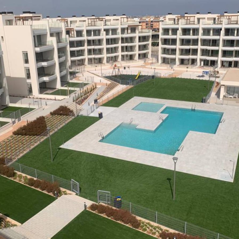 Apartments for sale in La Zenia, Costa Blanca A new project consisting of a total of 94 modern flats with spacious terraces and excellent location close to shops and golf courses. The flats on the first and first floor offer a cosy and sunny balcony of between 22-23 m2 facing the communal pool and garden. The complex has a large communal swimming pool, green areas, sauna, children’s playground and biogym. Key ready The homes are delivered with white goods, LED lighting package, underfloor heating and shower screens in bathrooms, A/C installed by ducts, smart home system Legrand installed, aerothermal system for hot water, motorized blinds and private parking space. Here you can choose your new home between ground floor apartments with garden, loft apartments with cosy balconies or penthouses with sunny roof terraces and fantastic views of the Mediterranean coast and its surroundings. All flats have an open space between the kitchen and the living room, two spacious bedrooms with fitted wardrobes, a utility room and two bathrooms, one of them en suite to the master bedroom. In the surrounding area there are a variety of good restaurants, shops and cafes. Within a short drive you can reach the biggest shopping centre in the area, La Zenia Boulevard, several golf courses or the best beaches Orihuela Costa has to offer. Property ID: GH-24266 Price: €229,800 Property Size: 93 m2 Land Area: 116 m2 Bedrooms: 2 Bathrooms: 2 Property Type: Apartment Property Status: For Sale