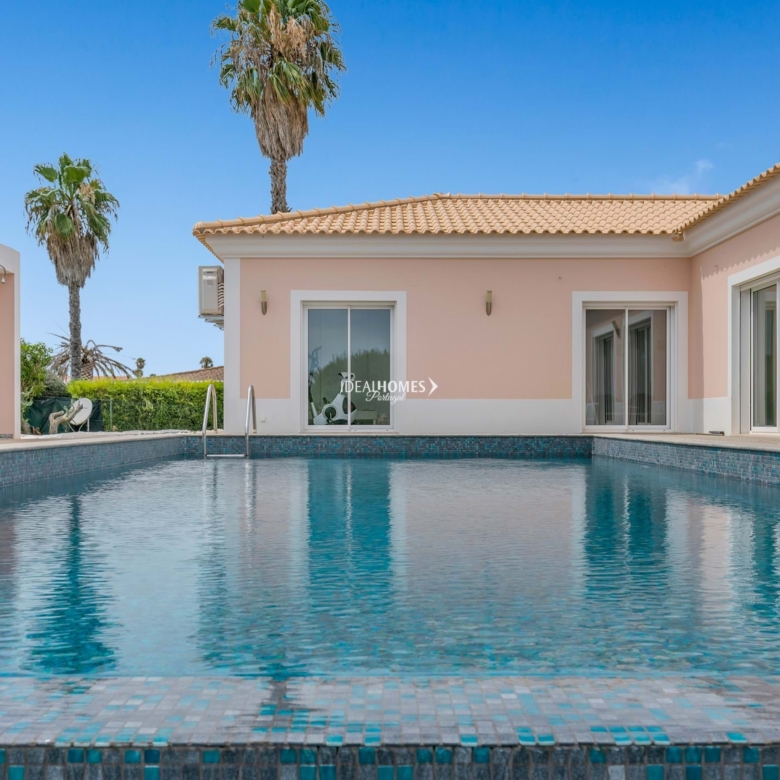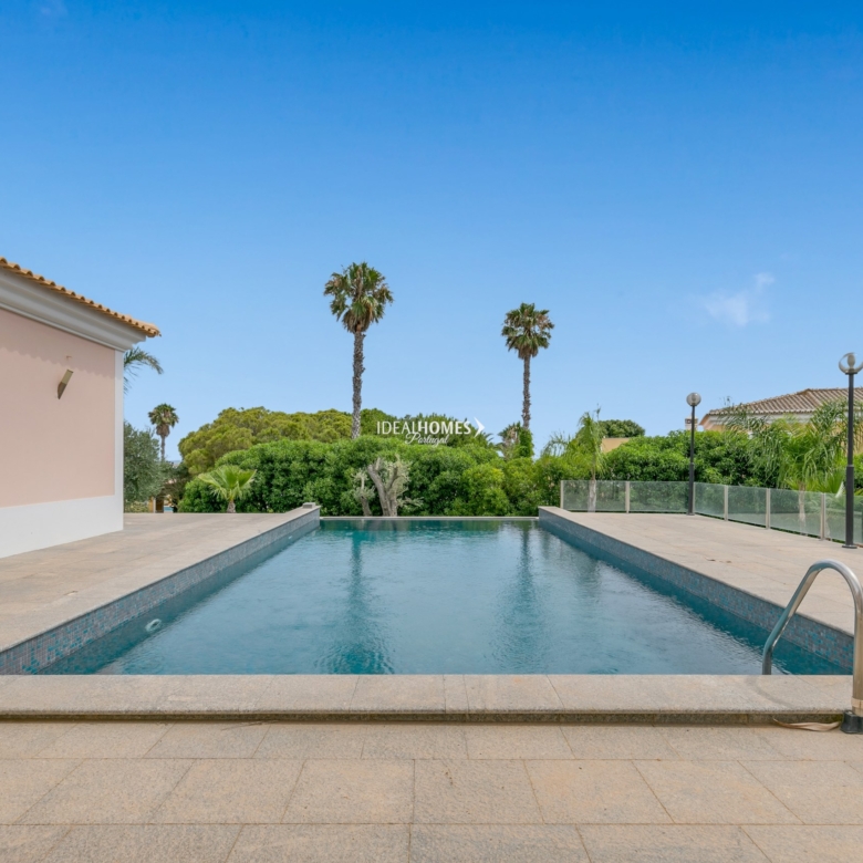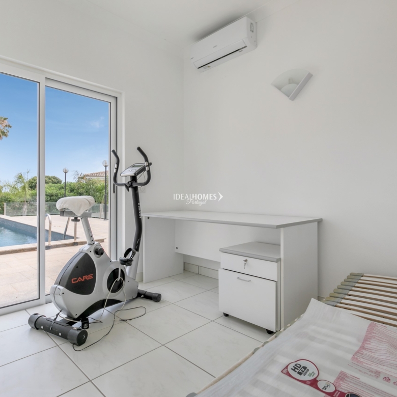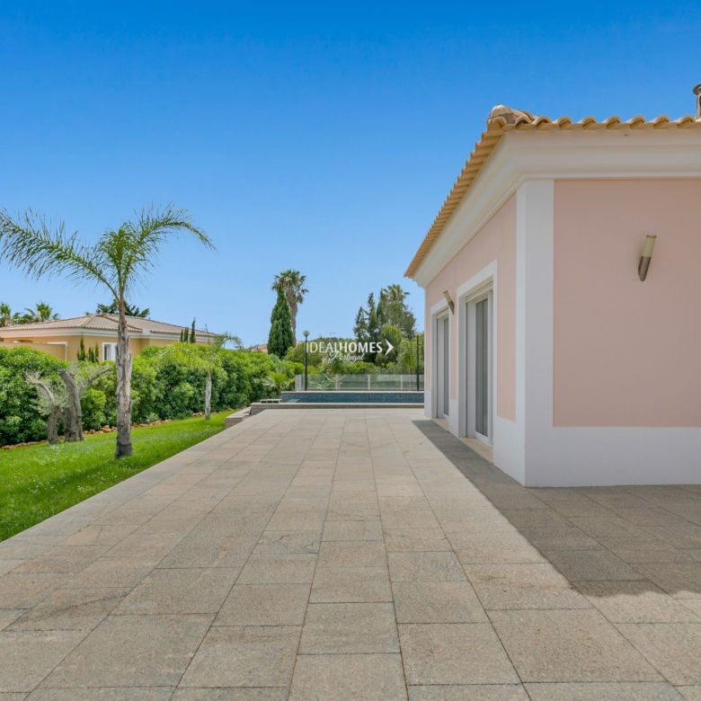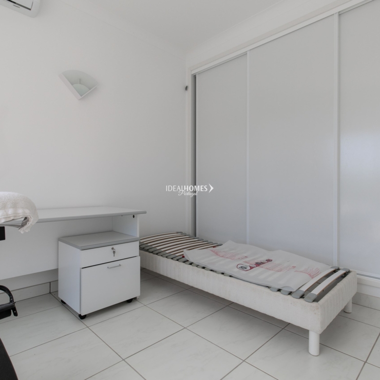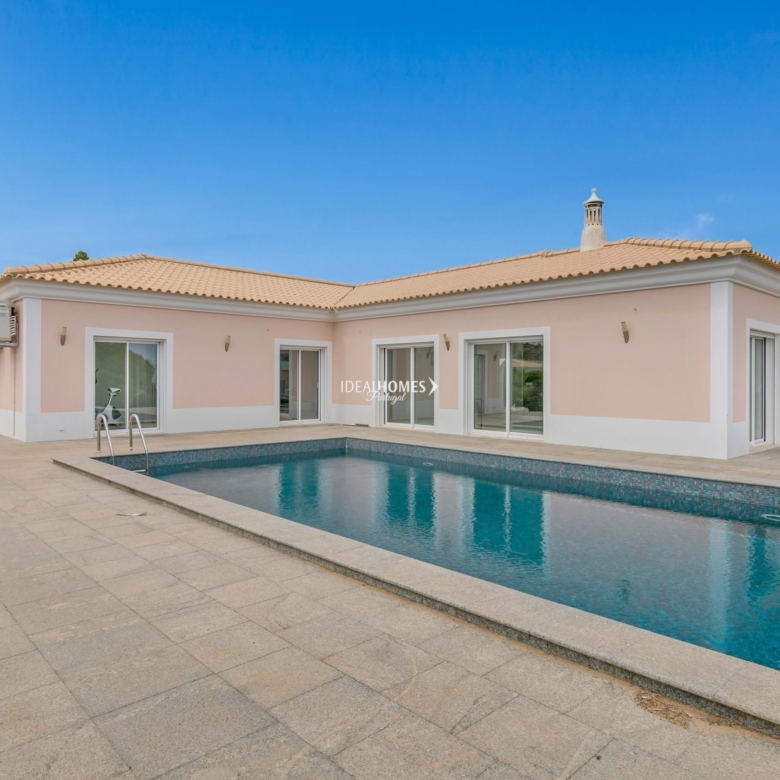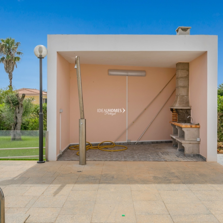 This 3+1 bedroom villa for sale in Lagos is situated in Vale de Lama, next to Palmares Golf Course. Comprising an entrance hall, an open-plan lounge with a dining area leading off into the fully fitted kitchen with a breakfast counter and island. Sliding doors from the lounge lead out to the private swimming pool, shower, BBQ area and well-maintained gardens. There are three bedrooms, one with an en-suite bathroom, two more bathrooms, a WC with a shower and an additional room that is currently being used as a bedroom but could be an office, home-gym etc. There is a basement spanning the size of the villa with a room and an electric garage door, capable of parking more or less eight vehicles. Extra features include: Electric iron entrance gates, AC heating and cooling in all rooms, electric shutters in all rooms, fitted wardrobes and a fireplace. Located just 10 minutes from the beautiful Lagos Marina with all of its bars and amenities and next to Praia do Vale da Lama. Property ID: IDH32669 Price: €1,350,000 Property Size: 396.00 m2 Land Area: 1600.00 m2 Bedrooms: 3 Bathrooms: 4 Property Type: Villa Property Status: For Sale