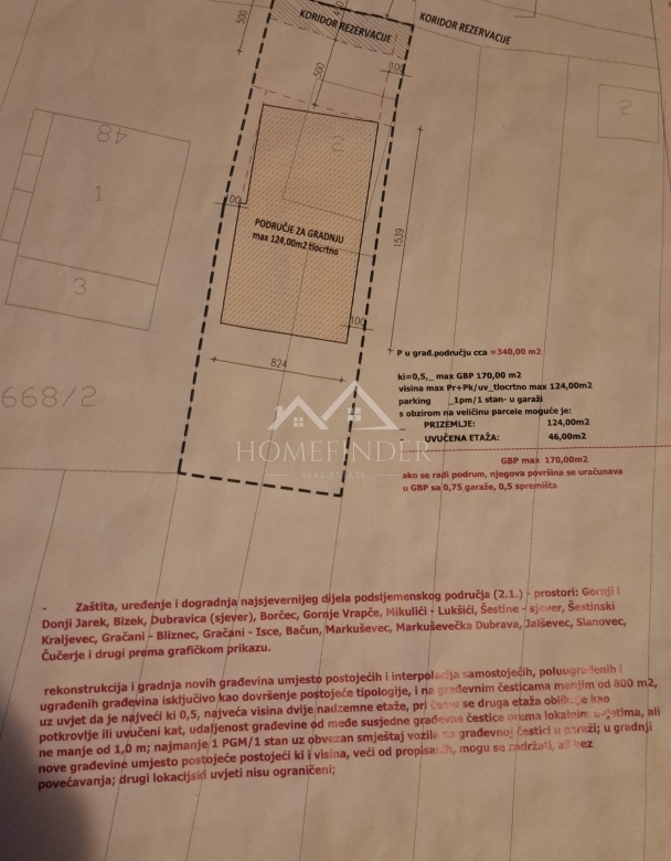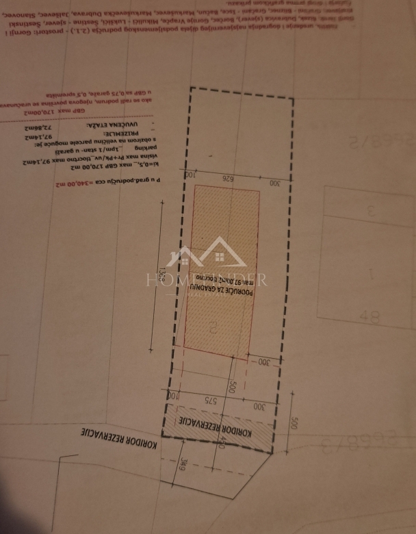 Zemljište je površine 2000 m2. U blizini ima javni prijevoz. Blizina Gimnazije i ekonomske škole, blizina šume i igrališta.