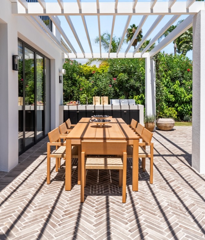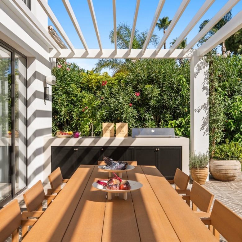 Outside, the villa is equally impressive, with beautifully arranged alfresco dining and living spaces that make the most of Marbella’s sunny climate. With the added benefit of periodic local patrols for peace of mind, this residence offers a rare opportunity to enjoy refined living where every element has been designed with grace, comfort, and understated grandeur.