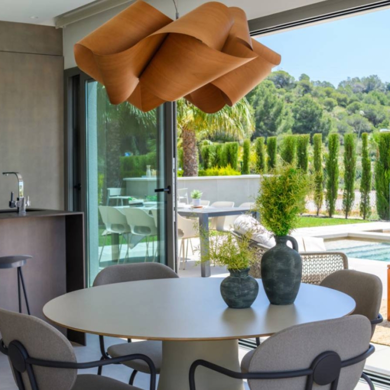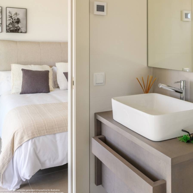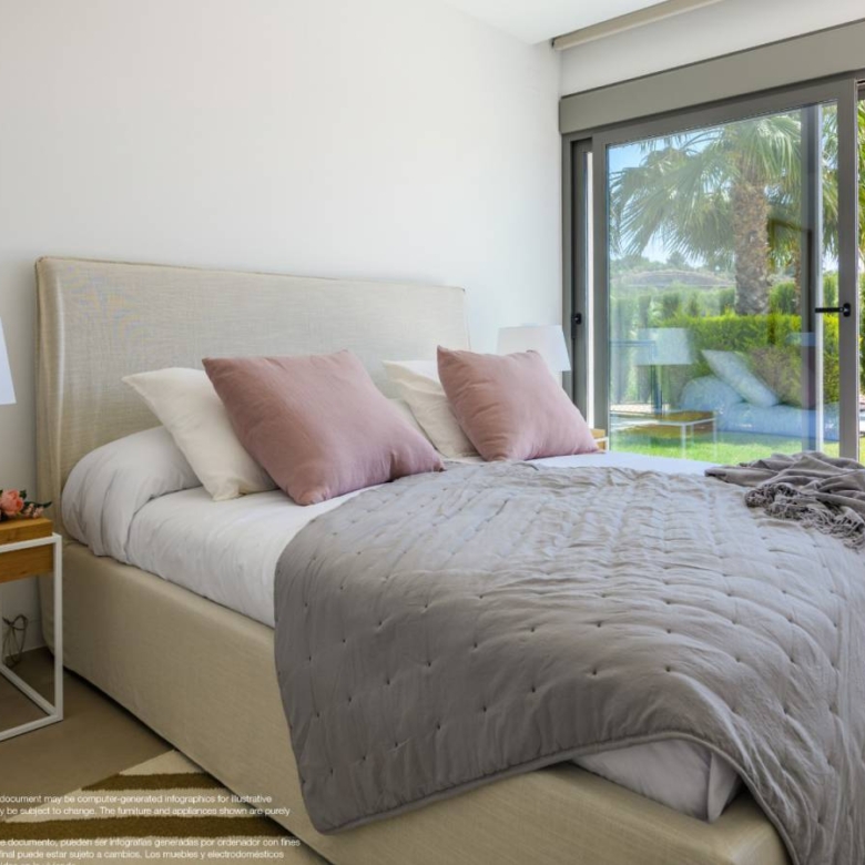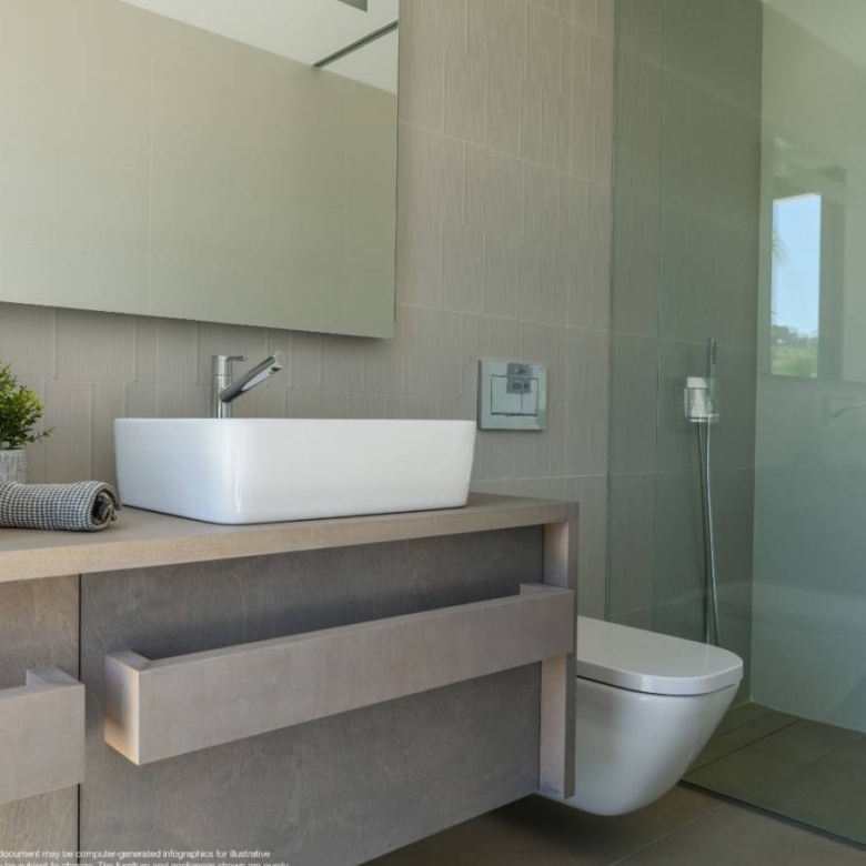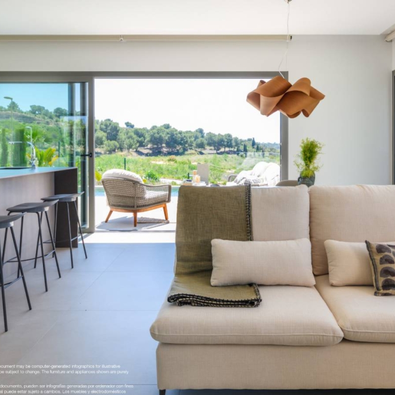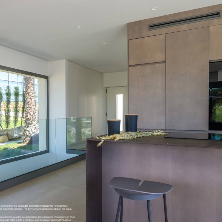 Exclusive villas in Las Colinas Golf, Costa Blanca 3 bedrooms and 3 bathrooms distributed over two floors. The design of these houses presents a contemporary style architecture, with straight and simple lines, whose life opens to the outside, providing amplitude and functionality to each of the rooms of the house, thus guaranteeing the exclusive Mediterranean lifestyle. The house has hot/cold air conditioning through ducts, pre-installation of Air-Zone, electric underfloor heating in bathrooms, fully equipped kitchen (integrated refrigerator, oven, microwave, induction hob, extractor hood, integrated dishwasher, washer and dryer). Pool with heating pre-installation, BBQ pre-installation. The houses have home automation to control lighting, heating, ventilation and air conditioning and a technical alarm system that provide clear advantages in the use of the house. Automation allows remote management of the house including control of the main door, the creation of routines that simulate the presence of people and technical alarms for water leaks and fires in the kitchen, which allow a rapid response to any incident. The houses are integrated with the Mediterranean forest trees through spectacular garden terraces and large windows that blend the interior of the house with its natural environment. Property ID: GH-307364-D Price: €985,000 Property Size: 145 m2 Land Area: 813 m2 Bedrooms: 3 Bathrooms: 3 Property Type: Villa Property Status: For Sale