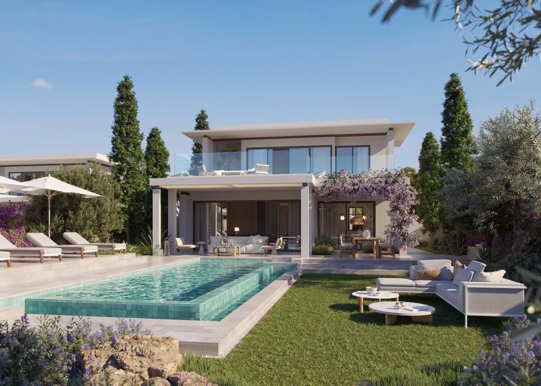 Modern riverside living conceived with a keen eye on sustainable design and seamless connection to the outdoors, is exemplified by this high end architecturally designed six bedroom Residence. A lusciously landscaped side entry path with a bespoke water feature welcomes you to the Villa ensuring your absolute comfort and privacy. Limassol Greens is the largest master plan community development on the island. A residential, golf and spa resort where life makes joyous sense, Limassol Greens is adjacent to The City of Dreams Mediterranean Casino Resort, just five minute drive from Lady’s Mile Beach and ten minutes from Limassol Marina and Limassol’s city centre, while enjoying easy access to the highway and educational, health and shopping facilities in Limassol.