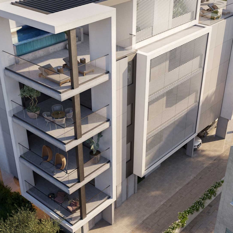 The luxury gated residential complex “Hide” will be located at the heart of Limassol’s tourist area Germasogeia, with 200 meters of proximity to the sea and the famous eucalyptus park Dassoudi. The complex will consist of only six luxury 2- and 3-bedroom apartments along with two luxurious 2+1-bedroom penthouses