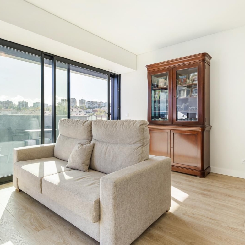 1 bedroom apartment with balcony, on the top floor, in the ValRio condominium. Located next to Parque das Nacões, on Avenida de Berlim, only a few minutes away from everything, very close to the Vasco da Gama shopping centre, the Oriente Station and the airport, accesses that provide a huge ease in reaching any point of the city. The apartment is located on the 7th and last floor with a generous balcony, thus providing an unobstructed view and plenty of natural light. Fully equipped kitchen with Smeg household appliances, bedroom, support bathroom, living room and entry hall, and practically all the rooms connect with the outdoor area. We can also count on air conditioning, 1 parking space and a storage area. Building built in 2022. Energy certificate: class A Manufacturer’s warranty still ongoing. - Valrio I Building/ Builder: Teixeira Duarte - Architecture Project by Atelier Saraiva+Associados - Sustainable Construction and Efficiency Award Energetic in SIL - Best Residential Building Award in the 15th edition of the Construir 22 Awards Porta da Frente Christie’s is a real estate agency that has been operating in the market for more than two decades. Its focus lays on the highest quality houses and developments, not only in the selling market, but also in the renting market. The company was elected by the prestigious brand Christie’s International Real Estate to represent Portugal in the areas of Lisbon, Cascais, Oeiras and Alentejo. The main purpose of Porta da Frente Christie’s is to offer a top-notch service to our customers. ’ Property ID: PDF-PF31719 Price: €425,000 Property Size: 55.4 m2 Bedroom: 1 Bathroom: 1 Year Built: 2022 Property Type: Apartment Property Status: For Sale