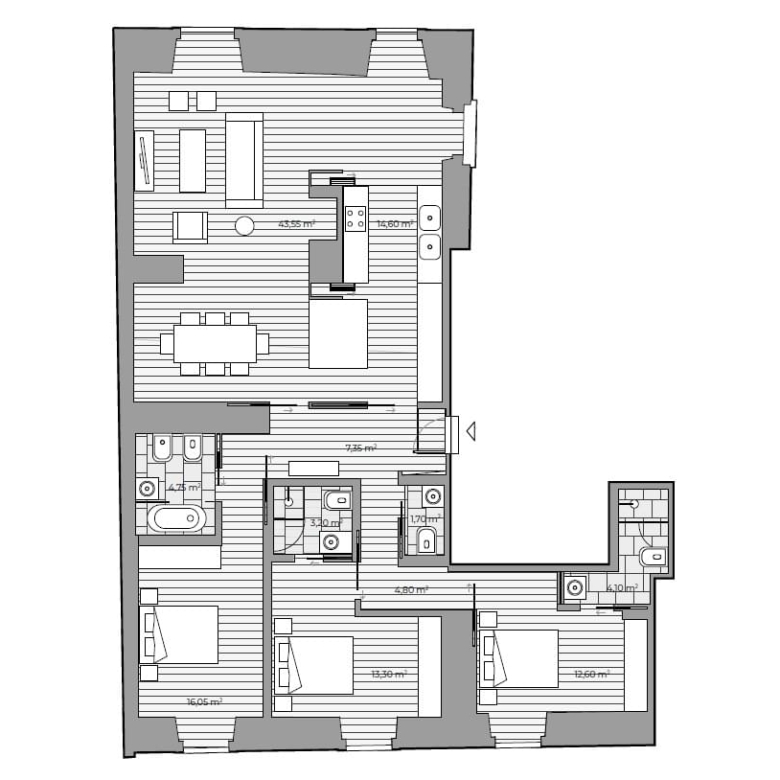 3 bedroom apartment, inserted in a condominium that kept its originality and historical elements and currently providing a new quality of life where you can rejoice from two swimming pools, garden and spa. Distributed with generous areas, with a 43 sqm living room and direct access to an exclusive 53 sqm terrace, a 14 sqm fully equipped kitchen, social bathroom and three bedrooms – all en suite and with areas comprehended between 16 sqm and 12 sqm. Garage for two cars and a storage area. Safe condominium. The imposing Palacio da Cruz da Pedra dates back to the early 17th century, property and residence of the Portuguese nobility, and it is now reborn as a unique and differentiated residential project. There are 13 units, from 2 to 4 bedroom duplex and triplex apartments, with areas comprehended between 130 and 310 sqm, with generous balconies and patios, as well as storage areas and 2 to 3 garage spaces. Each apartment offers ample areas with large windows, pine flooring, fireplaces, stone kitchens and top of the range household appliances. The condominium provides gym, SPA and two swimming pools with welcoming gardens. The Cruz da Pedra development is located just a few minutes away from the charming Chiado neighbourhood and the Tagus River. Property ID: PDF-PF30899 Price: €1,290,000 Property Size: 167.52 m2 Bedrooms: 3 Bathrooms: 3 Property Type: Apartment Property Status: For Sale