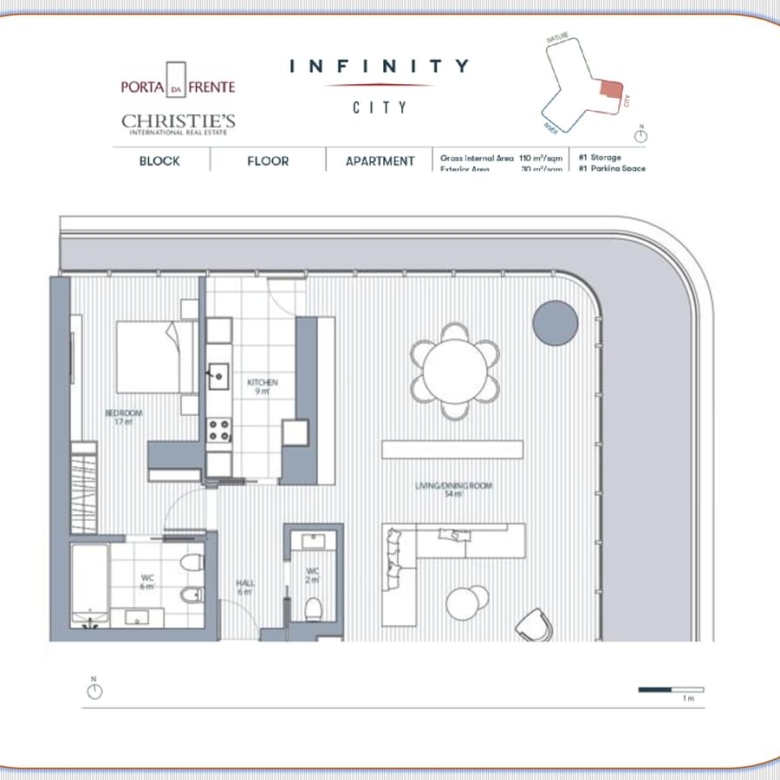 NEW 1 bedroom apartment with 110sqm, integrated in the exquisit condominium INFINITY. Overlooking the city, this bright apartment is distributed as follows: - Living room and covered balcony: 54sqm + 30sqm - Fully equipped kitchen: 9sqm - Suite: 17sqm - Bathroom of the suite: 6sqm - 1 parking space with electric charging - 1 storage area Infinity is an unprecedented project in Lisbon, in a privileged location for access to city centre and its exits towards South, East and North. A place where lifestyle is assumed as an art form, perfectly designed for a splendid life, by yourself, in family or for pure investment. The condominium provides: - Panoramic indoor and outdoor swimming pool - Health club and gym - SPA - Paddle court - Concierge and 24hour security - Condominium lounge, preciously decorated and equiped: - big screen, kitchenette, washrooms - kids club - meeting rooms a few a minute’s walk from: Calouste Gulbenkian Foundation El Corte Ingles Monsanto Natural Park Public transportation network Proximity to prestigious public and private schools Shopping centres and traditional local business Hospitals Parks and gardens – the area is flat No detail has been unattended! Property ID: PDF-PF30897 Price: €820,000 Property Size: 110.0 m2 Bedroom: 1 Bathroom: 1 Year Built: 2023 Property Type: Apartment Property Status: For Sale