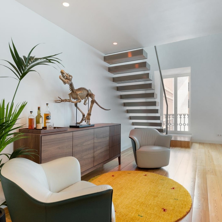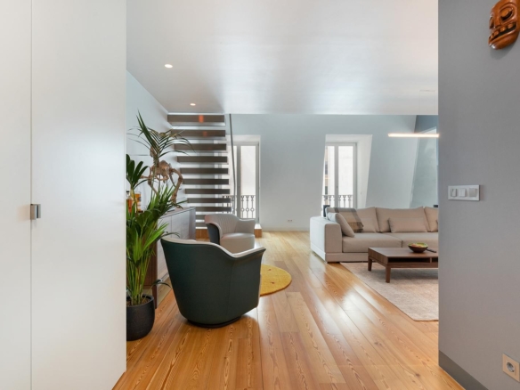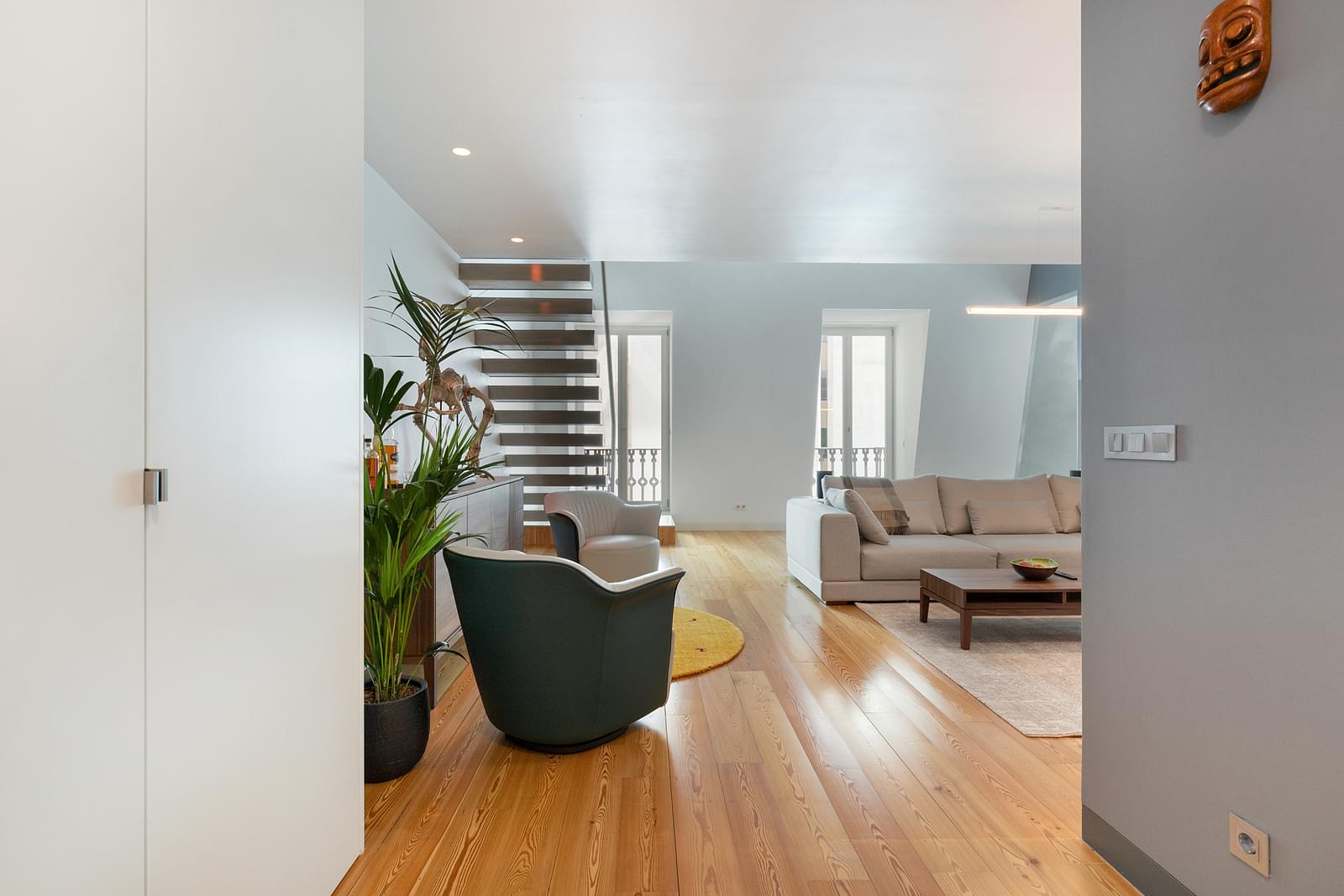 1 bedroom duplex apartment, with terrace, located in Avenida da Liberdade. It has an around 130 sqm area, a private terrace with 26 sqm and parking. The apartment is bright, ample, comfortable and guarantees total privacy. It comprises a living room with a double high ceiling, equipped kitchen and bathroom on the first floor. The second floor is composed by a mezzanine area with storage, a suite and terrace. Located in a fully rehabilitated building that kept the original charm of the facade, combined with modern finishes and concierge service. The Liberdade 203 building consists of a set of recovered buildings that surround Avenida da Liberdade and Rua Rosa Araujo, with three independent entrances for the residents. Liberdade 203 takes on its most cosmopolitan face and unequivocally contributes to consolidate the Avenue as a reference of quality and prestige on an international scale. This is an ambitious requalification, which returns new flashing times, as a way to honour the heritage of Lisbon to this set of buildings. Porta da Frente Christie’s is a real estate agency that has been operating in the market for more than two decades. Its focus lays on the highest quality houses and developments, not only in the selling market, but also in the renting market. The company was elected by the prestigious brand Christie’s International Real Estate to represent Portugal in the areas of Lisbon, Cascais, Oeiras and Alentejo. The main purpose of Porta da Frente Christie’s is to offer a top-notch service to our customers. Property ID: PDF-PF30534 Price: €1,300,000 Property Size: 129.0 m2 Bedroom: 1 Bathroom: 1 Property Type: Apartment Property Status: For Sale