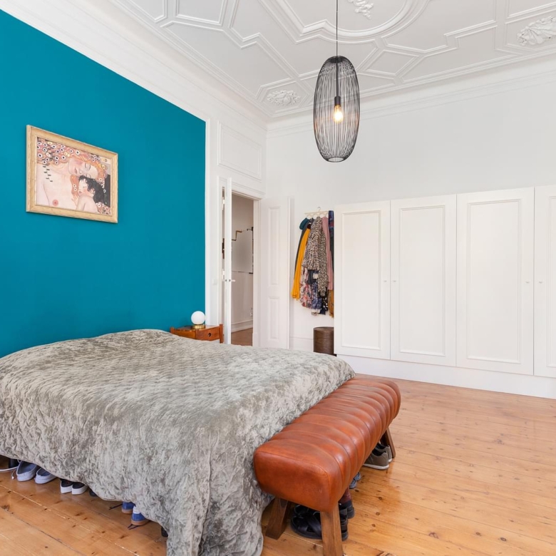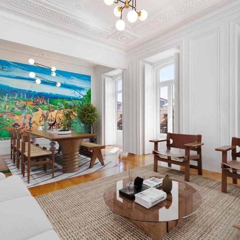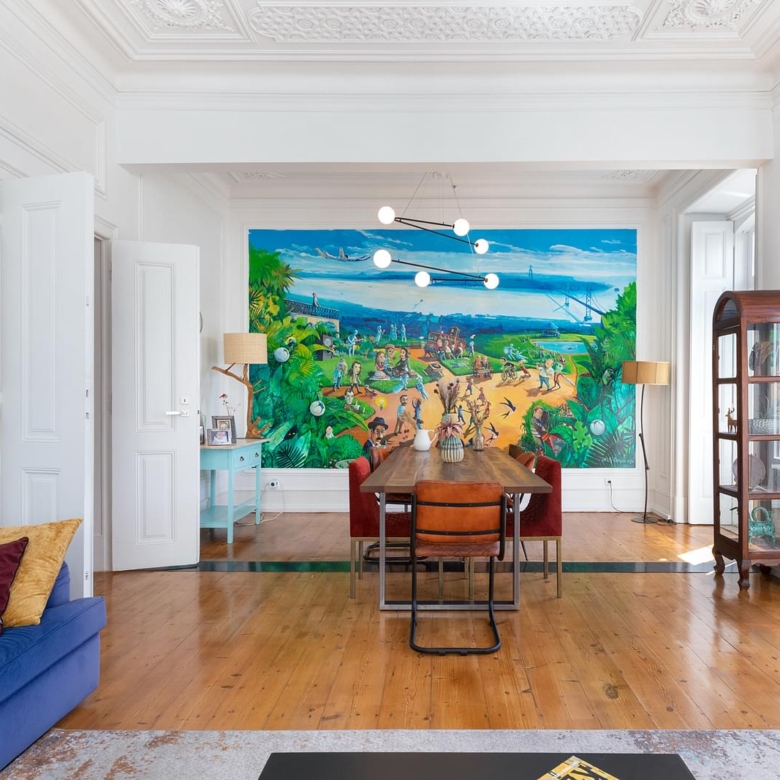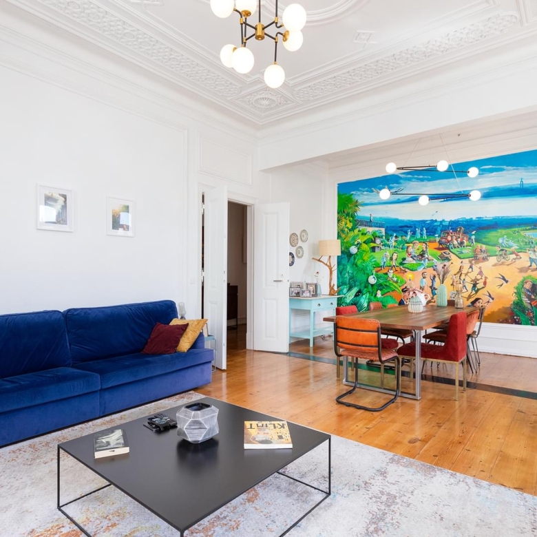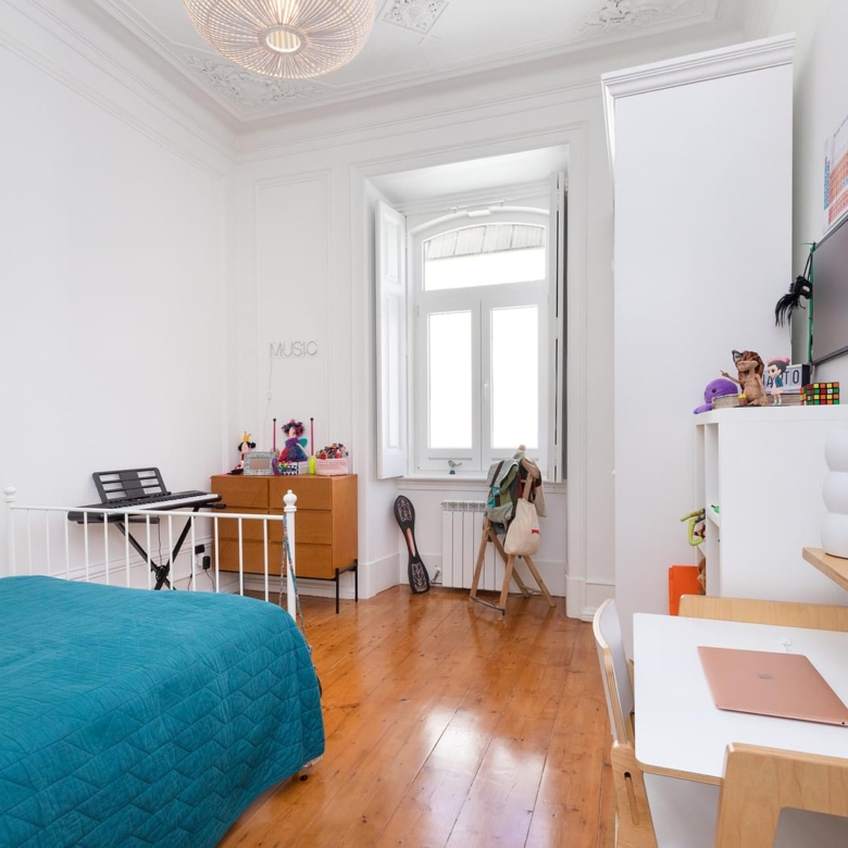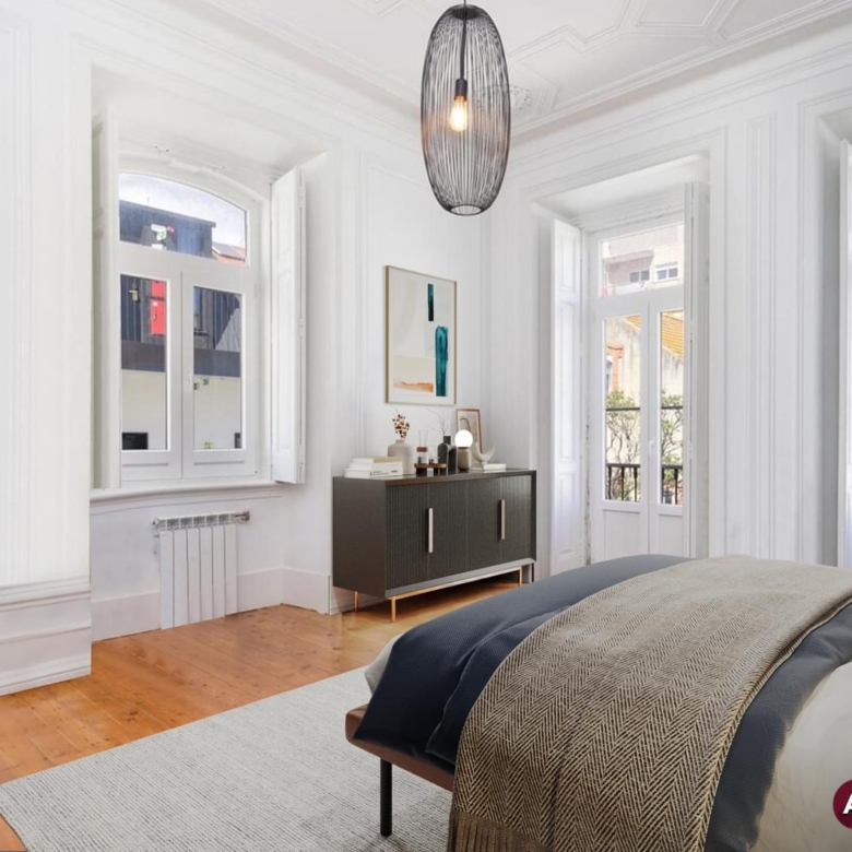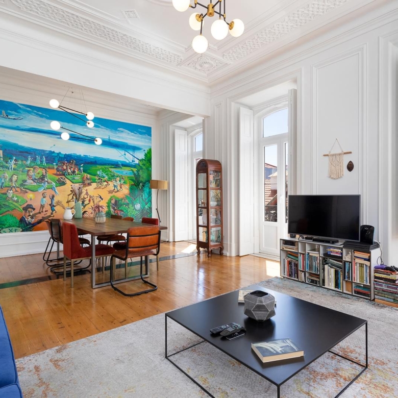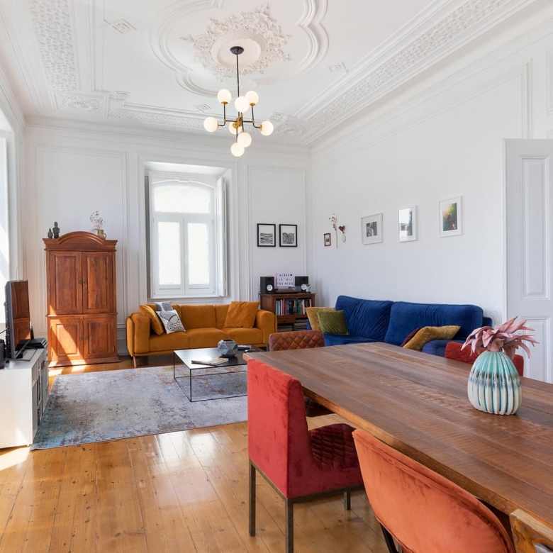 Fully refurbished apartment, located in one of the most emblematic buildings in Bairro Andrade. Originally, Manuel Goncalves Pereira d’Andrade, owner of the land in this area, ordered the construction of this typical neighbourhood in the late 19th century, giving the streets the names of the women in his family. Of generous areas, as well as a 3.80 metres high ceiling, which provides plenty of luminosity (11 windows/doors), an amplitude that easily offers the experience to appreciate this space with several original details such as crafted ceilings, solid wood plank flooring, shutters and large dimensioned spans that bring us the Lisbon light. Ample living room with around 34 sqm, with two fronts and a beautiful original mural of the painter Carlos Farinha. Three bedrooms with areas between 12.50 and 23 sqm, having the main bedroom also two fronts. Support bathroom with 7 sqm, fully equipped kitchen with 16 sqm, laundry area, pantry, central heating, two balconies, being one of them located in front of the building and the other one in the rear of the building. Between 2018 and 2020 the building was renovated (roof, gas pipelines, water and electricity), all the communal parts of the building were renewed. The apartment includes one parking space in the patio, with access by one of the crafted iron gates that flanks the building. Property ID: PDF-PF30508 Price: €2,000,000 Property Size: 170.0 m2 Bedrooms: 3 Bathroom: 1 Property Type: Apartment Property Status: For Sale