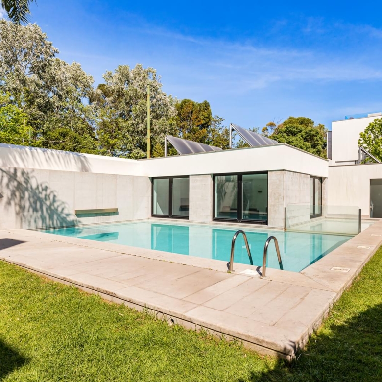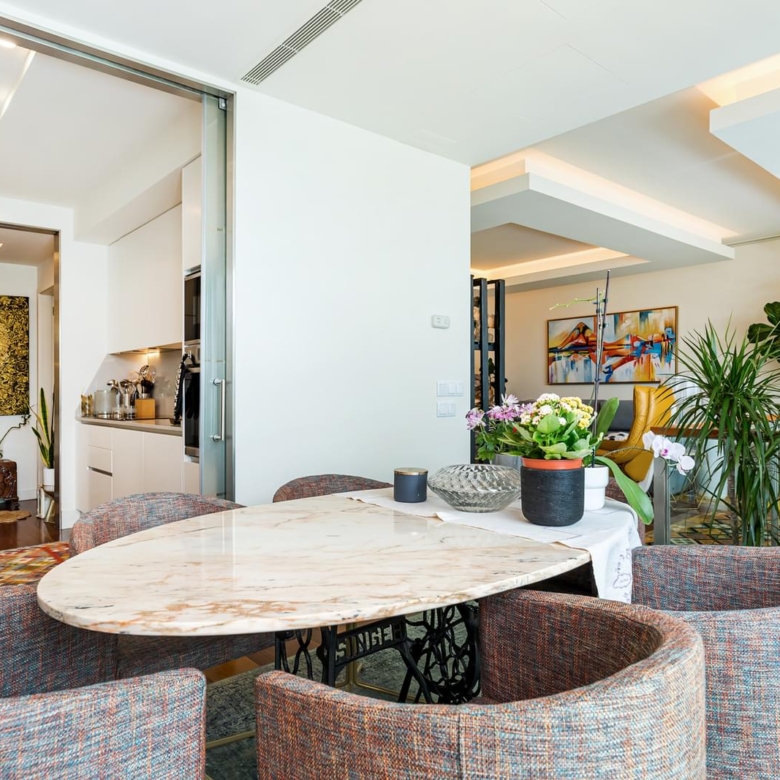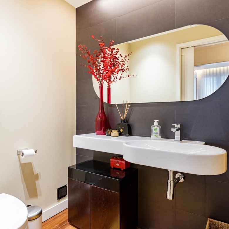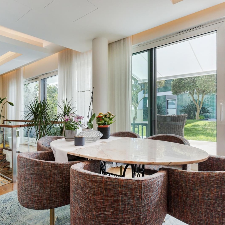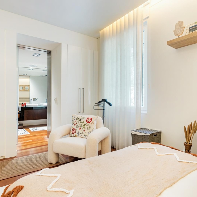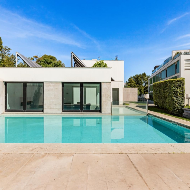 In one of the most prestigious and safe areas of Lisbon – Restelo – we find this superb apartment inserted in a luxurious closed condominium, with great comfort and quality, with swimming pool for adults, swimming pool for children, several garden areas and concierge. This condominium presents a contemporary concept where the new and the recovered interact, as well as serenity, comfort and privacy. A unique experience in which the garden surrounds the apartment providing a housing dynamics and at the same time with all the comfort and security that a condominium offers. Enjoying a terrace with exclusive use of the apartment and with a sun exposure facing south, the luminosity is predominant practically throughout the day in this outdoor space ideal for enjoying with family and friends. It is distributed across the ground floor and -1 floor, as follows: -Entry hall -Social bathroom -Fully equipped modern kitchen -Two suites with several wardrobes and one of them with a closet area -Ample living room with fireplace and large dimensioned glazed windows that access the terrace -Stairs to access the lower floor -Large dimensioned living area with plenty of wardrobes made to measure and that has an incredible versatility, being possible to work as an office, a gym, a bedroom (there is a double bed already built, specially designed for this space) or whatever you need. It should also be noted that it has direct access through the garage. -Bathroom to support this room -Laundry area built into the cabinets and with space for storage of all maintenance products. It also includes 3 parking spaces. Come and visit this luxury apartment, with enormous privacy, but only a few meters walking distance from the riverside area and the shopping area of ”Careca” with cafes, restaurants, bank, pharmacy, laundromat and clothing stores. Porta da Frente Christie’s is a real estate agency that has been operating in the market for more than two decades. Its focus lays on the highest quality houses and developments, not only in the selling market, but also in the renting market. The company was elected by the prestigious brand Christie’s International Real Estate to represent Portugal, in the areas of Lisbon, Cascais, Oeiras, Sintra and Alentejo. The main purpose of Porta da Frente Christie’s is to offer a top-notch service to our customers. Property ID: PDF-PF33361 Price: €1,200,000 Property Size: 213.0 m2 Bedrooms: 2 Bathrooms: 4 Property Type: Apartment Property Status: For Sale