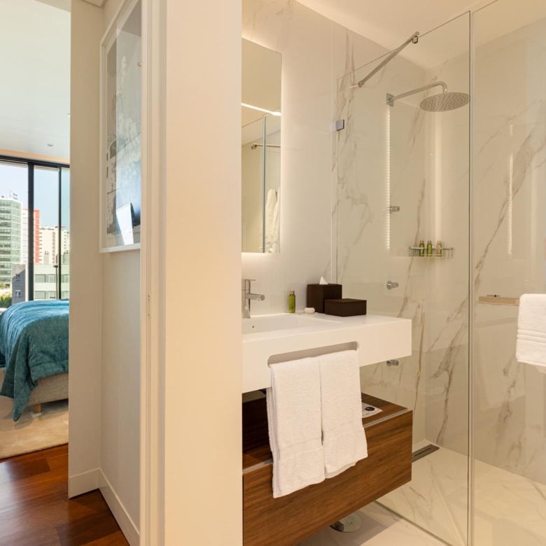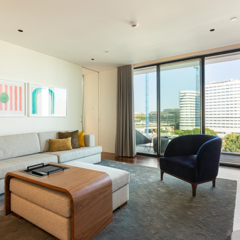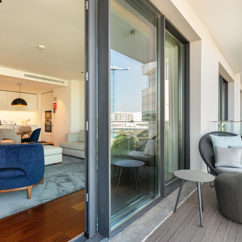 Exceptional contemporary apartment in the most exciting and family-friendly neighbourhood of Lisbon: Parque das Nacões. Created by the award-winning Elegant Group and designed by the internationally renowned architect Eduardo Capinha Lopes, Martinhal Residences combines a luxurious family experience and renowned concierge services with the excellent amenities of this modern neighbourhood. Apartment with guaranteed profitability, bright and elegant, with a balcony overlooking the river and the beautiful park. Carefully thought out and designed under the highest standards of quality, these impressive apartments have been designed to provide the highest standards of comfort for families. Details such as the generous dining areas and the access to the balcony, adorned by trees, give rise to a vision for the future of urban family homes of the highest quality. – The apartments in the Martinhal development are the best in their class and provide access to Martinhal’s unique services. Together with the architect, the promoters chose the best materials and equipment for the finishes. With our Bulthaup kitchens, Calacatta tiles from the Margres Prestige range in the bathrooms and Iroko varnished wood flooring, we bring a new definition of luxury living in Lisbon. The Martinhal Circle: As part of its unique offer, Martinhal Residences will host Lisbon’s first family club. The club will be the perfect space to spend time with the family, counting on indoor and outdoor heated swimming pools, a gym, outdoor playground and Martinhal’s award-winning kids’ club. The concept also provides a place where families, both residents and non-residents, can socialize while taking advantage of a co-working area, yoga and other similar classes, a sophisticated restaurant space, The Oriental, with its restaurant, cafe and lounge bar, which will host both social and business activities. Our concierge service for families is available whenever you need help. Martinhal Circle takes advantage of the Elegant Group’s many years of experience in creating top kids’ clubs at each of the Martinhal establishments – where the art of caring for families has become unmatched. Porta da Frente Christie’s is a real estate agency that has been operating in the market for more than two decades. Its focus lays on the highest quality houses and developments, not only in the selling market, but also in the renting market. The company was elected by the prestigious brand Christie’s to represent Portugal, in the areas of Lisbon, Cascais, Oeiras, Sintra and Alentejo. The main purpose of Porta da Frente Christie’s is to offer a top-notch service to our customers. Property ID: PDF-PF29925 Price: €900,000 Property Size: 96.9 m2 Bedrooms: 2 Bathrooms: 2
