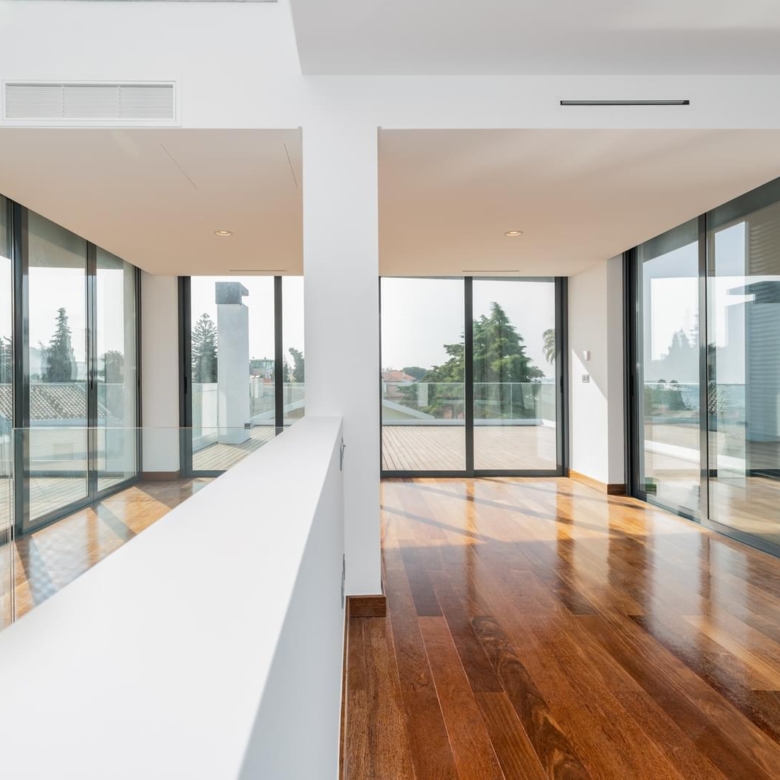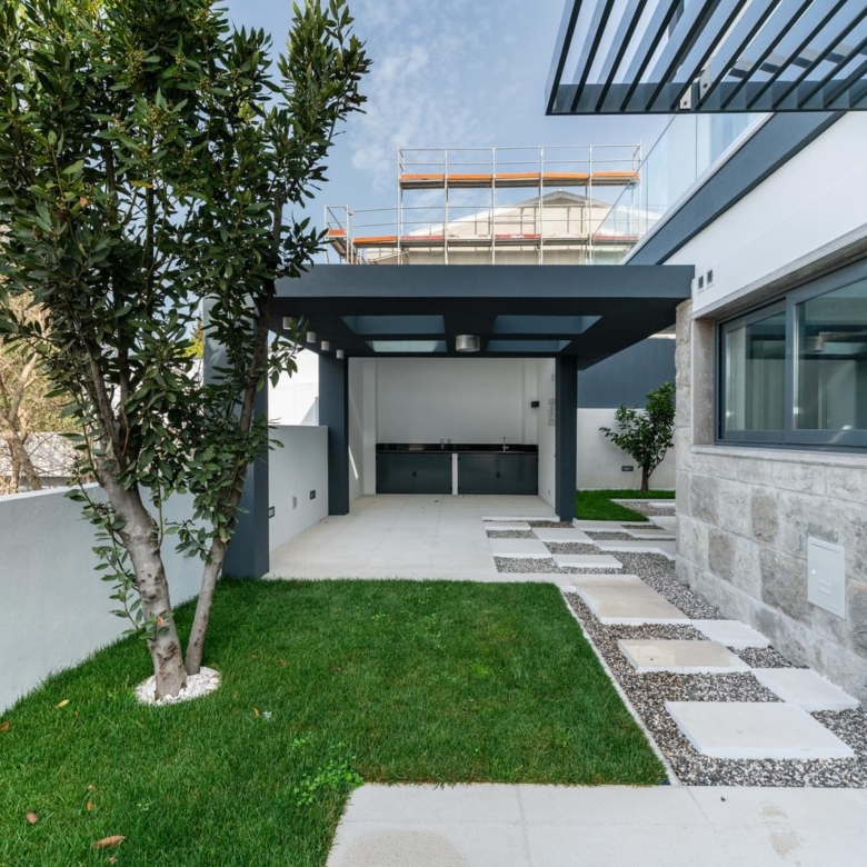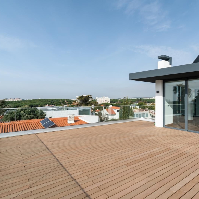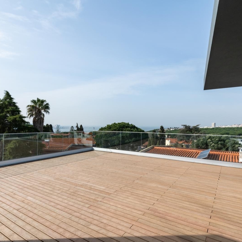 Exclusive villa located in one of the most noble and safe residential areas of Lisbon – Restelo. This modern architecture villa has everything you need for a great quality of life. It consists of 4 suites and 1 bedroom, 2 interior bedrooms, dining room with fireplace, living room with glass window overlooking the garden and pool, equipped kitchen with laundry area and access to the outside, barbecue area, several balconies, huge terrace with fabulous views of River and Monsanto. Closed garage for 2 cars and outside space for 3 cars. Also noteworthy are the flooring in sucupira, Zanussi appliances, air conditioning, the advanced home automation system, electric shutters and solar panels. Property ID: PDF-PF32096 Price: €3,500,000 Property Size: 350.0 m2 Land Area: 527.0 m2 Bedrooms: 5 Bathrooms: 6 Property Type: House Property Status: For Sale