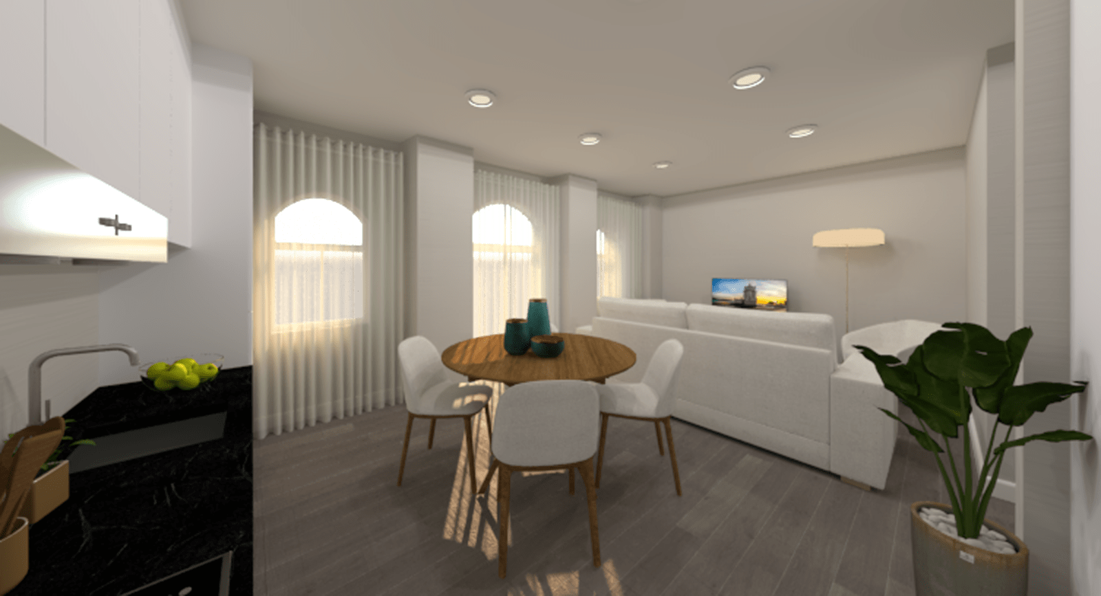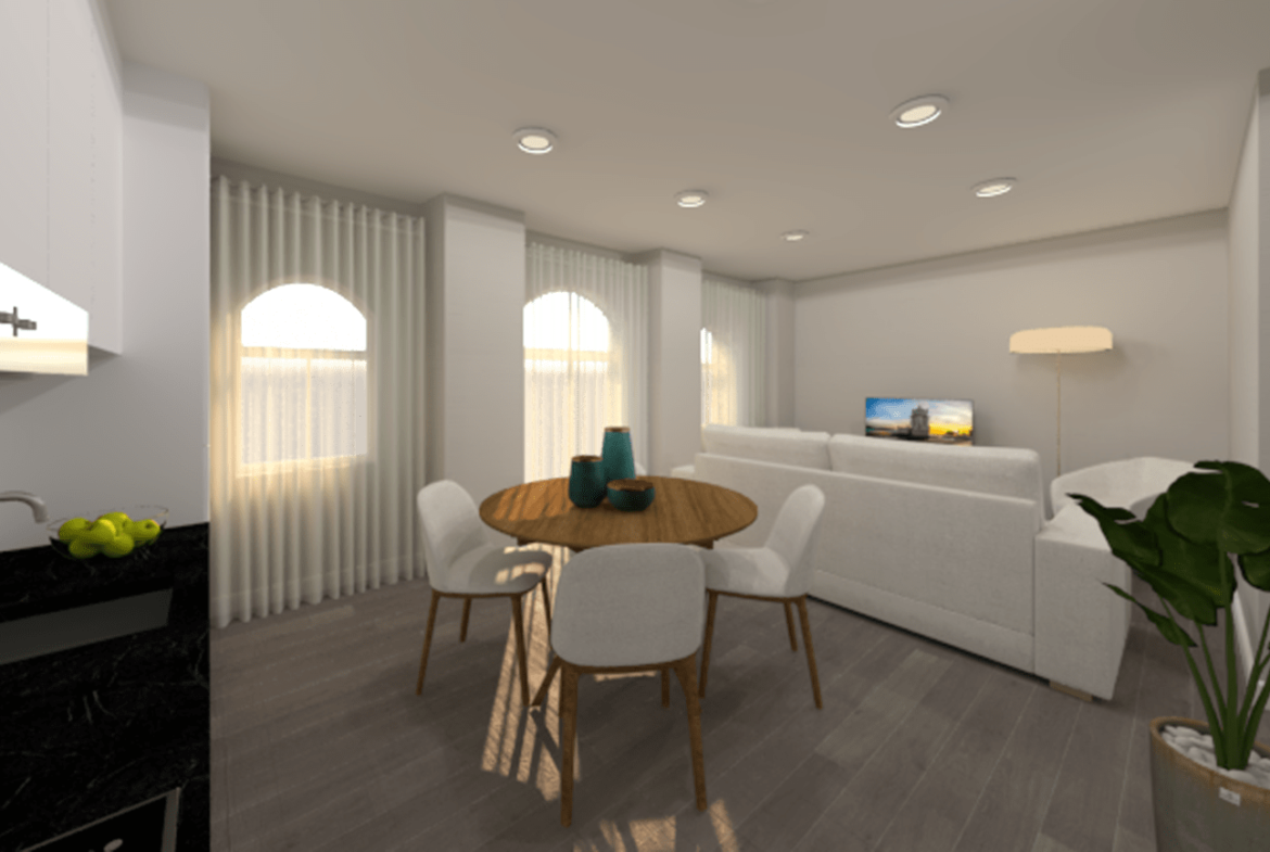 2 bedroom apartment, under remodelling, inserted in a traditional building coated with tiles, completely refurbished and composed by 4 floors, in Lisbon, in the parish of Sao Vicente. Building with two fronts without elevator. The apartment is distributed as follows: - Entry hall - Equipped kitchen, open to the living room: 30 sqm, with a balcony that provides river view - Bedroom: 12 sqm with a small facade balcony (1.6 sqm) - Bedroom: 12 sqm - Bathroom: 2,7 sqm with suspended sanitary ware Other characteristics: - The kitchen has white cupboards; Tile all over the wall behind the cupboards; Oven, induction hob, exhaust fan, microwave, built-in dishwasher, built-in washing machine, water heater and built-in fridge freezer - White lacquered window frames with double glazing - Tilt and turn window frames in all the rooms - Suspended ceiling with recessed LED lighting in all the rooms - Pre-installation of air conditioning The 3D images reflect the finishes of the promoter. The apartment is sold furnished and equipped. Sao Vicente is an area of old houses, with residents who were born and raised in the neighbourhood, but also with some new young inhabitants that look for the city centre. It is a neighbourhood that is almost entirely on a hill, thus creating elevated points with privileged views over the historical area of the city and the Tagus River. Right here, by the river, we find one of the most pleasant areas of Lisbon, Cais da Pedra, where some of the trendiest restaurants in the city are placed, frequented by a cultured and sophisticated public, whether day or night. Here everything exudes serenity and well-being. In this parish there are some of the most typical areas of the city, such as Sapadores, Sao Vicente de Fora and Graca, one of the most beautiful and old neighbourhoods of the capital. With a curious mix of cosmopolitanism and rurality, this area is known and sought after by its viewpoints, where you can enjoy the most beautiful views of the city. It is also one of the tourist and historical sites of the city, with varied street local business. ’ Property ID: PDF-PF31264 Price: €399,900 Property Size: 60.0 m2 Bedrooms: 2 Bathroom: 1 Year Built: 2024
