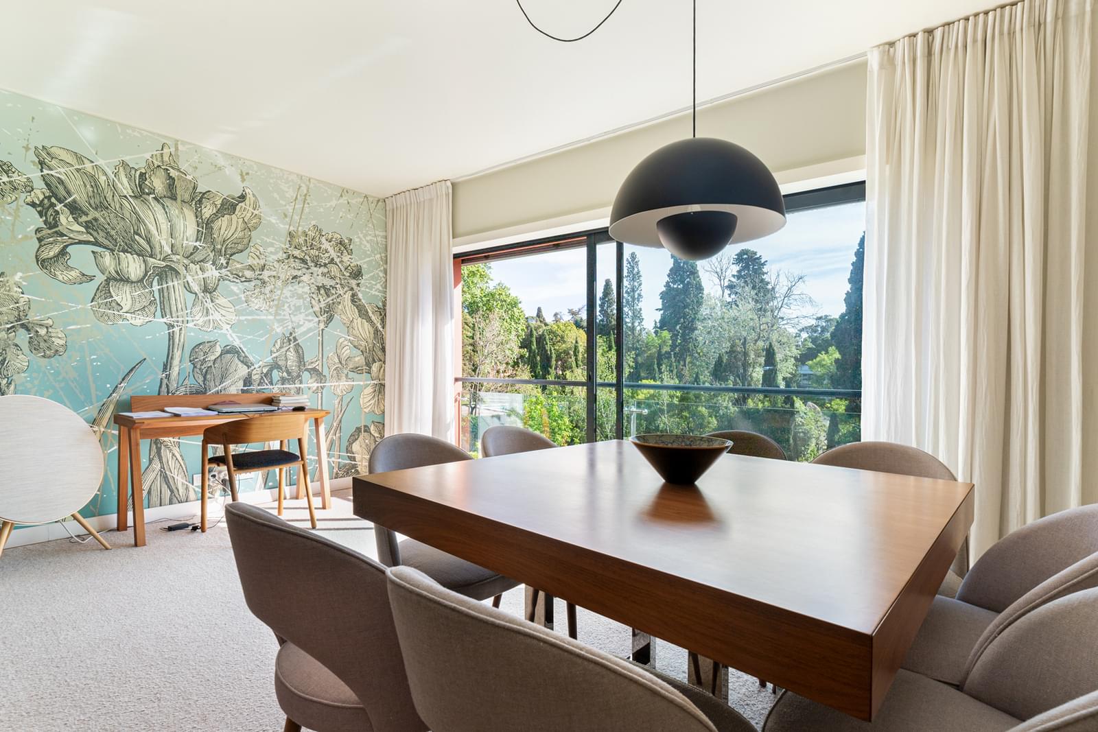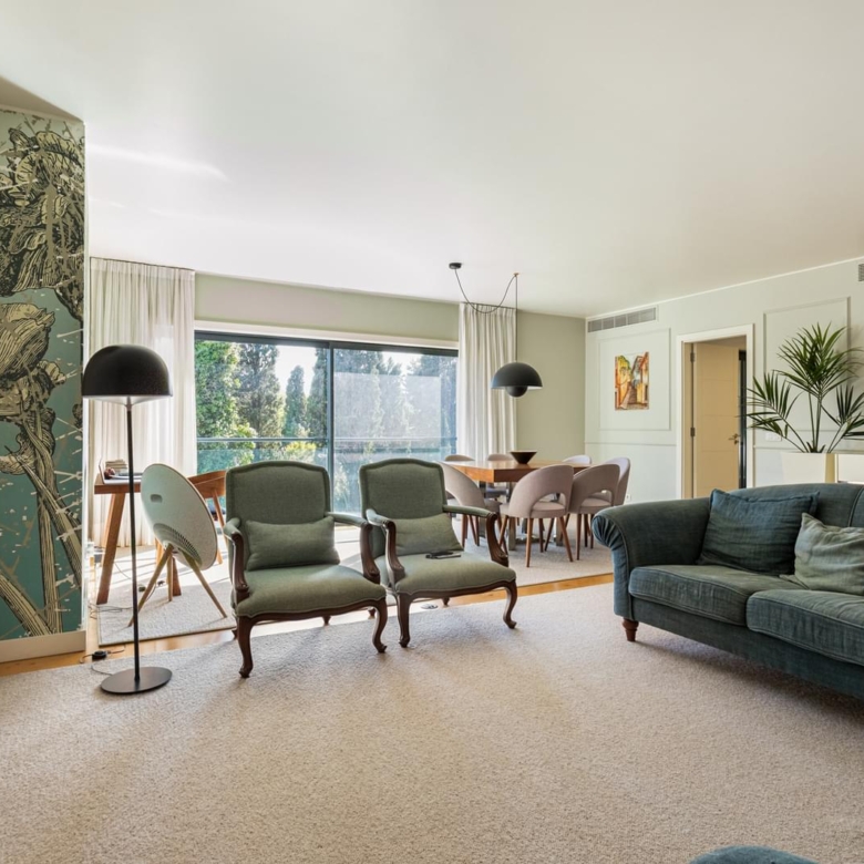 Excellent 3 bedroom apartment, with a 177 sqm private gross area, very bright, with a perfect separation between the private area and the social area, with a large dimensioned living room with 46 sqm and 3 bedrooms (one of them en suite with a closet). The kitchen is fully equipped and includes a laundry area. This apartment is integrated in an idyllic space, in Quinta de Sao Sebastiao, Paco do Lumiar. It is a luxury development, with a unique character, only a few minutes away from the city centre and airport, consisting of four buildings of low residential density. The condominium offers a set of amenities, such as a Health Club, swimming pools (outdoor and indoor heated), gym and a building of common use completely prepared and equipped for holding events. Inside this manor house there is an 18th century palace that stands out for its timeless nobility and beauty, which was the home of King D. Joao V, as shown by his coat of arms, embedded in the facade of the main building and the pavilion by the lake, to the imaginary of baroque tiles and stone benches in the garden. The majestic garden of the condominium, where you can enjoy a unique quality of life and privacy, extends over 14 thousand square meters, being full of statues, fountains, a swimming pool and small lakes, in an idyllic setting rethought in 1970 by the legendary Goncalo Ribeiro Telles, the leading figure of Portuguese landscape architecture, awarded with the Sir Geoffrey Jellicoe Prize, highest international distinction in the area. With direct access to the main roads of the city of Lisbon, served by a transportation network and surrounded by total security and privacy, it is still very close to services, local business, universities, hospitals, culture and green areas. Do not miss this excellent opportunity to enjoy a unique quality of life, serenity, security and privacy, integrated in a majestic green space, really close to the city centre. We are waiting for your contact to schedule a visit. Thank you. Property ID: PDF-PF30316 Price: €1,400,000 Property Size: 177.1 m2 Bedrooms: 3 Bathrooms: 3