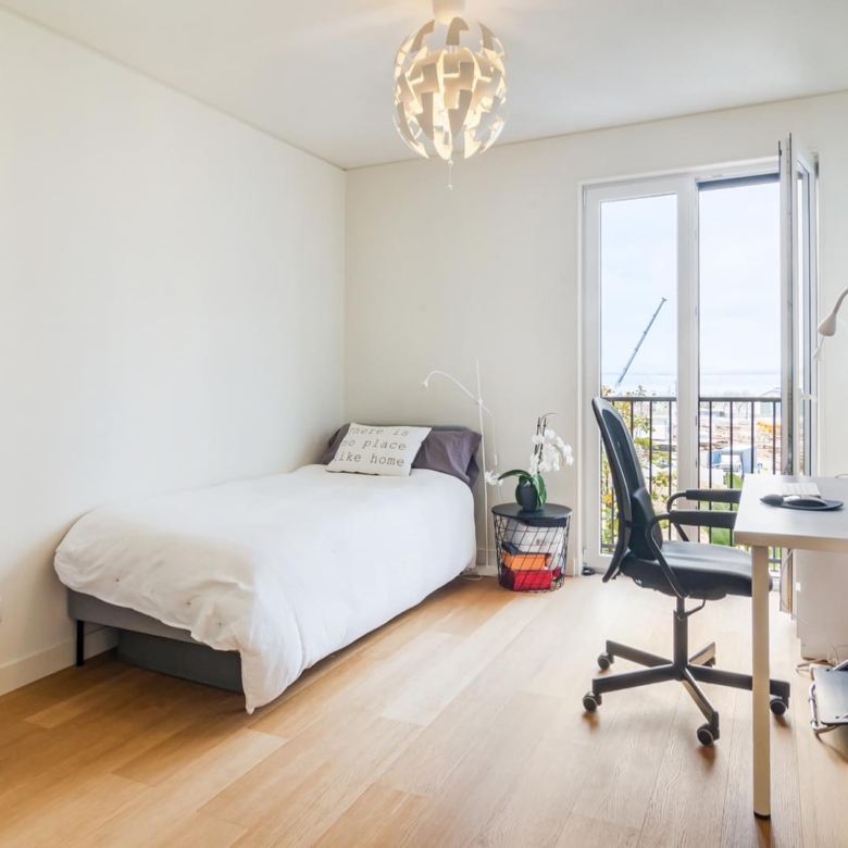 2 bedroom apartment with river view and swimming pool on the Rooftop. Excellent 2 bedroom apartment (2 suites) with a 115 sqm private gross area, located in Santos, with River view and swimming pool/ terrace in the building’s Rooftop. It includes 1 parking space. This property is distributed as follows: Living room – 32,46 sqm Hall – 11.72 sqm Suite 1 – 13,61 sqm Suite 2 – 15 sqm Kitchen – 9,54 sqm Laundry area- 3,35 sqm Social bathroom – 2,20 sqm The apartment is inserted in a new building, it is extremely bright and faces south. The living room and the bedrooms en suite offer river view. It has a separated laundry area. It stands out for the good areas and quality of finishes. On the rooftop of the building there is a communal space with terrace and swimming pool, with panoramic views of the river. With a very central location, proximity to transportation (subway, train and bus network) and services that value the entire area of Santos, making it one of the most attractive points of Lisbon whether to live or invest. Lisbon The Portuguese capital is where everything happens: from its historical neighbourhoods to the vibrant streets, Lisbon is a city that keeps surprising. You can take a stroll in iconic avenues, such as Avenida da Liberdade, be delighted with the Belem custard tarts without forgetting the various cultural offers and the countless museums of the city. This is an urban oasis perfect for Portuguese pavement lovers and also for the ones who rejoice modernity. Porta da Frente Christie’s is a real estate agency that has been operating in the market for more than two decades. Its focus lays on the highest quality houses and developments, not only in the selling market, but also in the renting market. The company was elected by the prestigious brand Christie’s International Real Estate to represent Portugal in the areas of Lisbon, Cascais, Oeiras and Alentejo. The main purpose of Porta da Frente Christie’s is to offer a top-notch service to our customers. ’ Property ID: PDF-PF33325 Price: €899,000 Property Size: 115.0 m2 Bedrooms: 2 Bathrooms: 3 Year Built: 2020 Property Type: Apartment Property Status: For Sale
