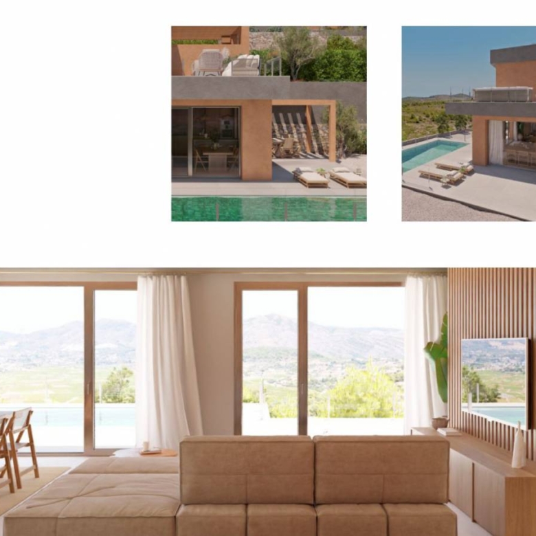 Luxury Villas in Lliber, Costa Blanca Modern and sustainable homes, equipped with all technological advancements and energy-saving solutions that care for the planet, our health, and well-being, offer you the opportunity to live in a healthier environment, in comfortable and open spaces, allowing you to work online, avoid travel, and have more time to enjoy all the leisure options and activities in Vall del Pop. Type A Homes: Access is through the upper floor where there are 2 bedrooms, 1 full bathroom, and a coworking area. On the ground floor, the master bedroom (with ensuite bathroom and dressing room) is located, as well as the living-dining room, open kitchen, covered terrace, and access to the private pool. Outdoor parking space. Type B Homes: Access is through the upper floor where the master bedroom (with ensuite bathroom and dressing room) and the other 2 bedrooms with a full bathroom are located. Going down the stairs, we find: living-dining room, open kitchen, covered terrace, and access to the private pool. Outdoor parking space. FEATURES: * Underfloor heating.* Mechanical ventilation system.* Installation of photovoltaic panels.* Charging point for electric car.* Home automation for light and blinds control.* Fully equipped kitchen.* Full bathrooms with furniture, shower cabin, and mirror.* Lighting throughout the house with direct and indirect light.* Built-in wardrobes.* Intercom.* Alarm.* Established garden.* Energy-efficient climate control through aerothermy.* Collection of rainwater for irrigation.* Ventilation system with heat recovery.* Electric car charger.* Green roof that maintains the temperature of the house.* Xerogarden with native plants adapted to the region’s climate. Property ID: VA-96385 Price: €930,000 Property Size: 162 m2 Land Area: 400 m2 Bedrooms: 3 Bathrooms: 3 Property Type: Villa Property Status: For Sale