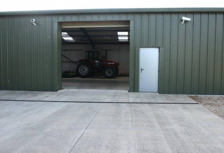 The large barn opposite is approximately 3 times the size of the workshop. This has a smooth power floated and insulated concrete floor and has 3 phase electricity installed as well and has 10 double skinned roof lights so its very bright during the daytime. While this building has agricultural use it has been built to commercial standards with heavy duty rsjs , electric insulated roller shutters, insulated concrete floor and 3 phase power.