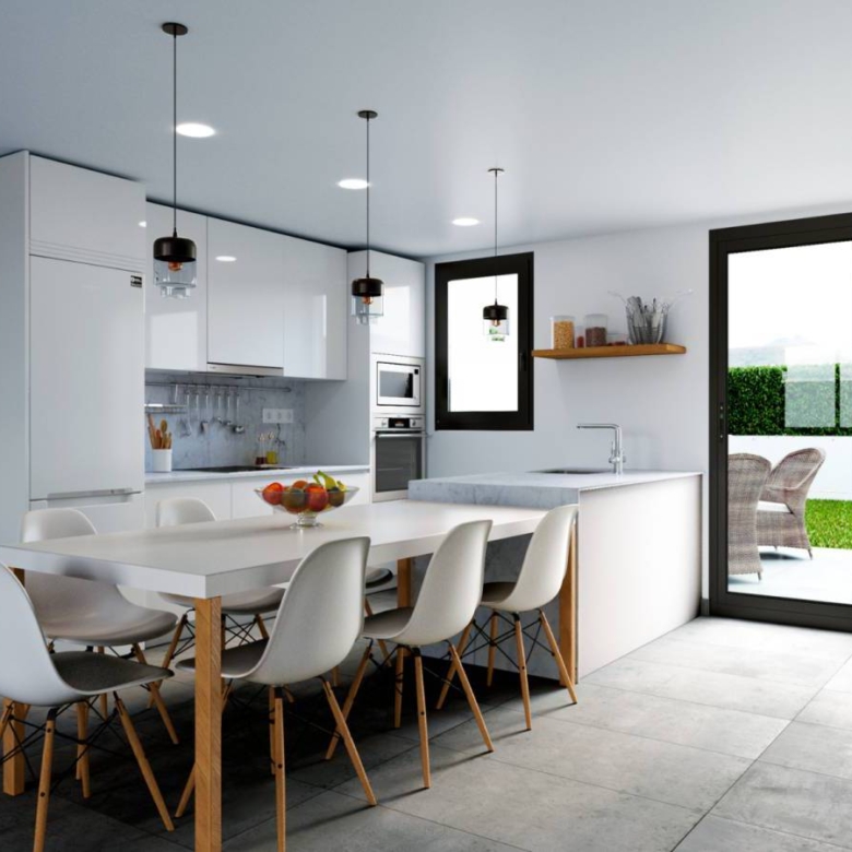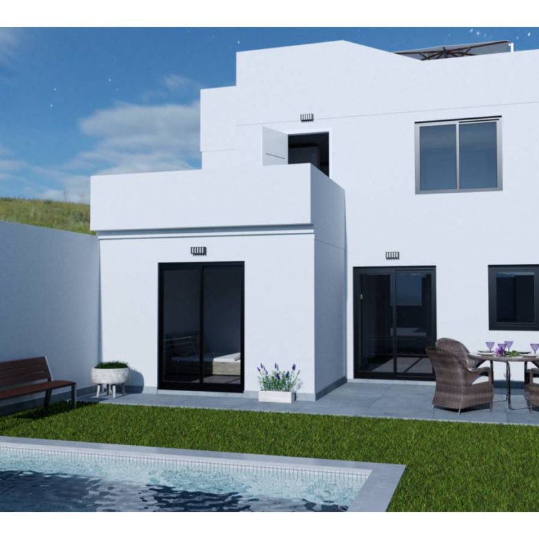 Villas and townhouses in Los Belones, Murcia A complex made up of 3 townhouses and 2 villas with 3/4 bedrooms and 3/2 bathrooms with the possibility of choosing between 3 larger bedrooms, private swimming pool and solarium with summer kitchen to enjoy all the hours of sunshine every day of the year. This development is located close to the beach, surrounded by all amenities, parks, sports facilities and several golf courses such as La Manga Golf Club. The properties will be equipped with: - Private swimming pool with shower.- Bathrooms equipped: bathroom furniture, washbasin, mirror, rain effect shower and shower screen panels included.- Fully fitted kitchen with wall and base units. Silestone worktop or similar and sink under worktop. Electrical appliances included: fridge, oven, built-in microwave, ceramic hob, dishwasher and extractor hood.- Sanitary hot water, by means of wall-mounted ACS heat pump (Aerothermics) of 150 litres.- Built-in wardrobes with drawers.- Pre-installation of ducted air conditioning.- Indirect lighting design throughout the house and outdoor areas. Decorative lighting points in dining table area and bedrooms.- Power socket and aerial in solarium, first floor, first floor, terrace and patio.- Summer kitchen in solarium with fridge socket, folding doors and granite worktop.- Pre-installation of Wall Box socket for charging electric vehicles. Property ID: GH-307775 Price: €285,000 Property Size: 109 m2 Land Area: 135 m2 Bedrooms: 3 Bathrooms: 3 Property Type: Villa Property Status: For Sale