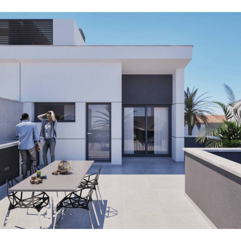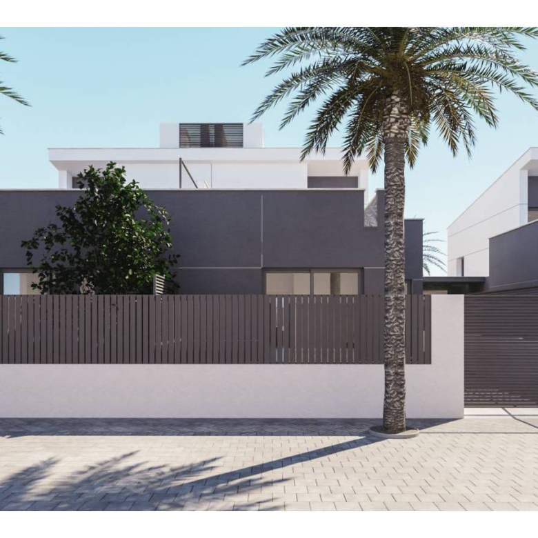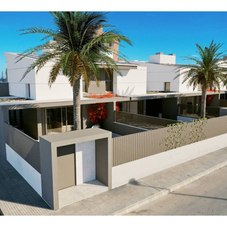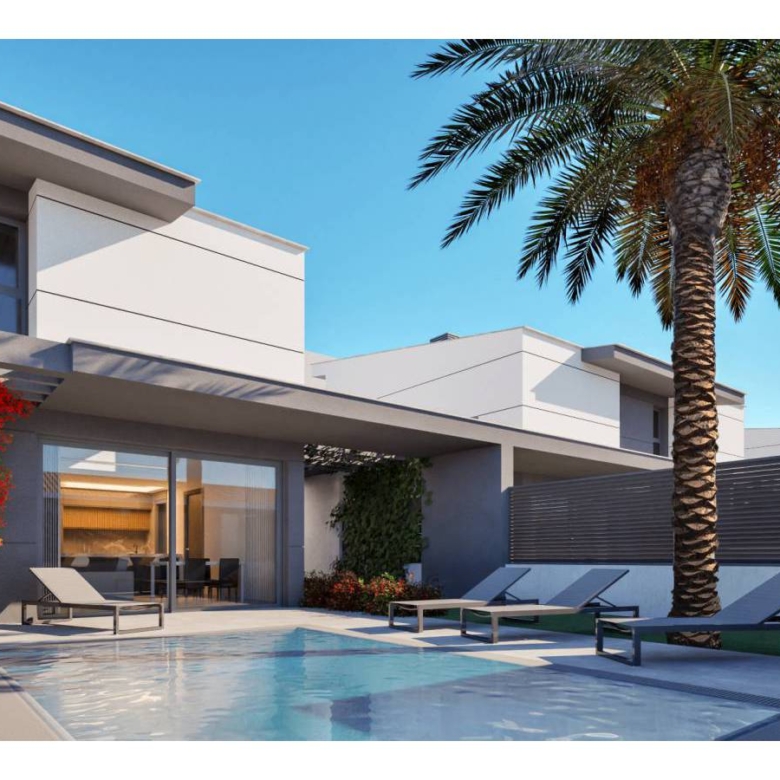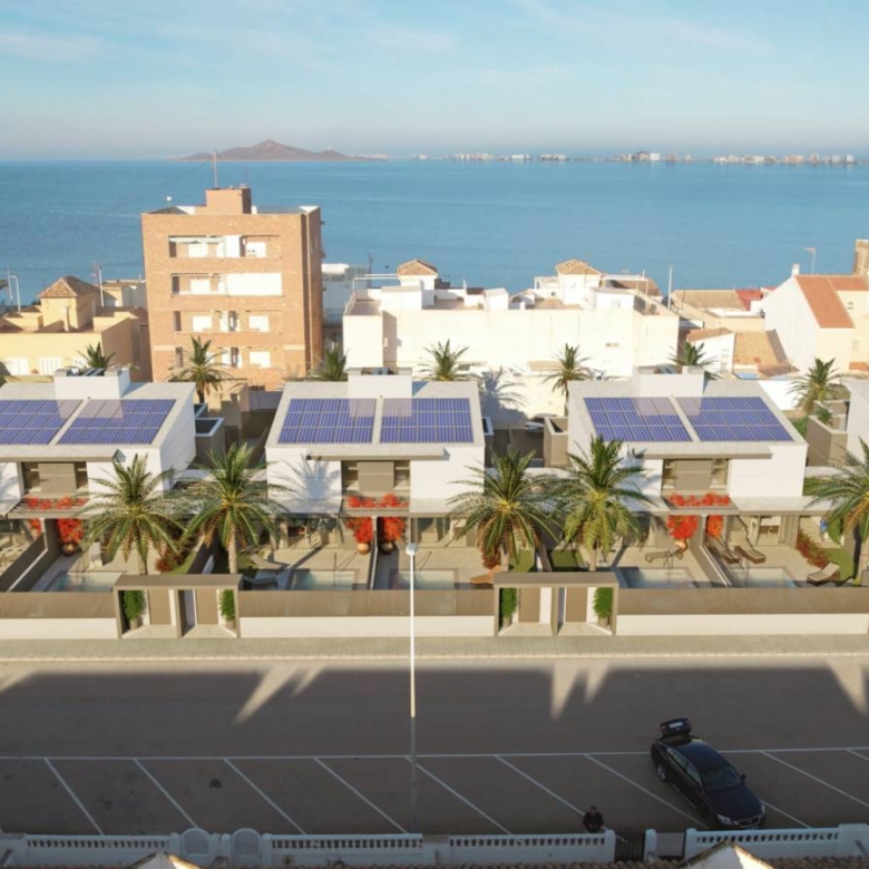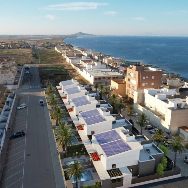 Villas walking distance to the beach at Los Nietos, Murcia Luxury complex of 10 semidetached villas with private pool, garden area, terrace and a large solarium with Summer kitchen that allows you to enjoy all hours of sunshine, every day of the year. Each villa has 3 bedrooms and 3 fitted bathrooms. Designed on two levels with a contemporary style and open planned concept, comprising a fully-fitted kitchen and lounge-dining room. The development is located in Los Nietos (Murcia), second line beachsurrounded by services, parks, sports facilities, several Golf Courses. The property will meet the highest standards and will be equipped with: Private swimming pool with solar shower.Kitchen completely furnished and equipped with oven, microwave, fridge, integrated dishwasher, hob and extractor fan. Bosch brand.Peninsula area in the kitchen.Lighting: LED inside the property (dining room, kitchen, corridors and bathrooms), and well as in outdoor areas.Build-in lined wardrobes with drawers.Fully fitted bathrooms with build-in wash basin, vanity unit, mirror and light, shower with screen panel.Pre-installation for air conditioning by ducts.Solarium with Summer kitchen and preinstallation for washing machine. Power points in solarium, and terrace. TV point in garden.Artificial grass in garden.Installation of photovoltaic solar panels for electricity production. Property ID: GH-96315 Price: €359,900 Property Size: 128 m2 Land Area: 228 m2 Bedrooms: 3 Bathrooms: 3 Property Type: Villa Property Status: For Sale
