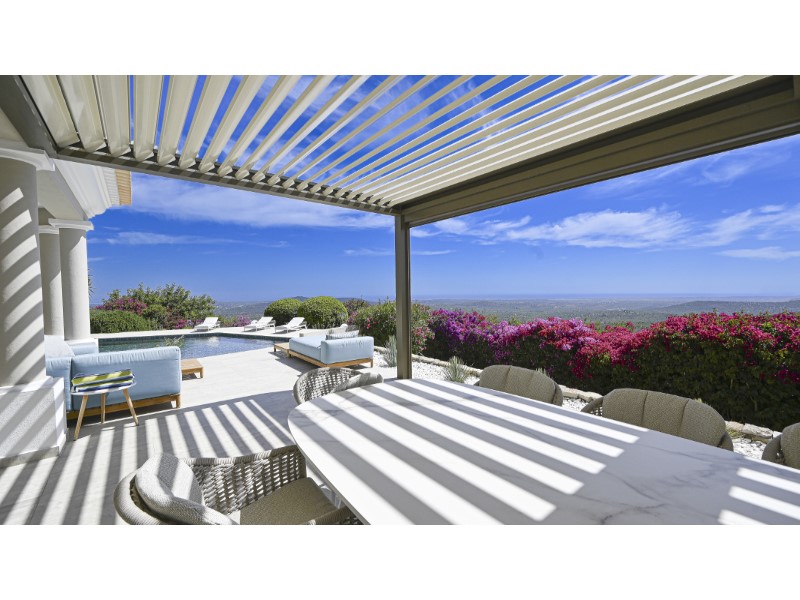 Located in the countryside just a few minutes from Loule this property offers amazing panoramic views over the countryside towards the Algarve coastline. Beautifully decorated and with excellent sun exposure all day long, this 4-bedroom villa has been completely renovated to the highest standards. The ground floor of this property is composed of an open space living/dining room with large sliding doors to the terraces, fully fitted and equipped kitchen with isle (BORA hob with extractor) , a bedroom currently used as an office, guest toilet and storage room, and covered BBQ terrace perfect for outdoor meals, and a large garage that can be converted to a independent studio, gym or kids playroom. The first floor of the property is composed of the master bedroom with a walk-in closet and a large bathroom, and another 2 bedrooms both with own bathrooms. Both floors of the property are surrounded by terraces that offer amazing views over the countryside to the sea, in addition, the sea views are visible from almost every corner of the house. The property also features a manicured garden, a large pool, a pool shower, a carport, and a basement. Features Pool Pool Outside Barbecue, Garden, Balcony, Terrace Parking Garage, Off road parking Interior features Security: Alarm system Other: Fitted wardrobes Energy & utilities Heating: Air conditioning Energy consumption rating: C Emissions rating: C Show more Property ID: golden2227 Price: €2,950,000 Property Size: 369 m2 Bedrooms: 4 Bathrooms: 5 Property Type: Villa Property Status: For Sale
