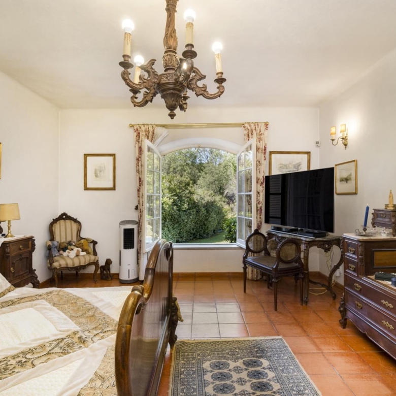 Solar dos Jasmins’ is a dazzling house that presents a charming architecture and has a number of notable features, conceived and designed by the English historian – Nicholas Turner. Located in a quiet and picturesque atmosphere, this residence is truly impressive. The main house comprises four bedrooms, one of them en suite, a beautiful entry hall, in English style, a very well maintained and fully equipped kitchen, a dining room with a fireplace and traditional tiles ‘Viuva de Lamego’, and also a large dimensioned living room also with fireplace, bathrooms and a storage area. Solar dos Jasmins has an ample outdoor space, fully walled and fenced, having a well, a borehole and a waterproof area. The garden is lush and full of fruit trees (quince, apple, lemon and orange trees), also has rose bushes among other plants, providing shade and a pleasant atmosphere on warmer days. Residents can enjoy moments of serenity and leisure while exploring the garden or relaxing on the front terrace, or even in the back area of the house, where there are also two beautiful oaks. One of the main attractions of this house is its swimming pool, (prepared to be heated), surrounded by a lovely garden with natural grass, with an automatic watering system. For convenience, the property provides a support house (bathroom, shower and a storage area/changing room), at the rear of the house, to facilitate the access, without being necessary for the guests to use the interior of the house. The property has an automatic gate, with access to parking space for several vehicles, inside, providing security and practicality to its residents and guests. In addition, next to the rear exterior of the house, there is a small annex, which is a wine cellar, ideal for wine lovers who wish to store and enjoy their personal collections. Standing out even more, the property has a Garden House that is all glazed, which currently works as a studio. This bright and inspiring space offers a perfect place to work on creative projects or to dedicate to hobbies and artistic activities. Still on the lower floor, this annex also has a living room and barbecue area, with three specific ovens: to bake wood-fired bread, fish or meat. Finally, the garden of Solar dos Jasmins presents an oak lane, in the North limit, which add a touch of elegance and serenity to the environment. These majestic trees provide shade and a naturally romantic and pleasant environment to enjoy the exterior. The property provides a borehole, which is an affordable and convenient water source. This eliminates the need to rely solely on public water supply or external sources, which can reduce water expenses. In addition, the property has seven solar panels installed. These solar panels are devices that convert the sun’s energy into electricity, which significantly reduces electrical energy expenses. The electricity generated by the solar panels can be used to power the property’s electrical appliances and systems such as lighting, appliances and also heating and air conditioning systems. By using solar energy, the property becomes self-sufficient and less dependent on the conventional power grid. Therefore, the combination of a borehole and solar panels in the property can facilitate expenses, reducing costs related to water supply and electricity. This results in increased energy efficiency, sustainability and potential financial savings for the owners. In short, ‘Solar dos Jasmins’ is a magnificent house, designed to offer comfort, beauty and functionality. With its spacious rooms, charming outdoor spaces, relaxing swimming pool, covered parking, versatile annexes and a garden with total privacy. Located in the Sao Giao Valley, near Montachique, a parish located in the municipality of Loures, in the metropolitan region of Lisbon, Portugal. It is an area known for its natural and charming landscapes, with verdant hills and picturesque valleys. Its excellent location allows you to enjoy the proximity to Lisbon (15 minutes away), to Cascais or Sintra (20 minutes away) and also the beaches of Ericeira, 15 minutes away, via the Oeste motorway – A8. This property is inserted in a quiet area and much appreciated by nature lovers. Property ID: PDF-PF30882 Price: €1,999,000 Property Size: 212.3 m2 Land Area: 4470.0 m2 Bedrooms: 4 Bathrooms: 5 Property Type: House Property Status: For Sale