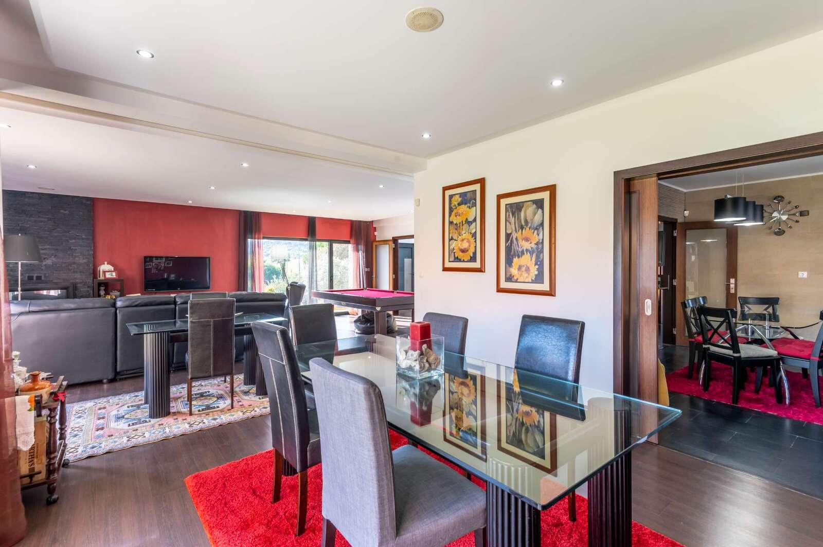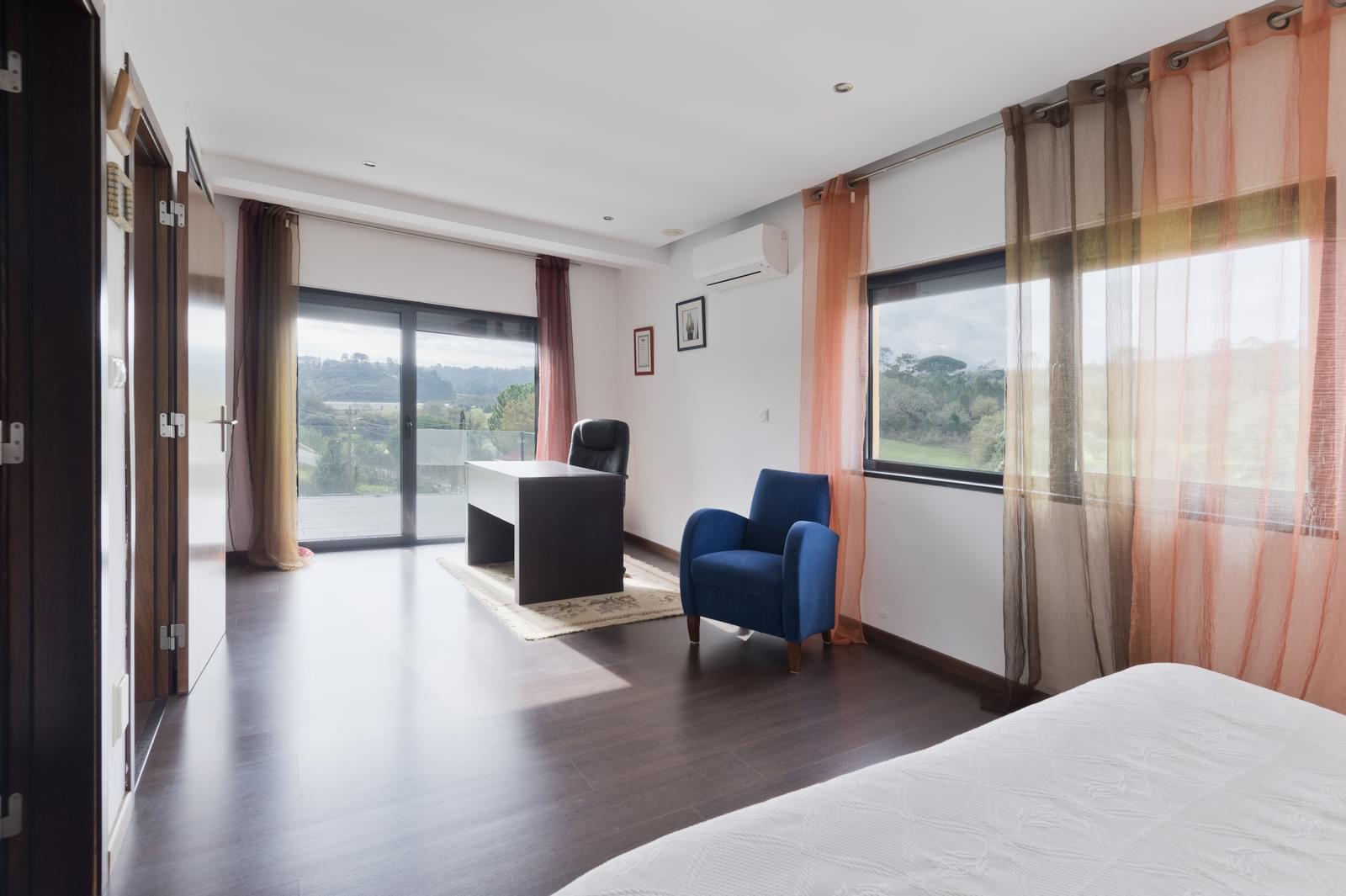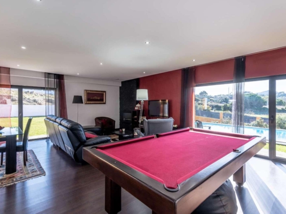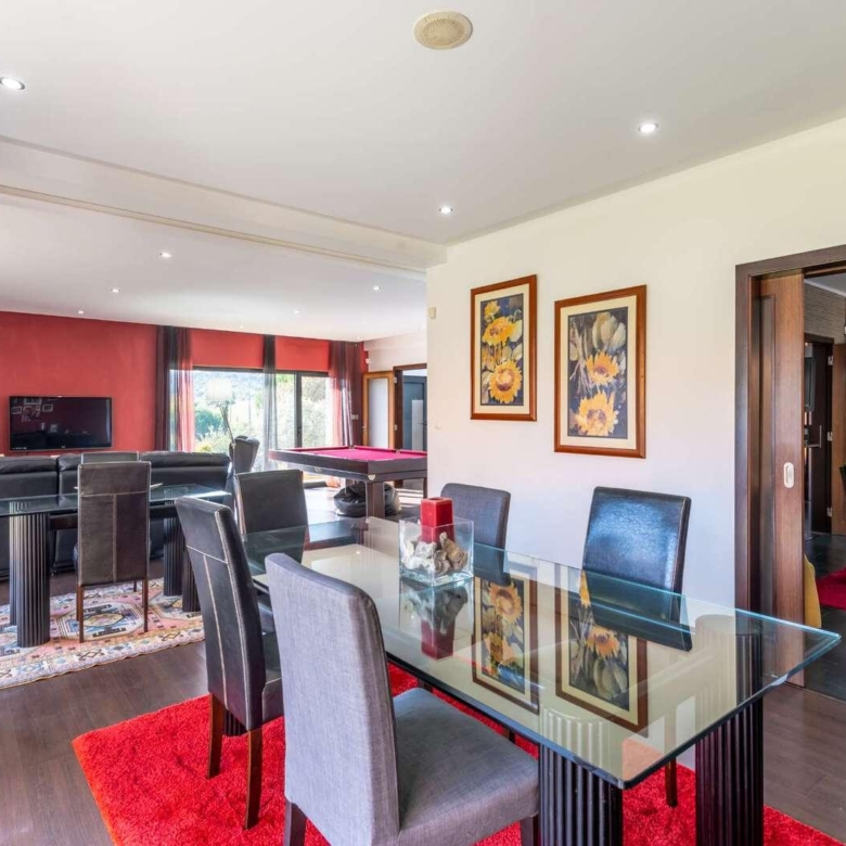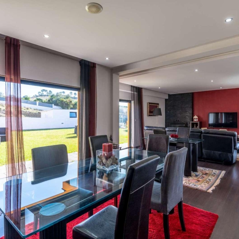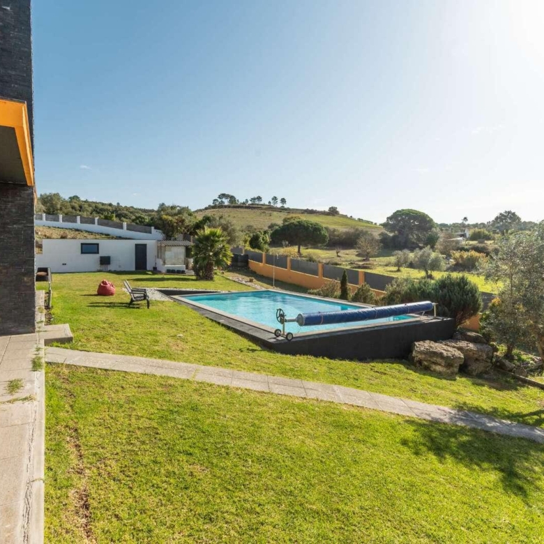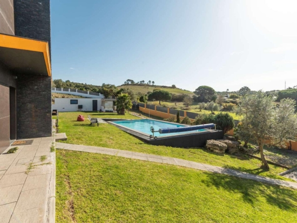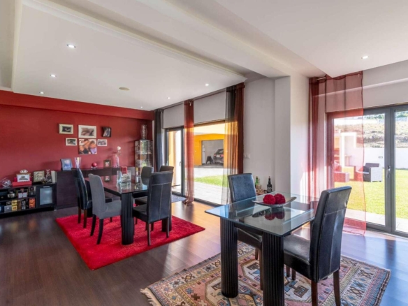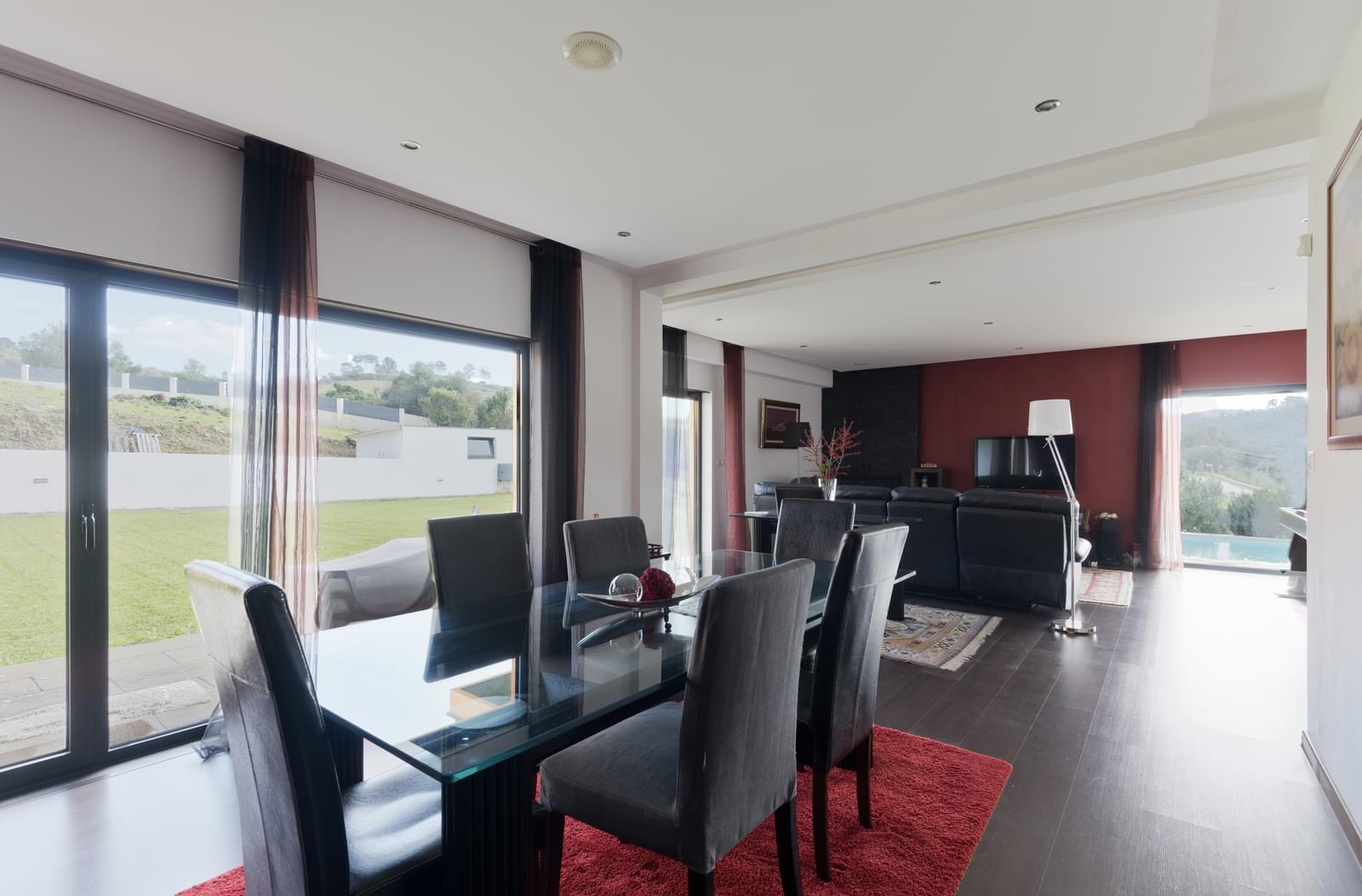 5 bedroom villa, with contemporary lines, with swimming pool, garden and excellent quality finishes, located in Mafra, Povoa da Galega, 20 minutes away from Lisbon. With 315 sqm private gross area, 417.41 sqm gross construction area and implanted in a 2949 sqm plot, this villa, with an excellent solar exposure, facing south, is composed by two 2 floors: Ground Floor: - Entry hall, with an independent cloakroom and a storage area - a 51 sqm living and dining room with a fireplace and large windows and direct access to the garden - an equipped kitchen, in island, with the countertops coated with travertine natural stone with a resin finish and the walls coated with conglomerate natural stone - a laundry area with a door to access the exterior - Pantry – Suite with bathtub and direct access to the exterior - Office/bedroom - Social bathroom. First Floor: - Two bedrooms with a walk-in closet and balcony (one of them with a terrace) - Bathroom with a hydromassage bath - Suite with walk-in closet and two balconies, a bathroom with a hydromassage shower cabin, Turkish bath and a hydromassage corner bathtub. Outside there is a swimming pool with a salt treatment, an ample garden with an automatic watering system, barbecue, a garage with parking space for 2 cars and equipped with water, gas and a central vacuum unit, an additional covered parking space for 4 cars outside, a bathroom to support the exterior area/ swimming pool, a kennel and a 31 sqm annex that works as a storage area. The villa has solar panels with a 300 litres hot water tank, Daikin air conditioning, a pre-installation of central heating, electrical blinds (with Somfy domotics), alarm, video intercom, a central vacuum unit, ambient sound. The lot has two independent accesses, with excellent access to the National road. Located in a quiet and peaceful area, with all sorts of traditional local business and services, 2 minutes away from the A8 motorway (Lousa/Montachique), 20 minutes away from the airport, 20 minutes away from Lisbon and 15 minutes away from Ericeira. Porta da Frente Christie’s is a real estate agency that has been operating in the market for more than two decades. Its focus lays on the highest quality houses and developments, not only in the selling market, but also in the renting market. The company was elected by the prestigious brand Christie’s – one of the most reputable auctioneers, Art institutions and Real Estate of the world – to be represented in Portugal, in the areas of Lisbon, Cascais, Oeiras, Sintra and Alentejo. The main purpose of Porta da Frente Christie’s is to offer a top-notch service to our customers. Property ID: PDF-PF32246 Price: €980,000 Property Size: 315.92 m2 Land Area: 2949.0 m2 Bedrooms: 5 Bathrooms: 5 Year Built: 2009 Property Type: House Property Status: For Sale