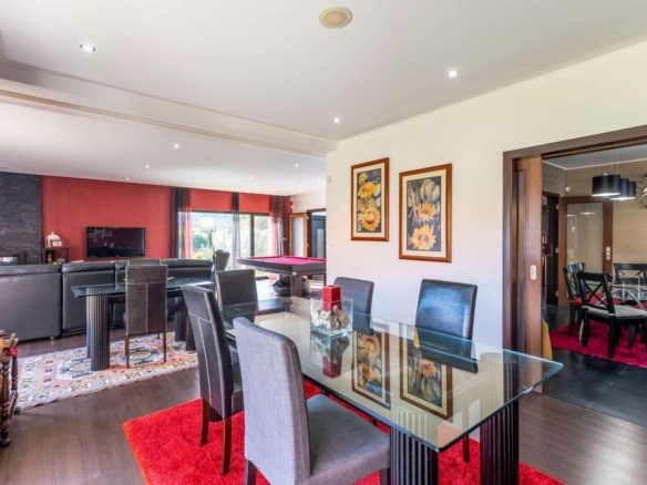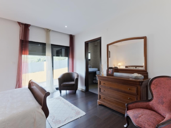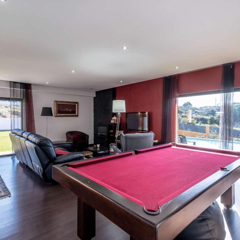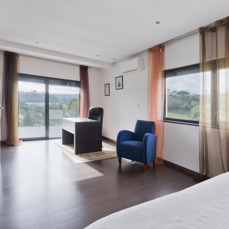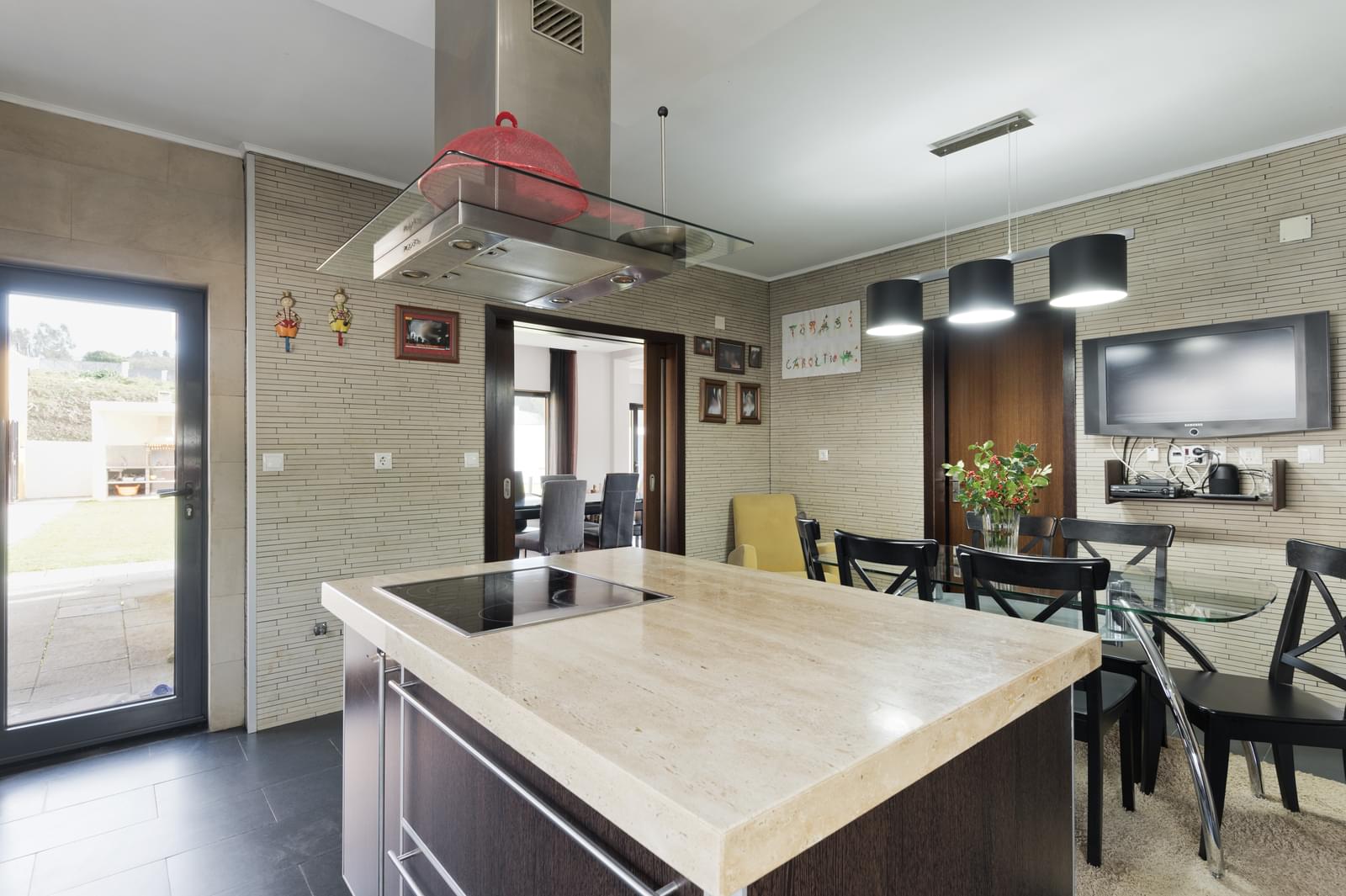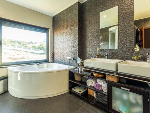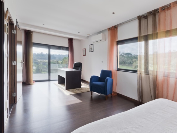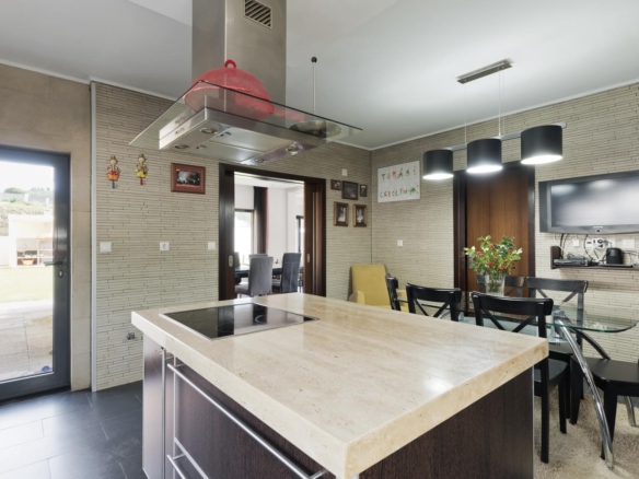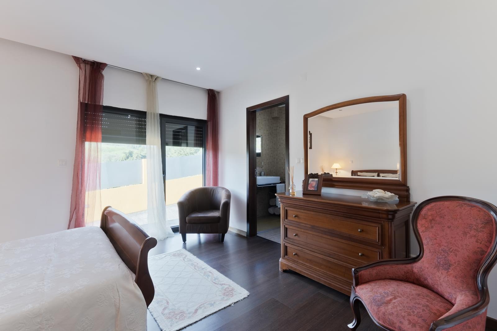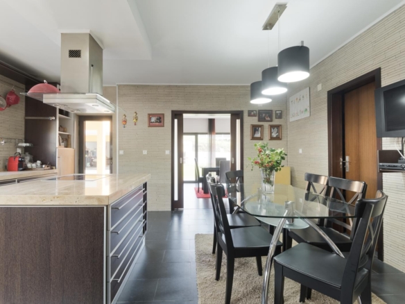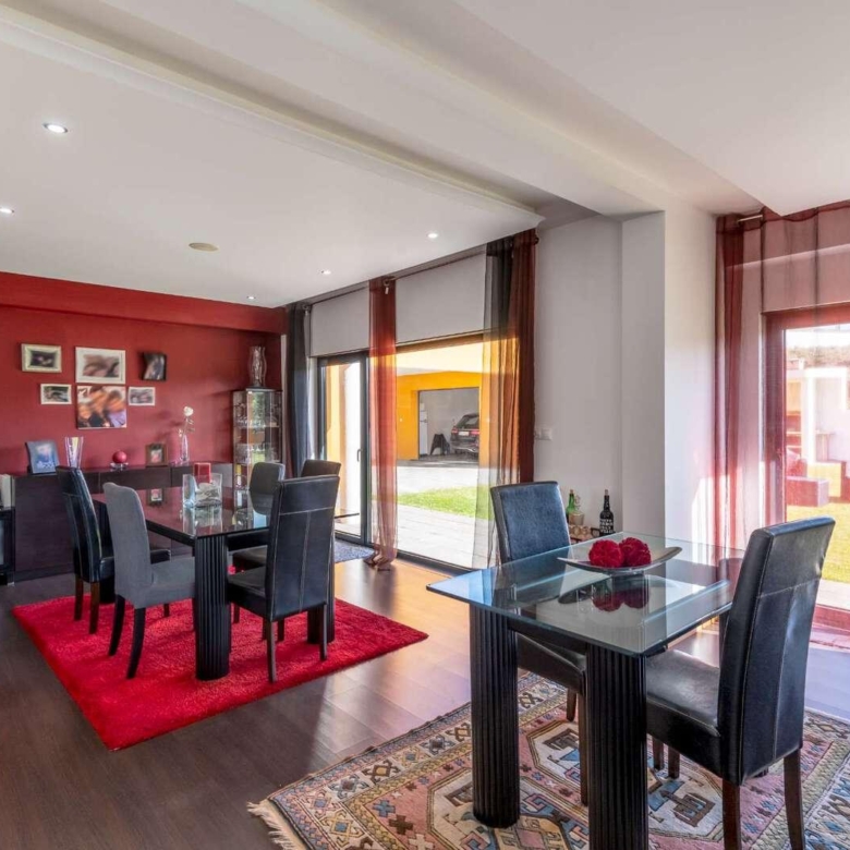 5 bedroom villa, with contemporary lines, with swimming pool, garden and excellent quality finishes, located in Mafra, Povoa da Galega, 20 minutes away from Lisbon. With 315 sqm private gross area, 417.41 sqm gross construction area and implanted in a 2949 sqm plot, this villa, with an excellent solar exposure, facing south, is composed by two 2 floors: Ground Floor: - Entry hall, with an independent cloakroom and a storage area - a 51 sqm living and dining room with a fireplace and large windows and direct access to the garden - an equipped kitchen, in island, with the countertops coated with travertine natural stone with a resin finish and the walls coated with conglomerate natural stone - a laundry area with a door to access the exterior - Pantry – Suite with bathtub and direct access to the exterior - Office/bedroom - Social bathroom. First Floor: - Two bedrooms with a walk-in closet and balcony (one of them with a terrace) - Bathroom with a hydromassage bath - Suite with walk-in closet and two balconies, a bathroom with a hydromassage shower cabin, Turkish bath and a hydromassage corner bathtub. Outside there is a swimming pool with a salt treatment, an ample garden with an automatic watering system, barbecue, a garage with parking space for 2 cars and equipped with water, gas and a central vacuum unit, an additional covered parking space for 4 cars outside, a bathroom to support the exterior area/ swimming pool, a kennel and a 31 sqm annex that works as a storage area. The villa has solar panels with a 300 litres hot water tank, Daikin air conditioning, a pre-installation of central heating, electrical blinds (with Somfy domotics), alarm, video intercom, a central vacuum unit, ambient sound. The lot has two independent accesses, with excellent access to the National road. Located in a quiet and peaceful area, with all sorts of traditional local business and services, 2 minutes away from the A8 motorway (Lousa/Montachique), 20 minutes away from the airport, 20 minutes away from Lisbon and 15 minutes away from Ericeira. Porta da Frente Christie’s is a real estate agency that has been operating in the market for more than two decades. Its focus lays on the highest quality houses and developments, not only in the selling market, but also in the renting market. The company was elected by the prestigious brand Christie’s – one of the most reputable auctioneers, Art institutions and Real Estate of the world – to be represented in Portugal, in the areas of Lisbon, Cascais, Oeiras, Sintra and Alentejo. The main purpose of Porta da Frente Christie’s is to offer a top-notch service to our customers. Property ID: PDF-PF32246 Price: €980,000 Property Size: 315.92 m2 Land Area: 2949.0 m2 Bedrooms: 5 Bathrooms: 5 Year Built: 2009 Property Type: House Property Status: For Sale