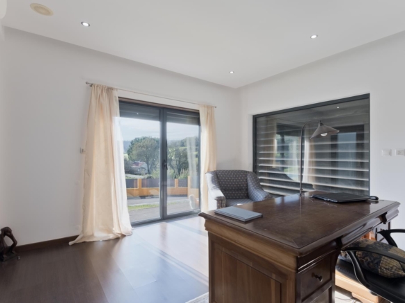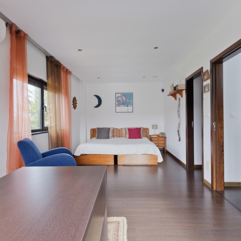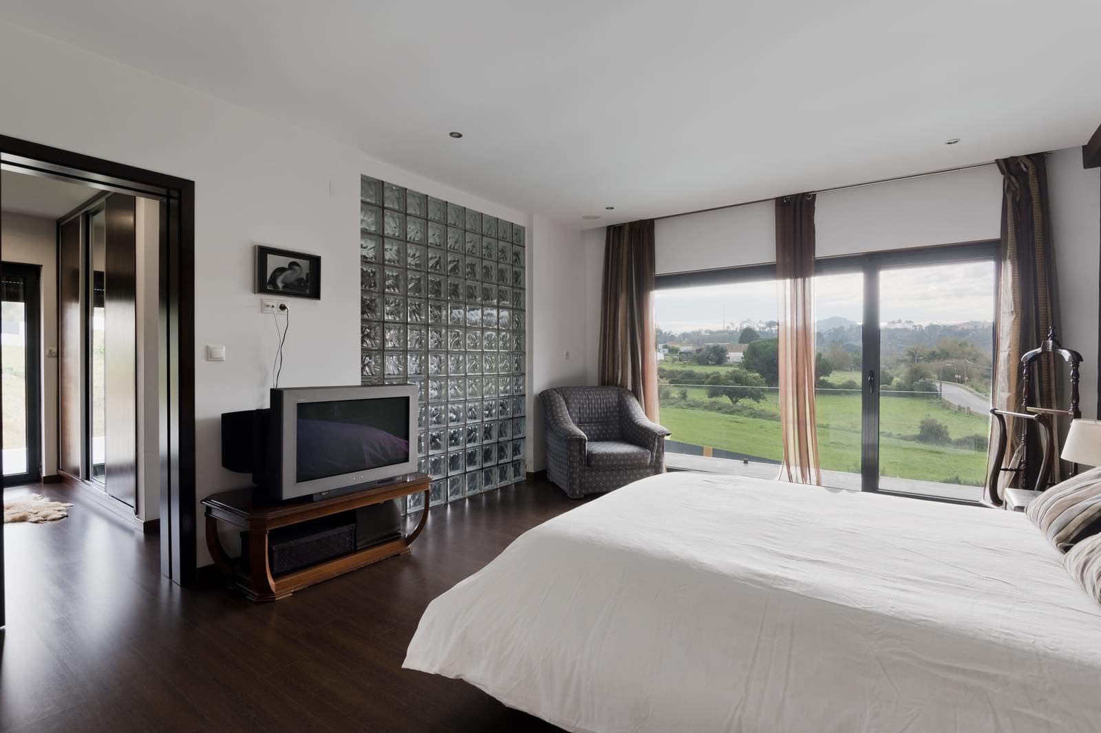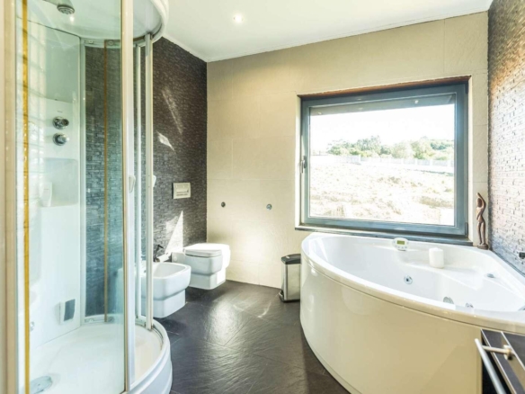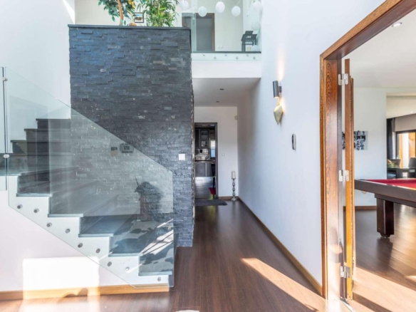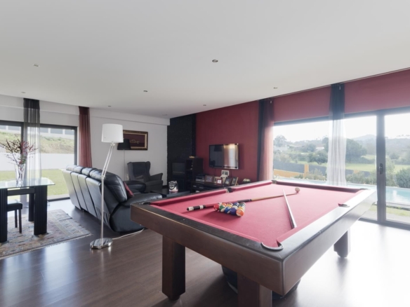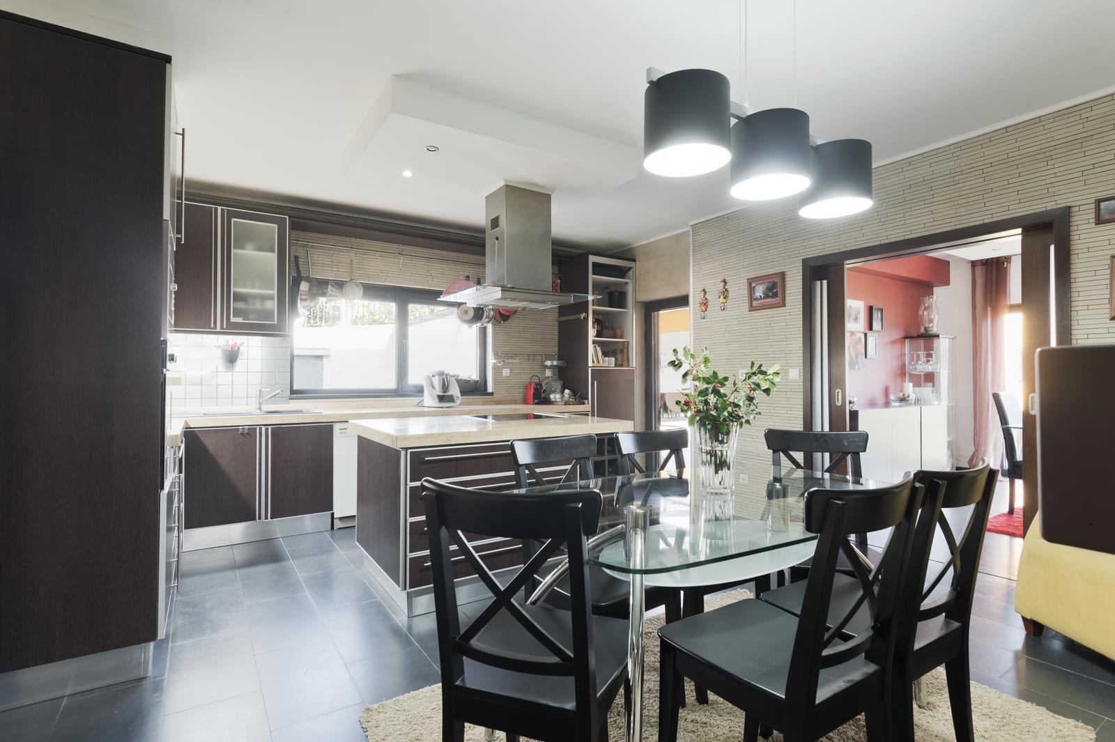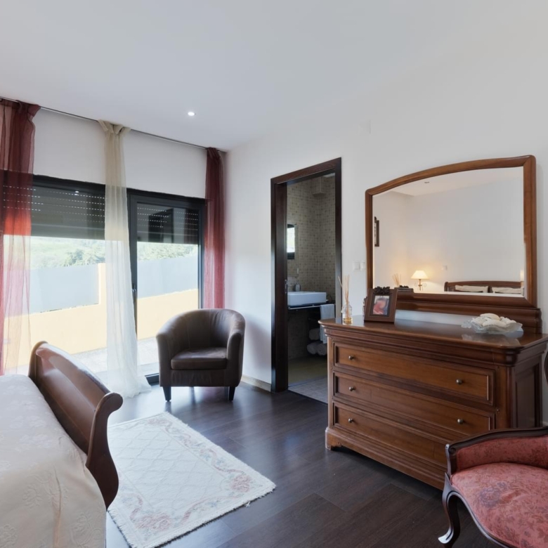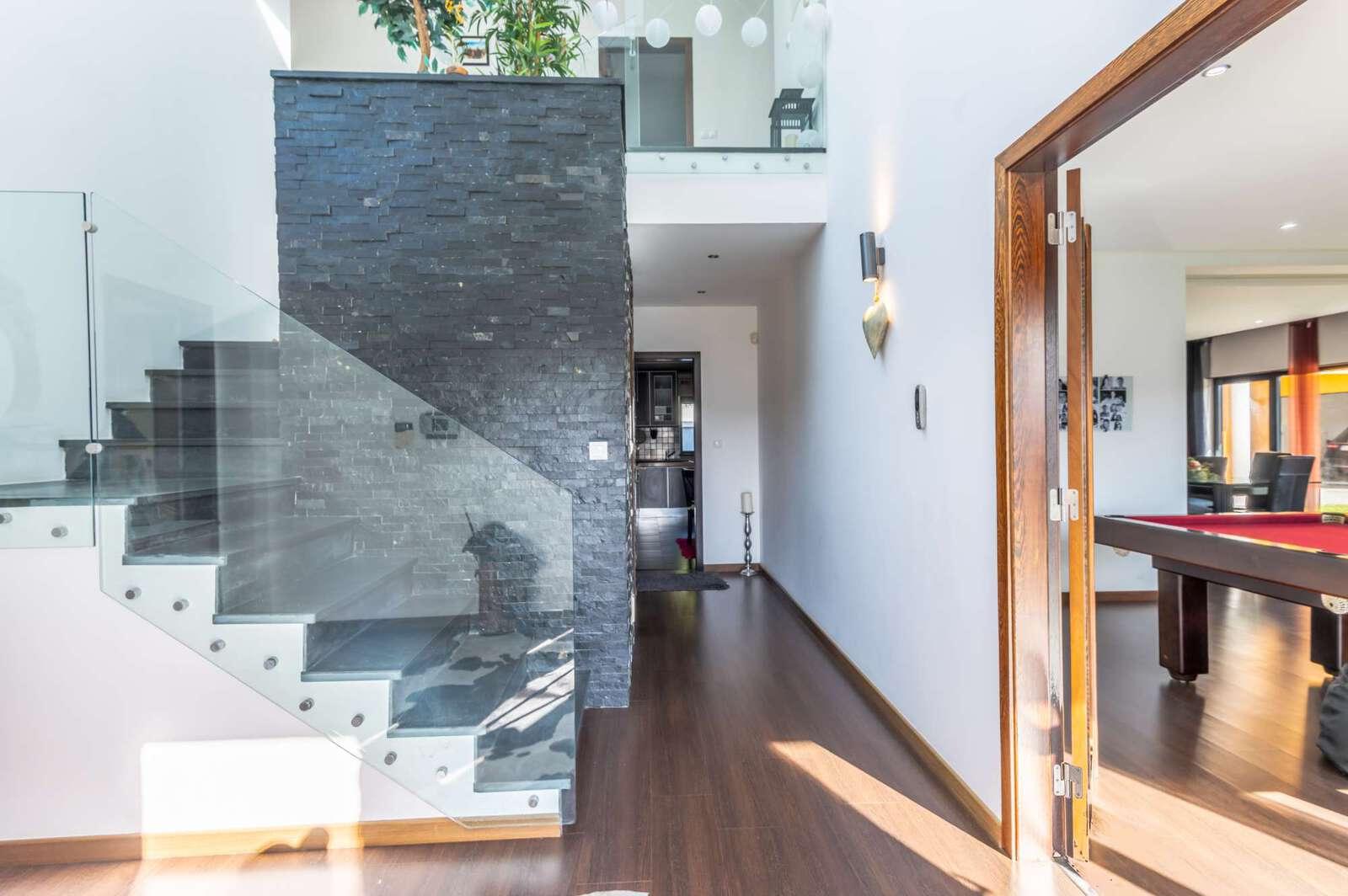 5 bedroom villa, with contemporary lines, with swimming pool, garden and excellent quality finishes, located in Mafra, Povoa da Galega, 20 minutes away from Lisbon. With 315 sqm private gross area, 417.41 sqm gross construction area and implanted in a 2949 sqm plot, this villa, with an excellent solar exposure, facing south, is composed by two 2 floors: Ground Floor: - Entry hall, with an independent cloakroom and a storage area - a 51 sqm living and dining room with a fireplace and large windows and direct access to the garden - an equipped kitchen, in island, with the countertops coated with travertine natural stone with a resin finish and the walls coated with conglomerate natural stone - a laundry area with a door to access the exterior - Pantry – Suite with bathtub and direct access to the exterior - Office/bedroom - Social bathroom. First Floor: - Two bedrooms with a walk-in closet and balcony (one of them with a terrace) - Bathroom with a hydromassage bath - Suite with walk-in closet and two balconies, a bathroom with a hydromassage shower cabin, Turkish bath and a hydromassage corner bathtub. Outside there is a swimming pool with a salt treatment, an ample garden with an automatic watering system, barbecue, a garage with parking space for 2 cars and equipped with water, gas and a central vacuum unit, an additional covered parking space for 4 cars outside, a bathroom to support the exterior area/ swimming pool, a kennel and a 31 sqm annex that works as a storage area. The villa has solar panels with a 300 litres hot water tank, Daikin air conditioning, a pre-installation of central heating, electrical blinds (with Somfy domotics), alarm, video intercom, a central vacuum unit, ambient sound. The lot has two independent accesses, with excellent access to the National road. Located in a quiet and peaceful area, with all sorts of traditional local business and services, 2 minutes away from the A8 motorway (Lousa/Montachique), 20 minutes away from the airport, 20 minutes away from Lisbon and 15 minutes away from Ericeira. Porta da Frente Christie’s is a real estate agency that has been operating in the market for more than two decades. Its focus lays on the highest quality houses and developments, not only in the selling market, but also in the renting market. The company was elected by the prestigious brand Christie’s – one of the most reputable auctioneers, Art institutions and Real Estate of the world – to be represented in Portugal, in the areas of Lisbon, Cascais, Oeiras, Sintra and Alentejo. The main purpose of Porta da Frente Christie’s is to offer a top-notch service to our customers. Property ID: PDF-PF32246 Price: €980,000 Property Size: 315.92 m2 Land Area: 2949.0 m2 Bedrooms: 5 Bathrooms: 5 Year Built: 2009 Property Type: House Property Status: For Sale