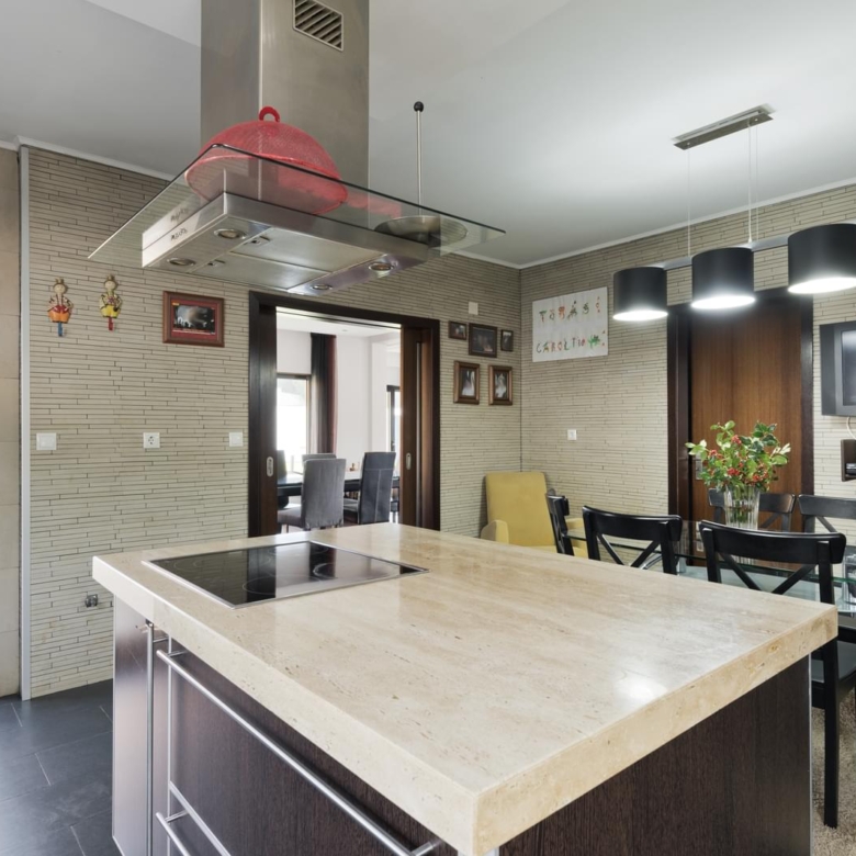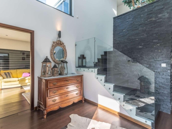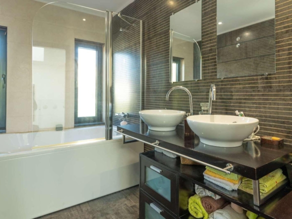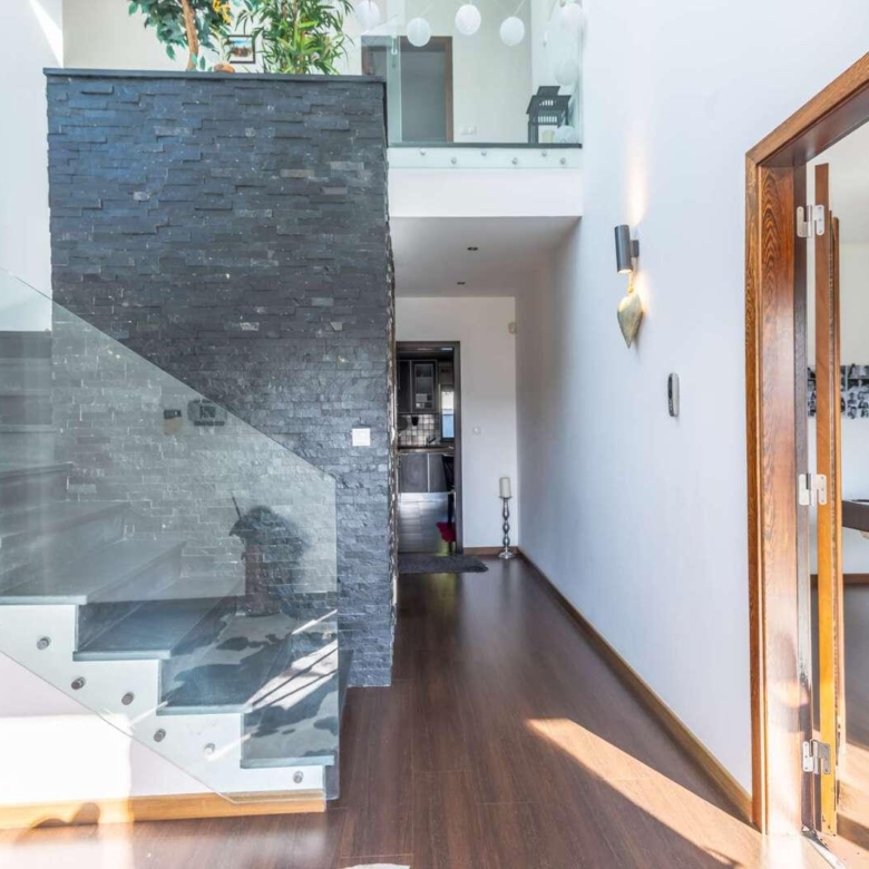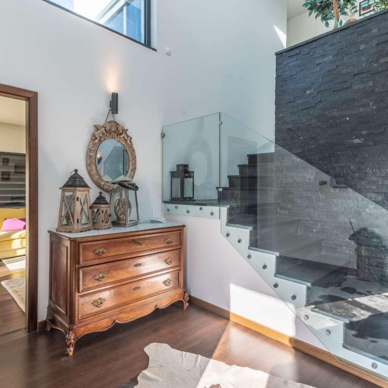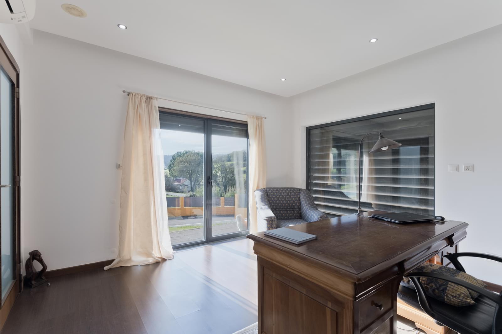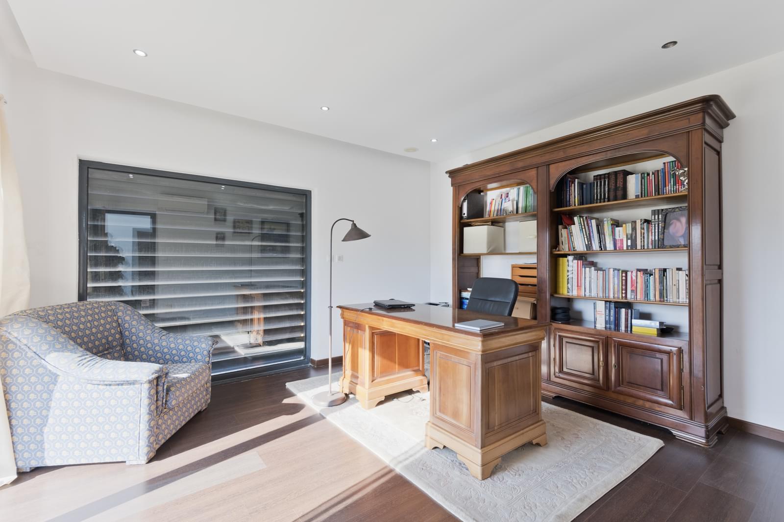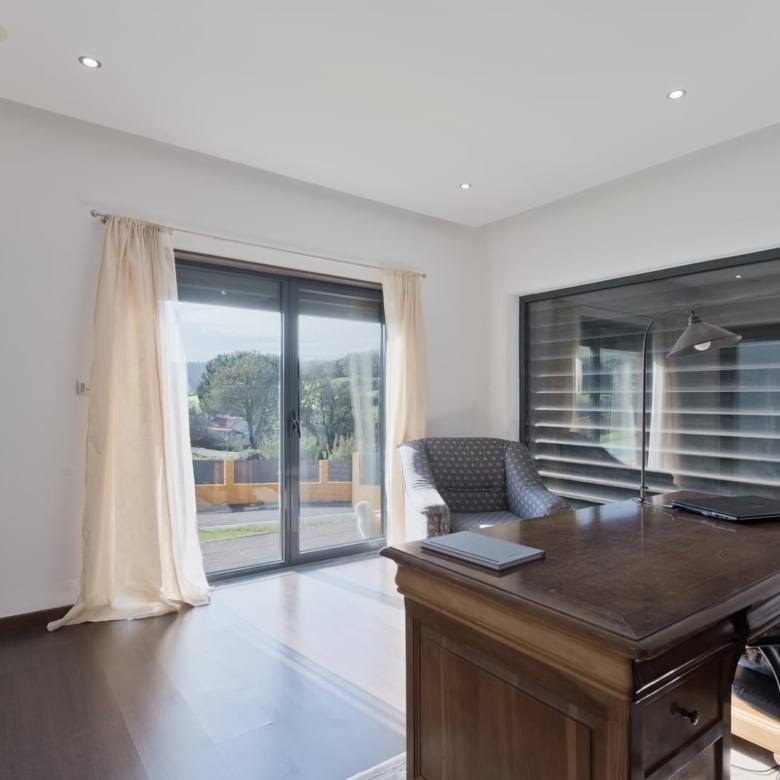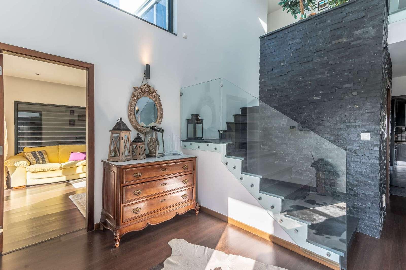 5 bedroom villa, with contemporary lines, with swimming pool, garden and excellent quality finishes, located in Mafra, Povoa da Galega, 20 minutes away from Lisbon. With 315 sqm private gross area, 417.41 sqm gross construction area and implanted in a 2949 sqm plot, this villa, with an excellent solar exposure, facing south, is composed by two 2 floors: Ground Floor: - Entry hall, with an independent cloakroom and a storage area - a 51 sqm living and dining room with a fireplace and large windows and direct access to the garden - an equipped kitchen, in island, with the countertops coated with travertine natural stone with a resin finish and the walls coated with conglomerate natural stone - a laundry area with a door to access the exterior - Pantry – Suite with bathtub and direct access to the exterior - Office/bedroom - Social bathroom. First Floor: - Two bedrooms with a walk-in closet and balcony (one of them with a terrace) - Bathroom with a hydromassage bath - Suite with walk-in closet and two balconies, a bathroom with a hydromassage shower cabin, Turkish bath and a hydromassage corner bathtub. Outside there is a swimming pool with a salt treatment, an ample garden with an automatic watering system, barbecue, a garage with parking space for 2 cars and equipped with water, gas and a central vacuum unit, an additional covered parking space for 4 cars outside, a bathroom to support the exterior area/ swimming pool, a kennel and a 31 sqm annex that works as a storage area. The villa has solar panels with a 300 litres hot water tank, Daikin air conditioning, a pre-installation of central heating, electrical blinds (with Somfy domotics), alarm, video intercom, a central vacuum unit, ambient sound. The lot has two independent accesses, with excellent access to the National road. Located in a quiet and peaceful area, with all sorts of traditional local business and services, 2 minutes away from the A8 motorway (Lousa/Montachique), 20 minutes away from the airport, 20 minutes away from Lisbon and 15 minutes away from Ericeira. Porta da Frente Christie’s is a real estate agency that has been operating in the market for more than two decades. Its focus lays on the highest quality houses and developments, not only in the selling market, but also in the renting market. The company was elected by the prestigious brand Christie’s – one of the most reputable auctioneers, Art institutions and Real Estate of the world – to be represented in Portugal, in the areas of Lisbon, Cascais, Oeiras, Sintra and Alentejo. The main purpose of Porta da Frente Christie’s is to offer a top-notch service to our customers. Property ID: PDF-PF32246 Price: €980,000 Property Size: 315.92 m2 Land Area: 2949.0 m2 Bedrooms: 5 Bathrooms: 5 Year Built: 2009 Property Type: House Property Status: For Sale