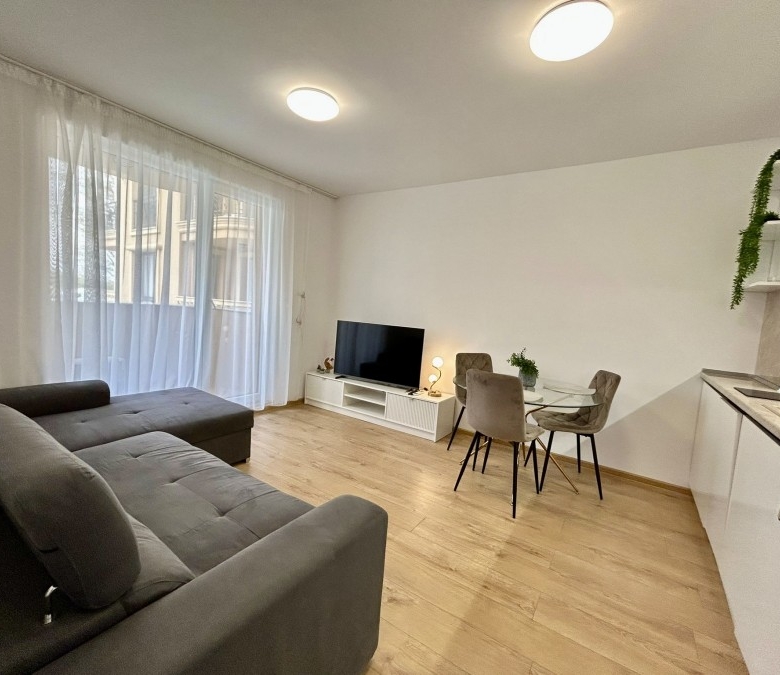 Luxury 1 BED apartment, 52 sq.m. with pool views, in Aphrodite Green, Sunny beach We are pleased to offer you this luxury 1 BED apartment, which is part of a newly built complex, finished in 2024. The property represents a penthouse on the 2nd floor with a total area of 52 sq.m. overlooking the pool. It is fully furnished and comprises of: – open-plan kitchen with lounge; – 1 bedroom; – bathroom/WC; – balcony with pool views. *Maintenance fee is 18 EUR/sq.m. The complex “Aphrodite Green” is a new project (finished in 2024) in a beautiful area of the resort, in the neighborhood of new modern complexes and a park. Act 16, separate accounts for water/electricity. The complex has 40 flats, a small family, and cozy! Complex concept The architecture follows the elegant lines of the already built complexes and is their natural extension. The warm sandy hues of the facades, inspired by ancient African cities, harmonize with the cool blue color of the picturesque pool to create a sense of oasis. Location The area where the complexes are located, and where the new complex is built, is quiet and green, near a large park with an area of about 7 decares. On the territory of the parks there is a childrens playground and recreation area, outdoor fitness, sports ground. Near the complex: * bus station – bus stop with buses to Nessebar, Burgas, etc.; * Burgas Airport – 30 km; * 2 water parks in Sunny Beach – 10 minutes away; * Shell gas station; * Mladost supermarket. The complex has a total of 40 apartments, of which 23 are two-room, 5 studios and 12 three-room properties. Infrastructure of the complex “Aphrodite Green”: · Swimming pool with childrens area; · Umbrellas, sun loungers; · The foyer of unique design; · Reception; · Access control and video surveillance throughout the year; · Property management all year round; · Nearby bus stop, buses to Nessebar, Bourgas; · Bourgas Airport is 30 km. away; Excellent investment for future residence, renting, or resale!